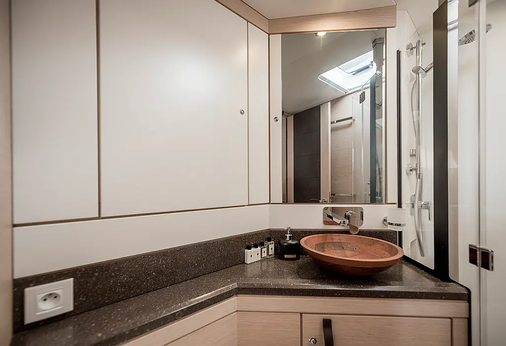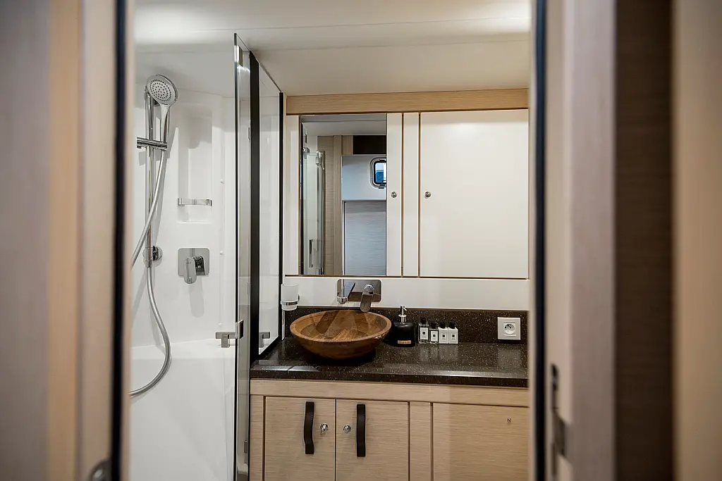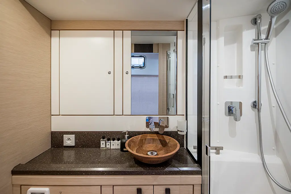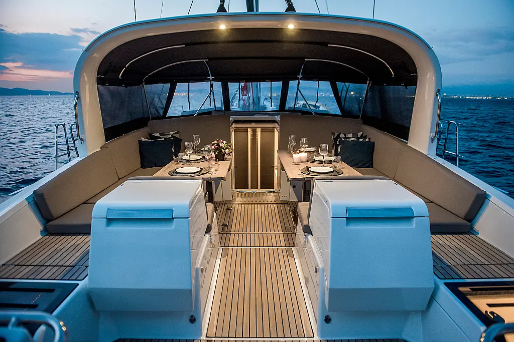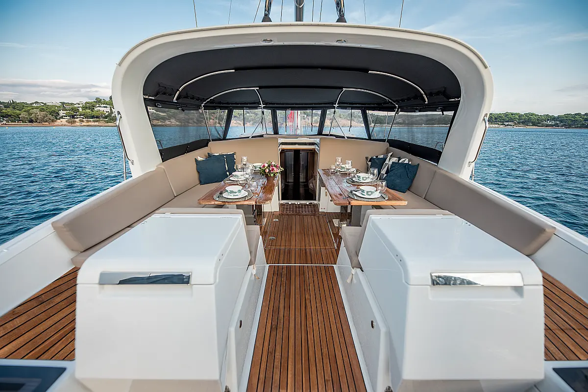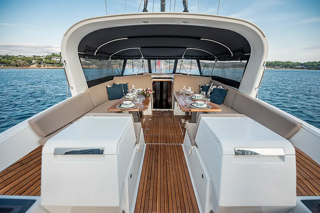 Beiboot, Außenbordmotor, Bimini, Cockpit-Kissen, Teak Cockpit, Solar-Panele, Klimaanlage, Umwandelbarer Tisch, Elektrische Toilette, Kühlschrank, Generator, Hydraulische Gangway, Eismaschine, Wi-Fi und Internet, Wassermacher