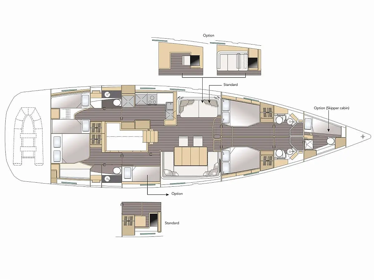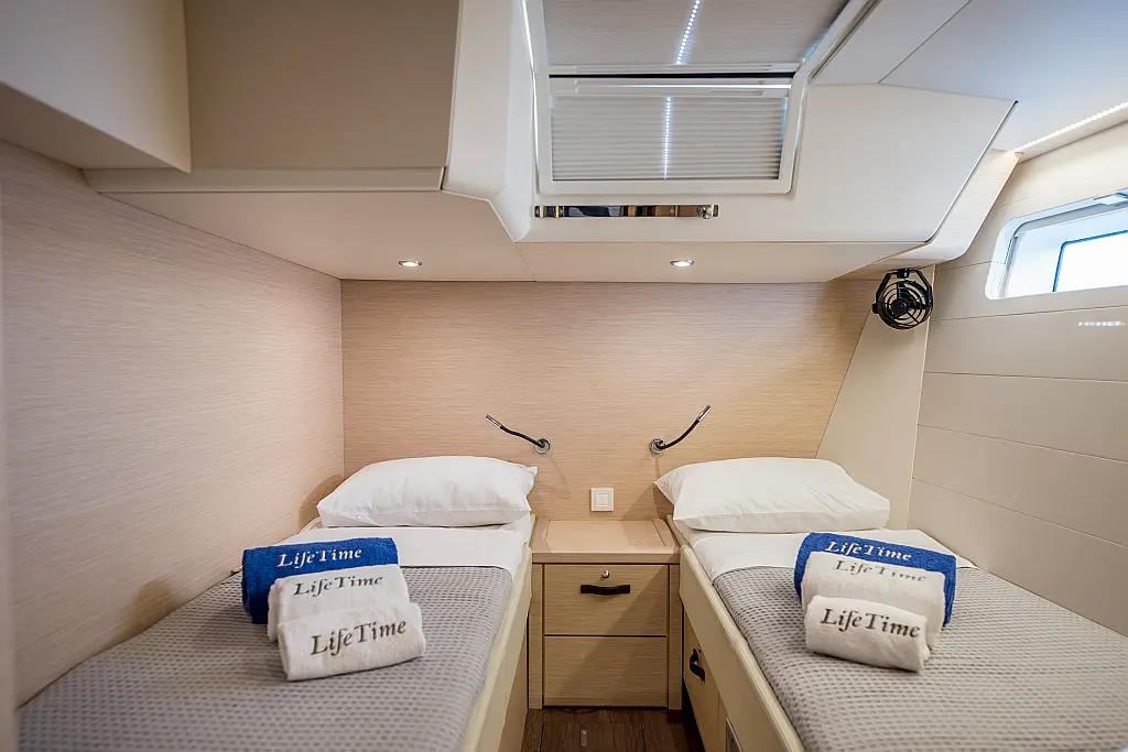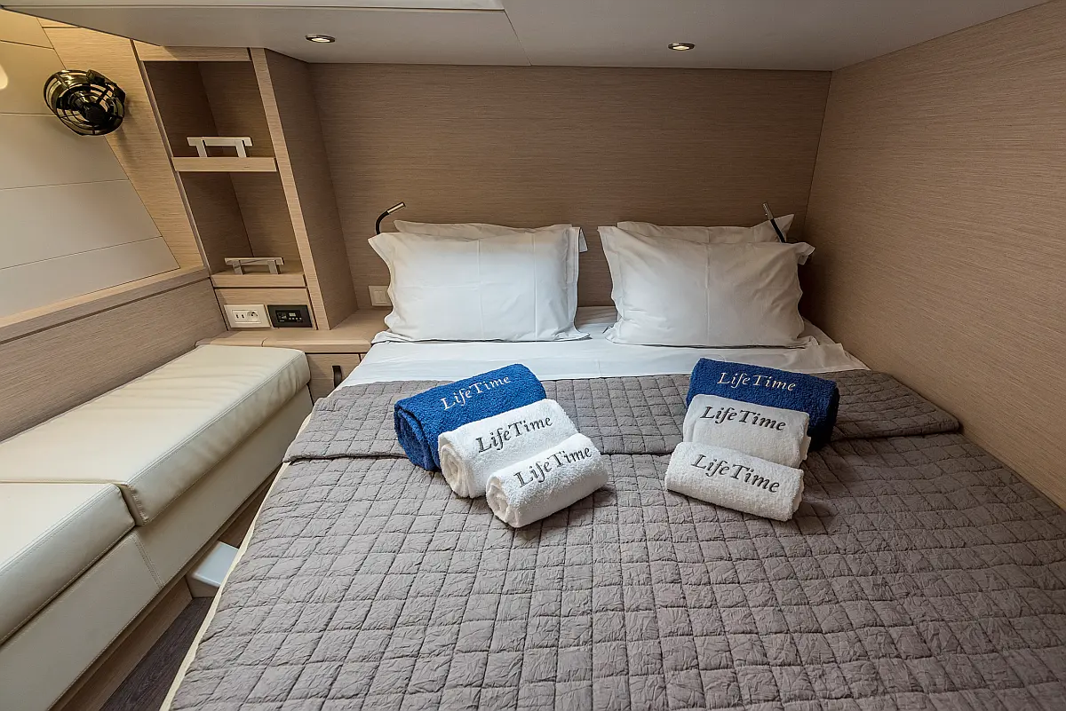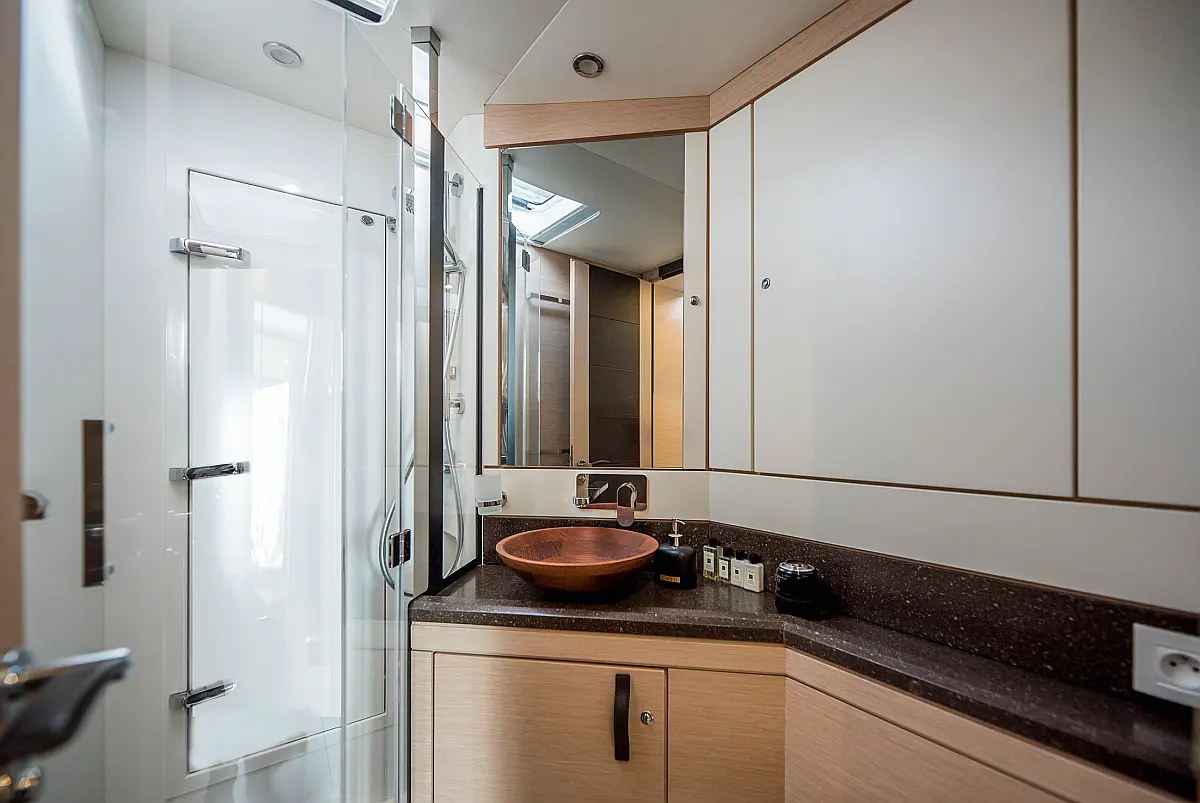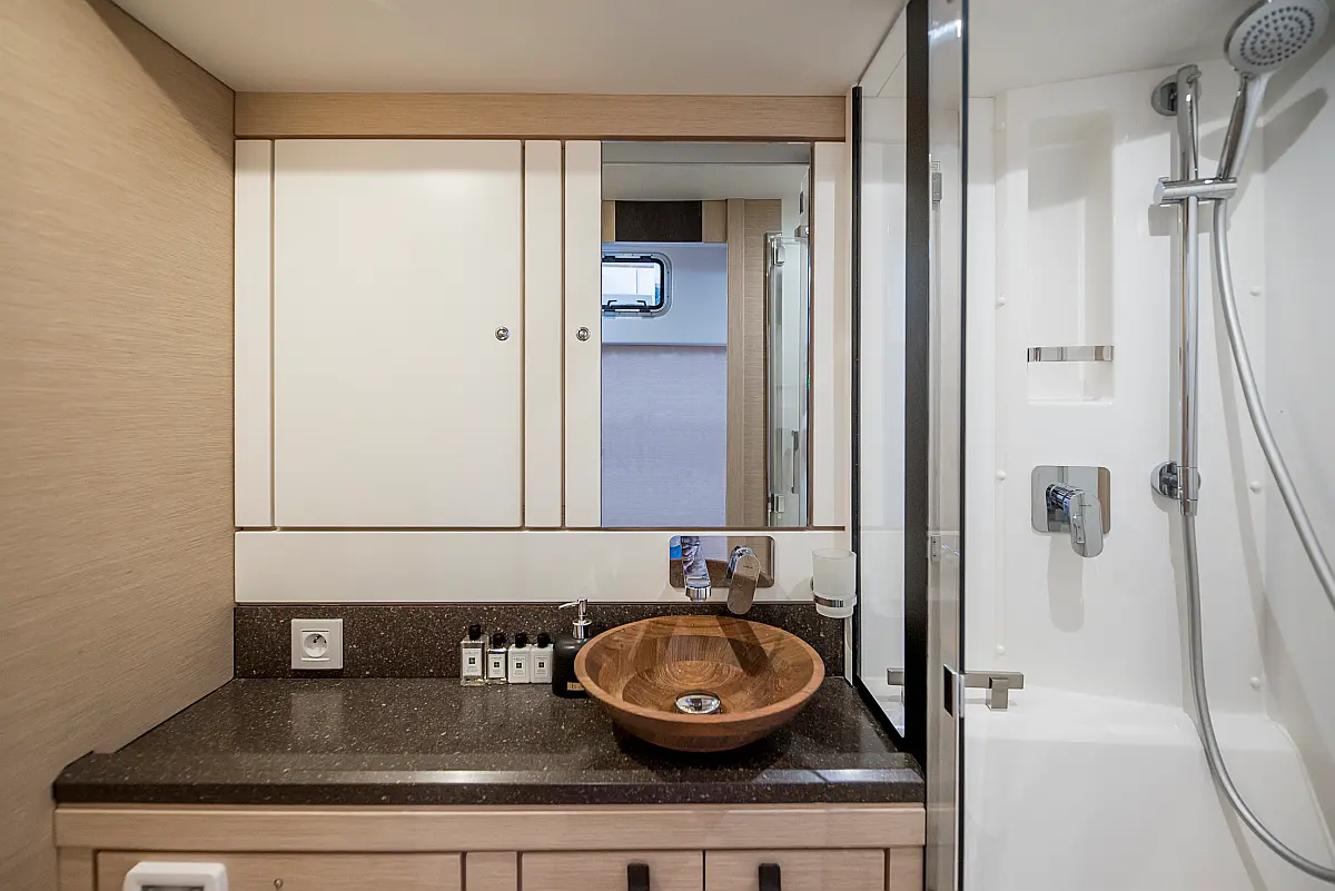 Beiboot, Außenbordmotor, Bimini, Cockpit-Kissen, Teak Cockpit, Solar-Panele, Klimaanlage, Umwandelbarer Tisch, Elektrische Toilette, Kühlschrank, Generator, Hydraulische Gangway, Eismaschine, Wi-Fi und Internet, Wassermacher
