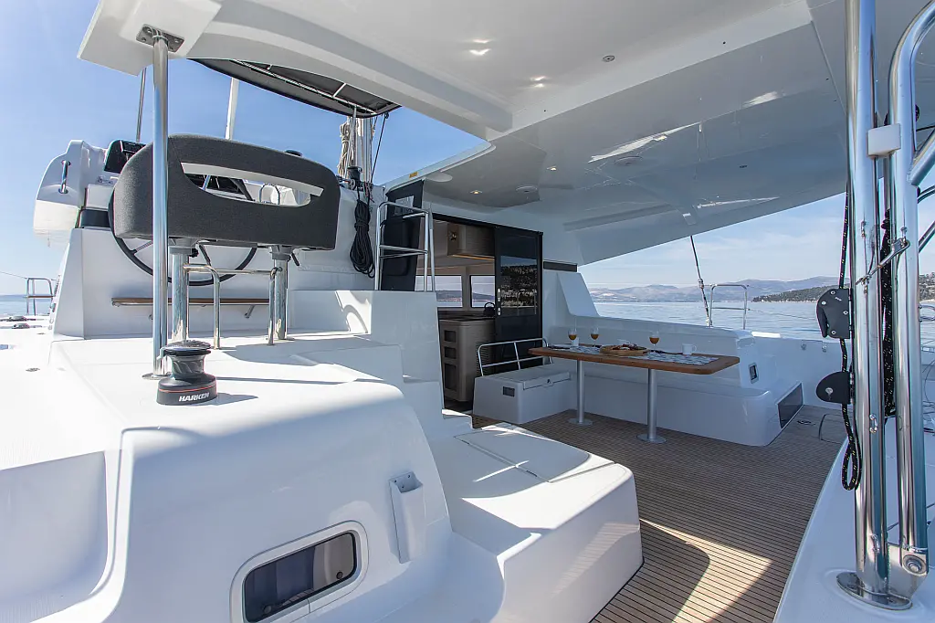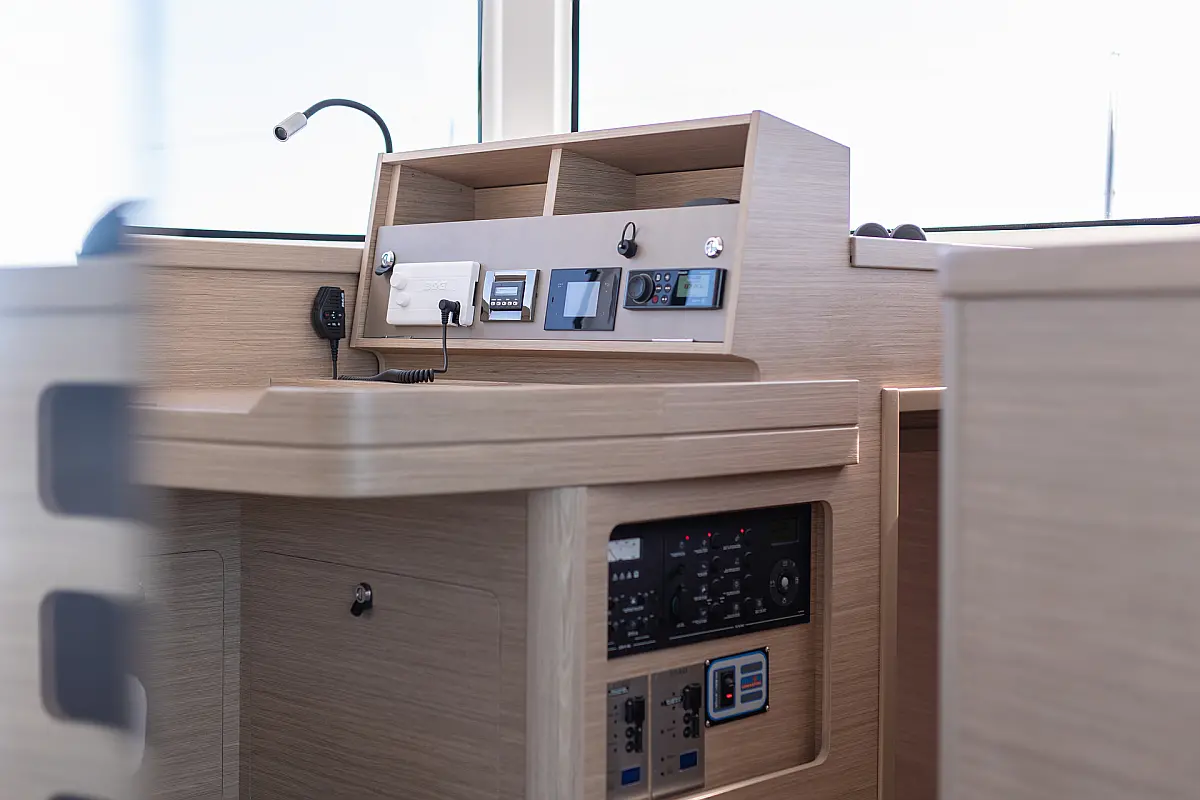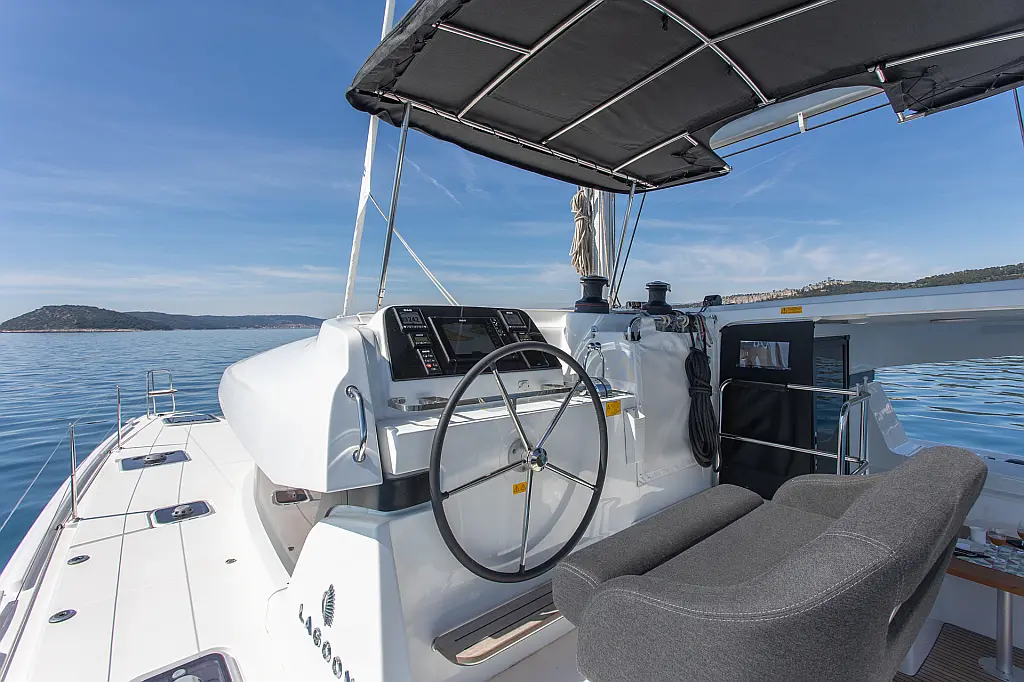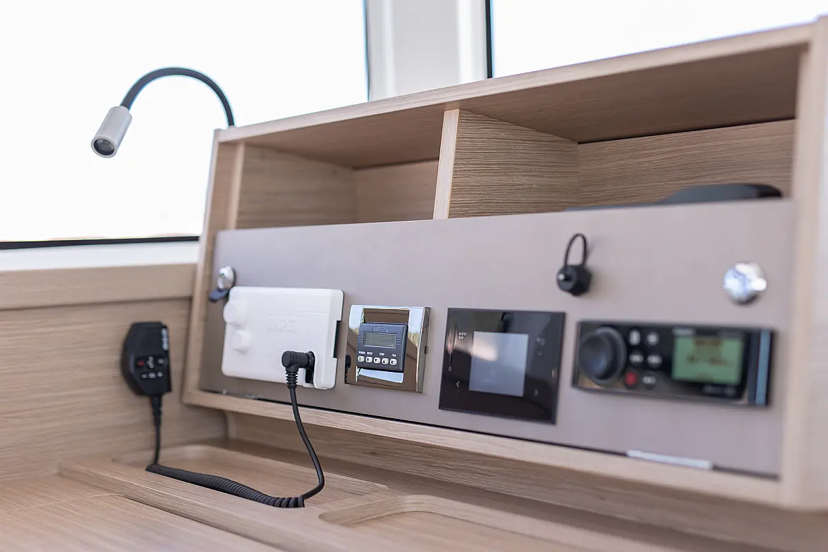 Lautsprecher im Cockpit, Wi-Fi und Internet, Klimaanlage, Heizung, Bimini, Cockpit-Kissen, Flybridge, Teak Cockpit, Eismaschine, Generator, Elektrische Toilette, Außenbordmotor, Beiboot, Sprayhood