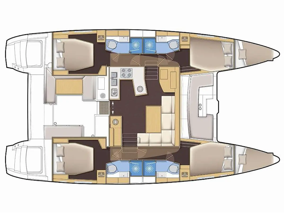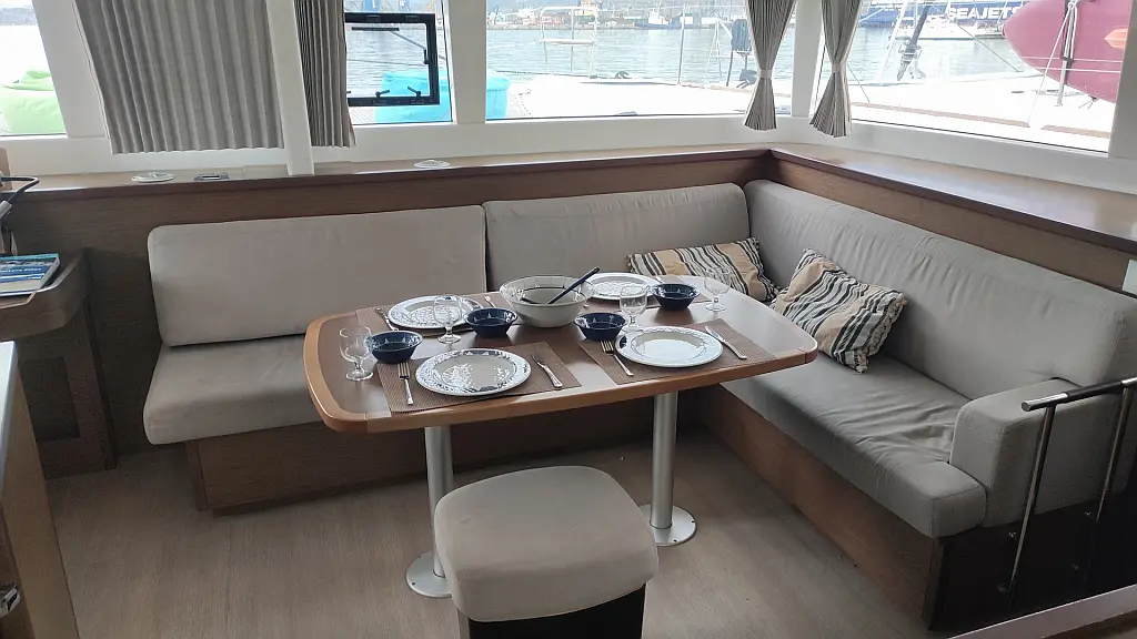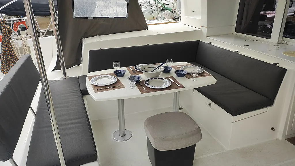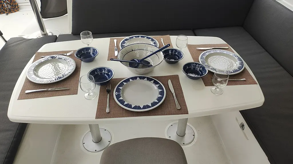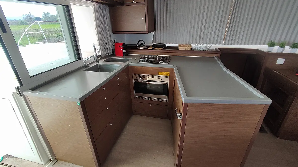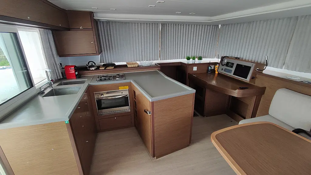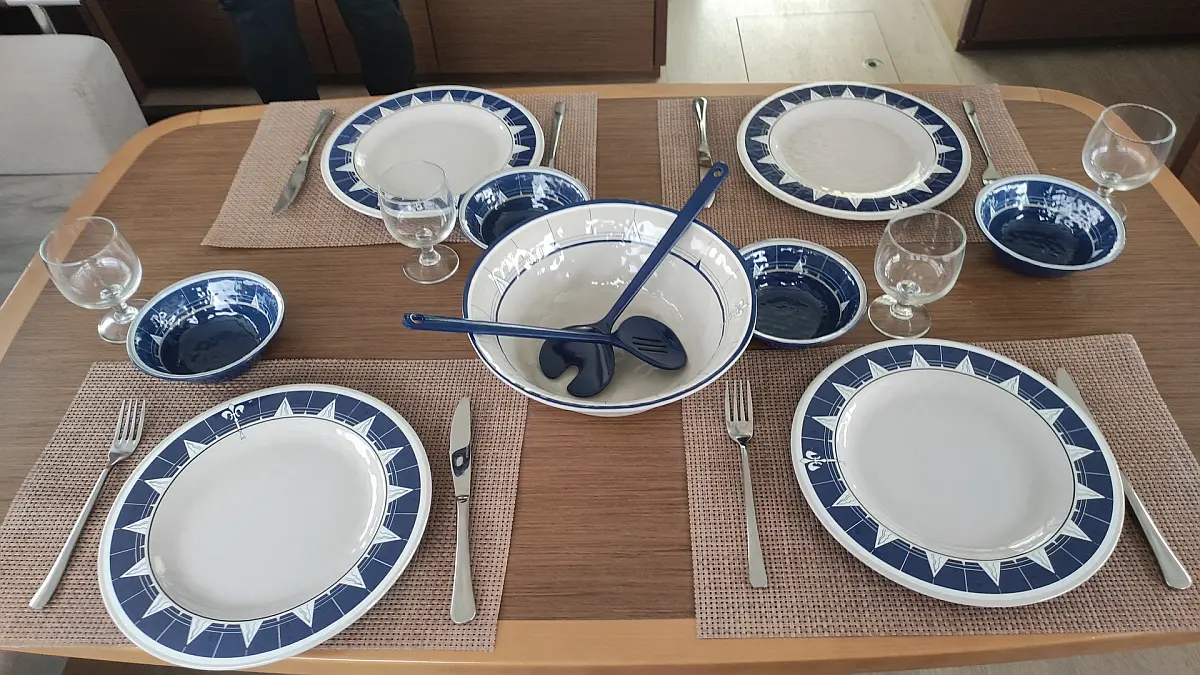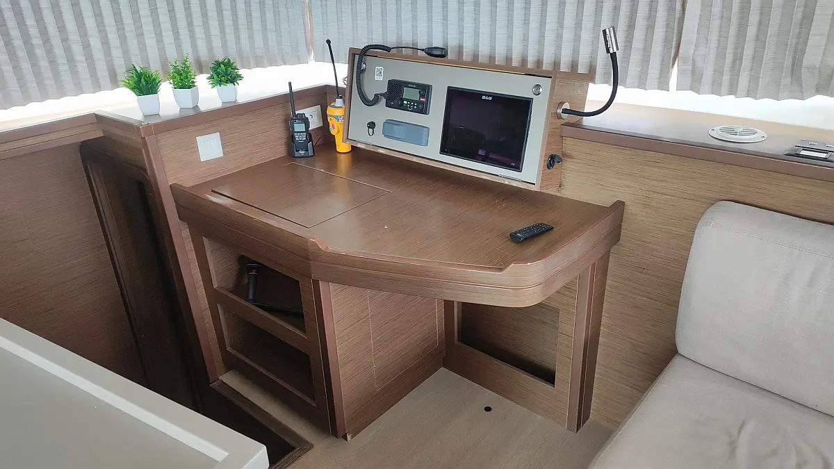 Kühlschrank, Außenbordmotor, Flybridge, Beiboot, Bimini, Sprayhood, Lautsprecher im Cockpit, Inverter, Cockpit-Kissen, Elektrische Winch (Segel), Fäkalientank, Solar-Panele, Elektrische Toilette, Klimaanlage, Generator, Wassermacher, Kaffeemaschine