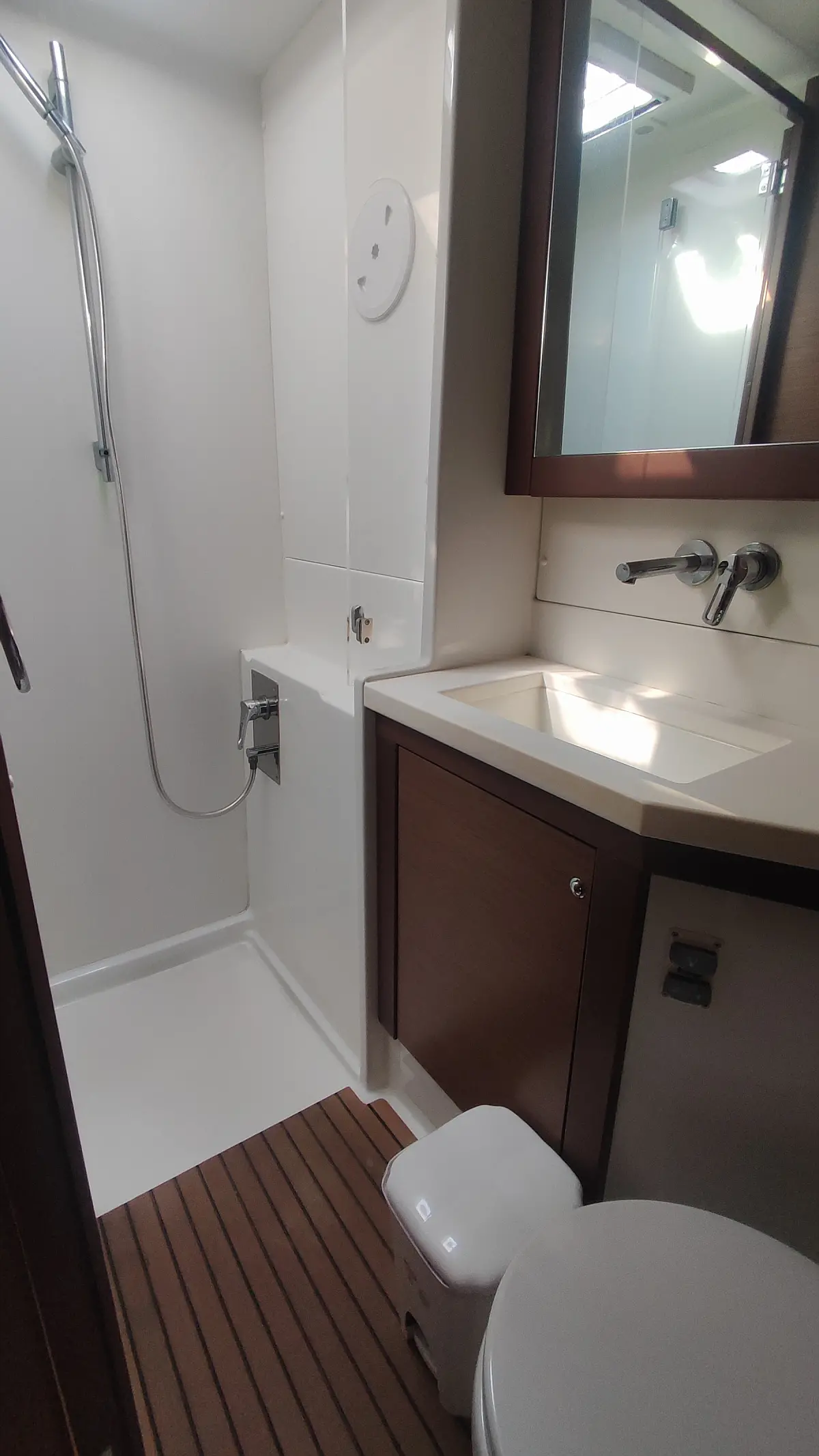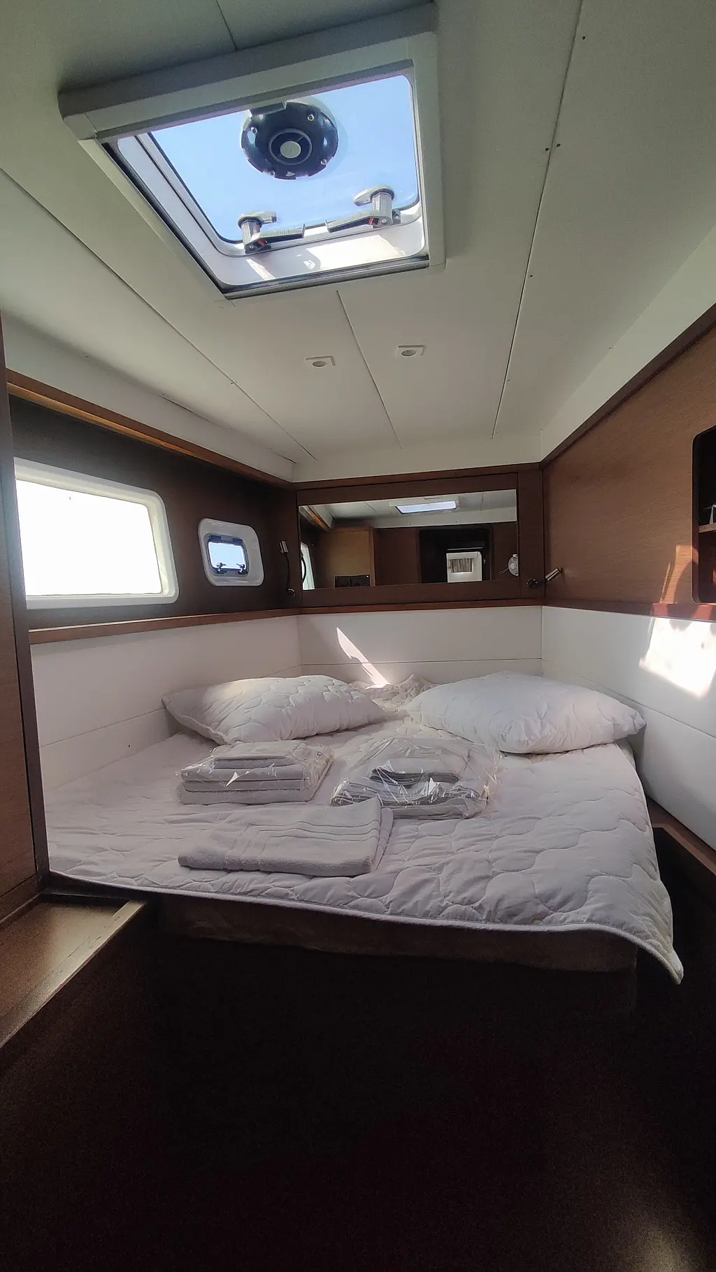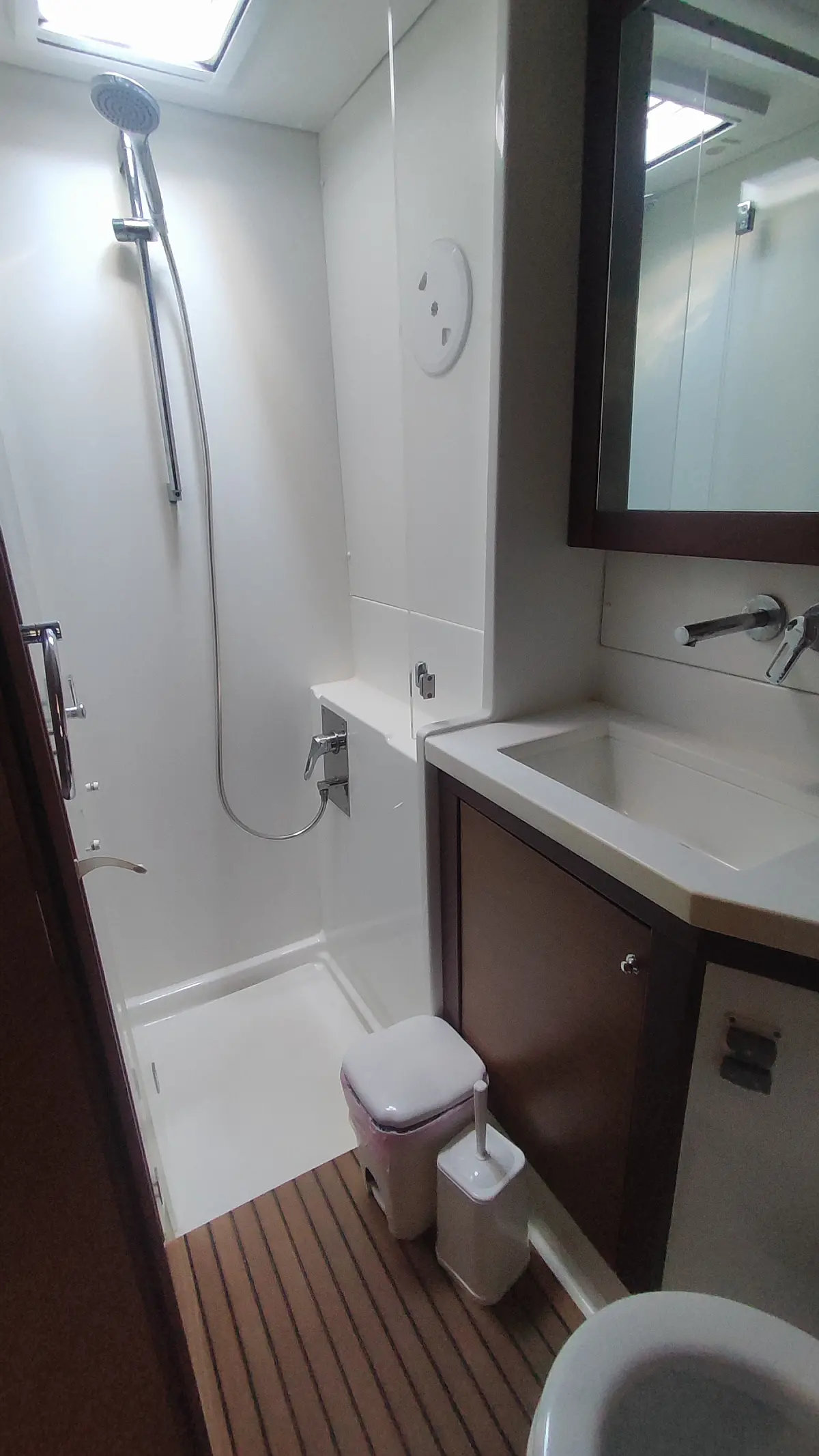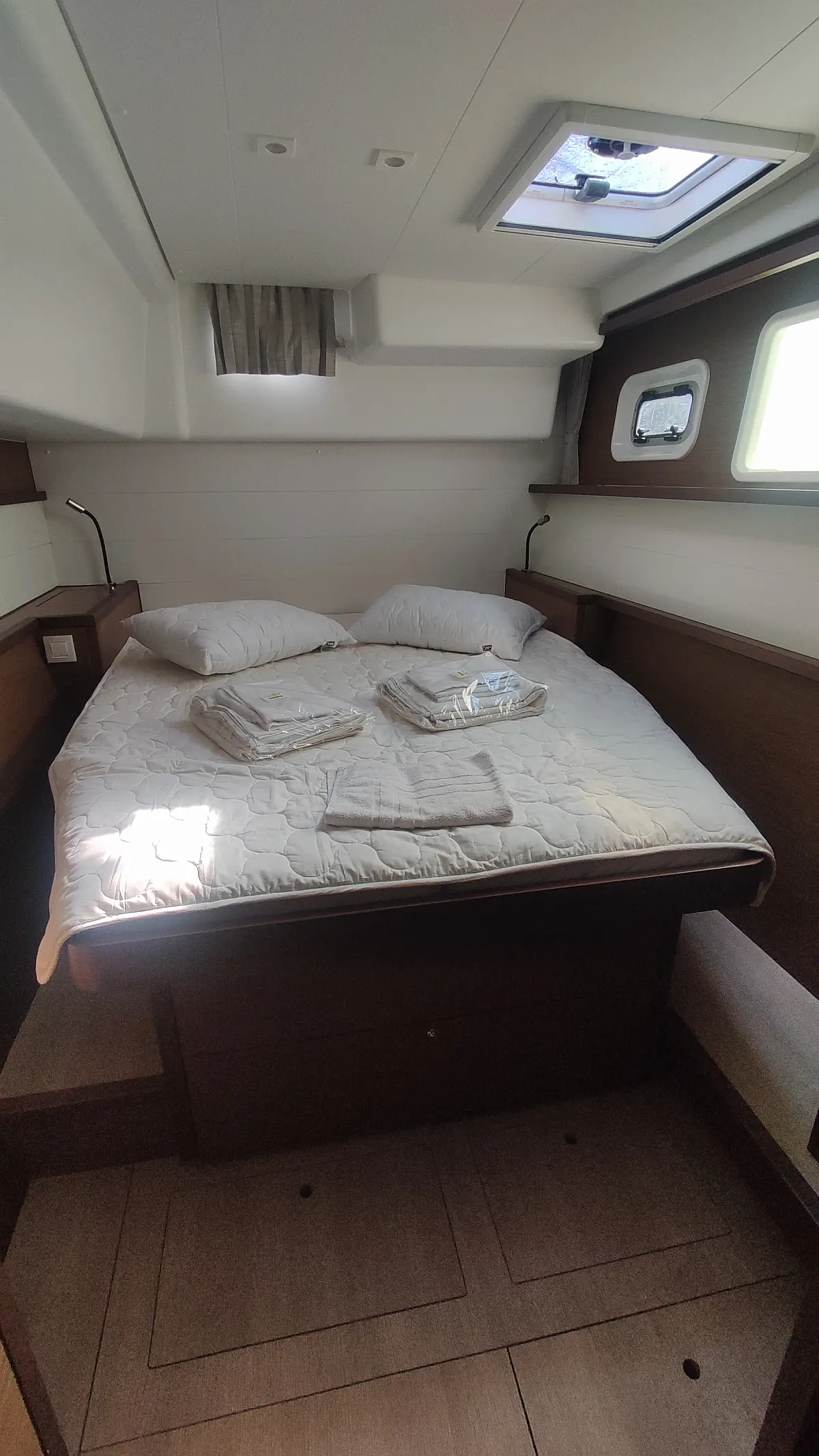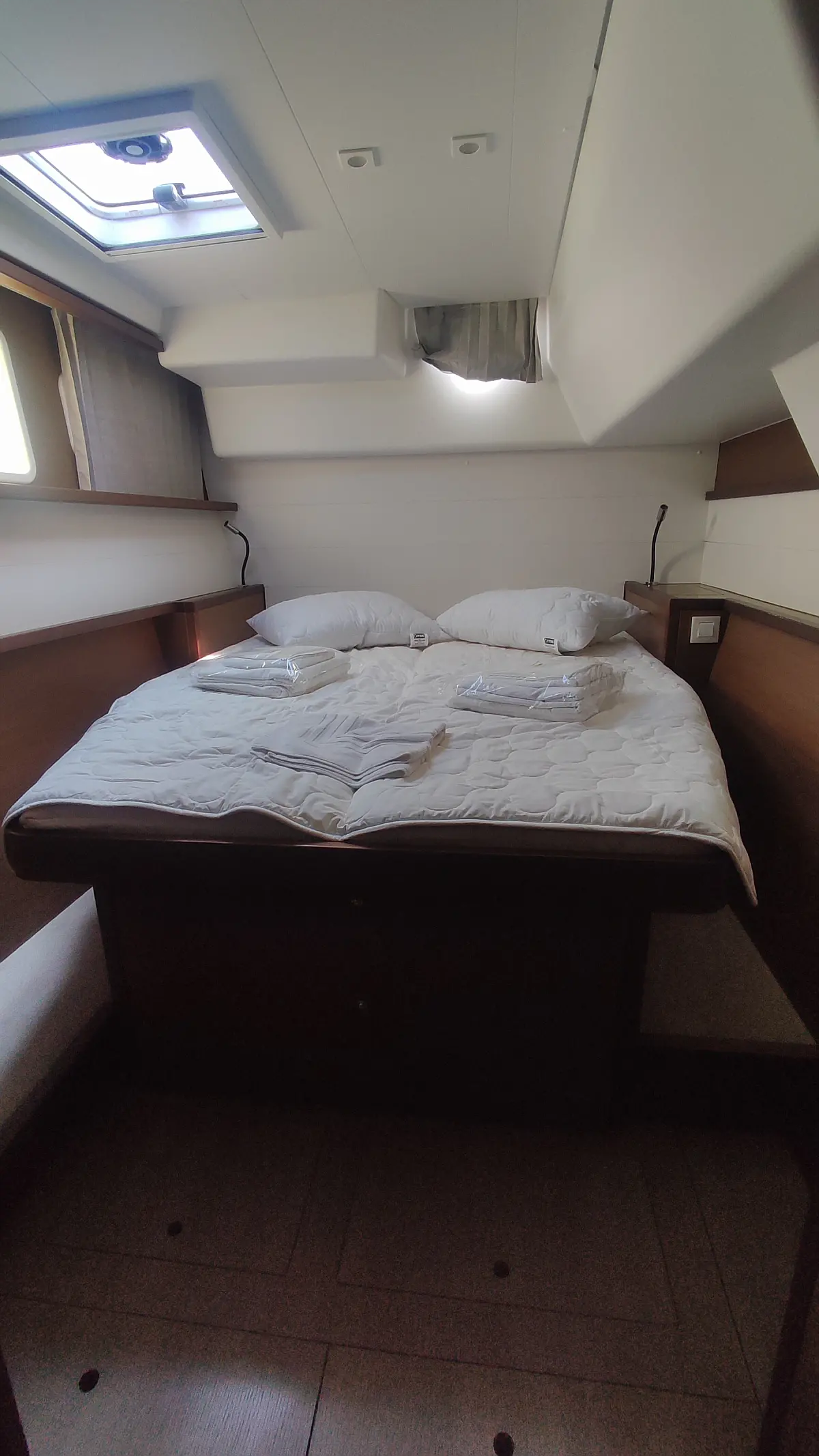 Kühlschrank, Außenbordmotor, Flybridge, Beiboot, Bimini, Sprayhood, Lautsprecher im Cockpit, Inverter, Cockpit-Kissen, Elektrische Winch (Segel), Fäkalientank, Solar-Panele, Elektrische Toilette, Klimaanlage, Generator, Wassermacher, Kaffeemaschine