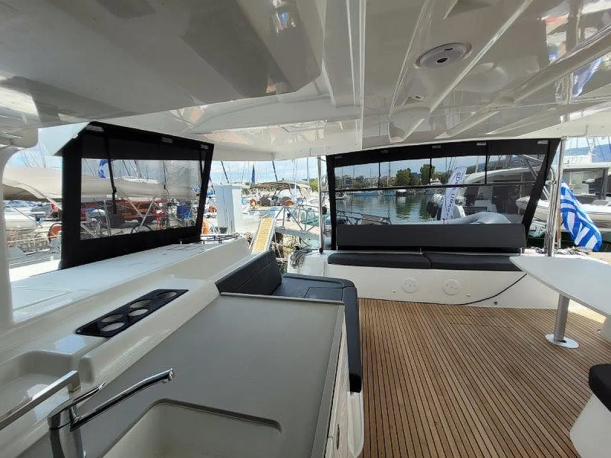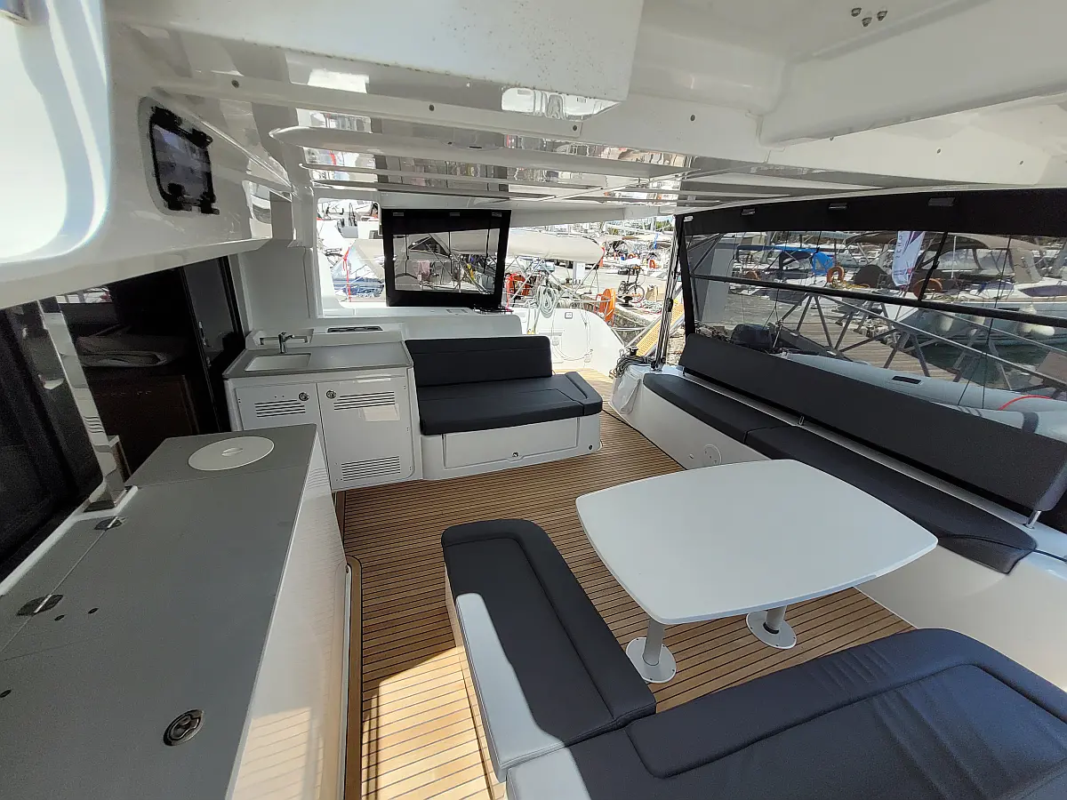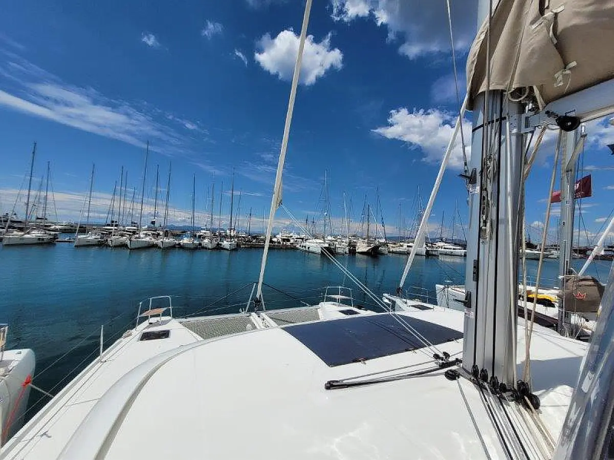 Beiboot, Außenbordmotor, Bimini, Cockpit-Kissen, Teak Cockpit, Elektrische Winch (Segel), Klimaanlage, Umwandelbarer Tisch, Kühlschrank, Elektrische Toilette, Kaffeemaschine, Generator, Wassermacher