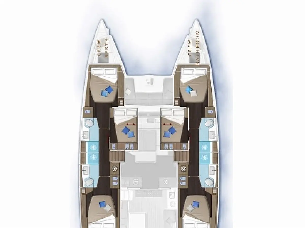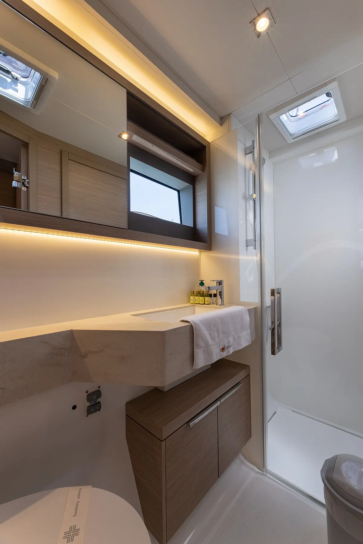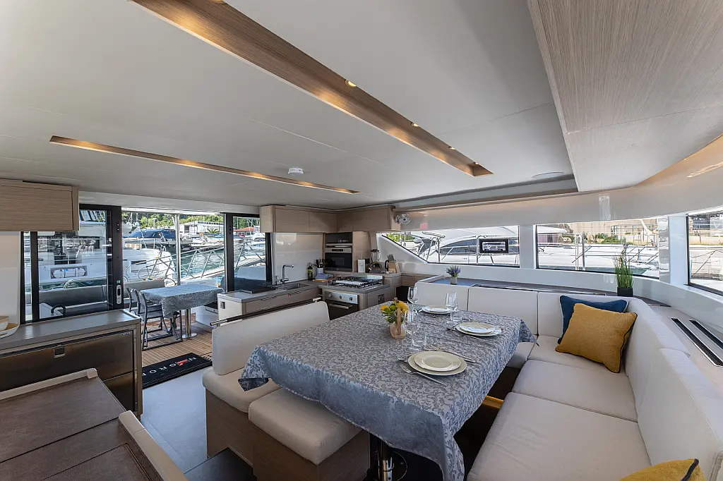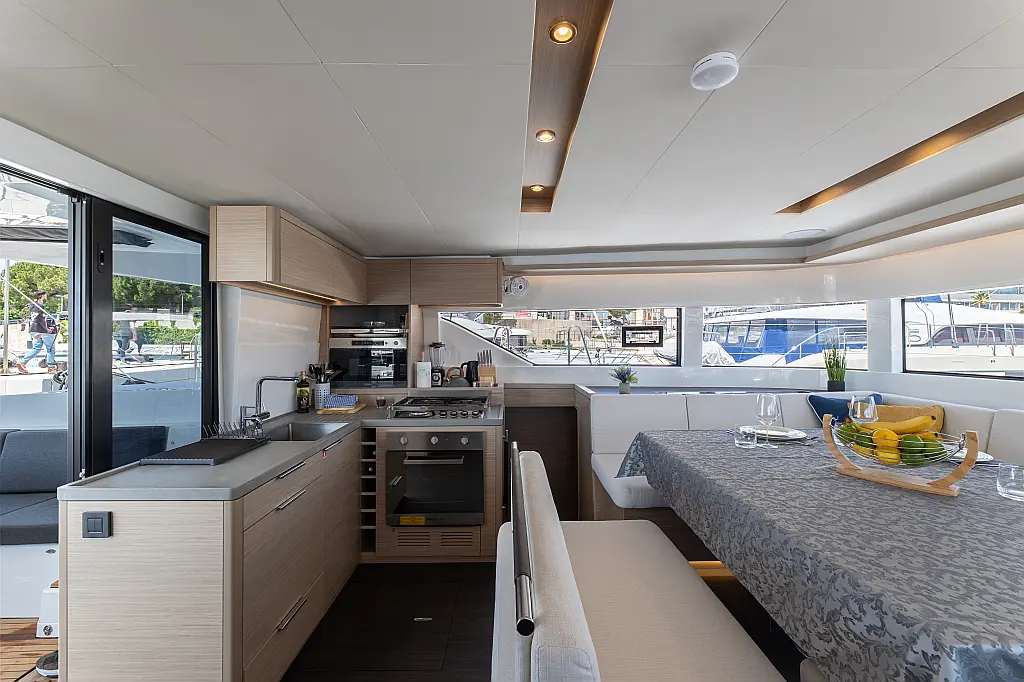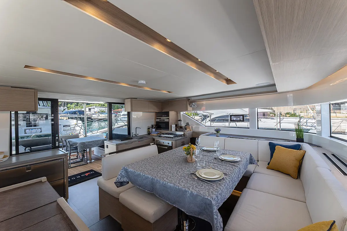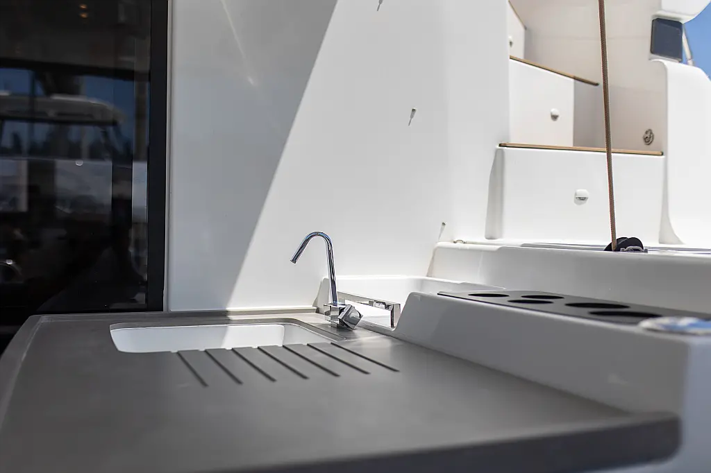 Wassermacher, Bimini, Lautsprecher im Cockpit, Klimaanlage, Heizung, Flybridge, Eismaschine, Kaffeemaschine, Geschirrspüler, Generator, Inverter, Elektrische Toilette, Außenbordmotor, Beiboot