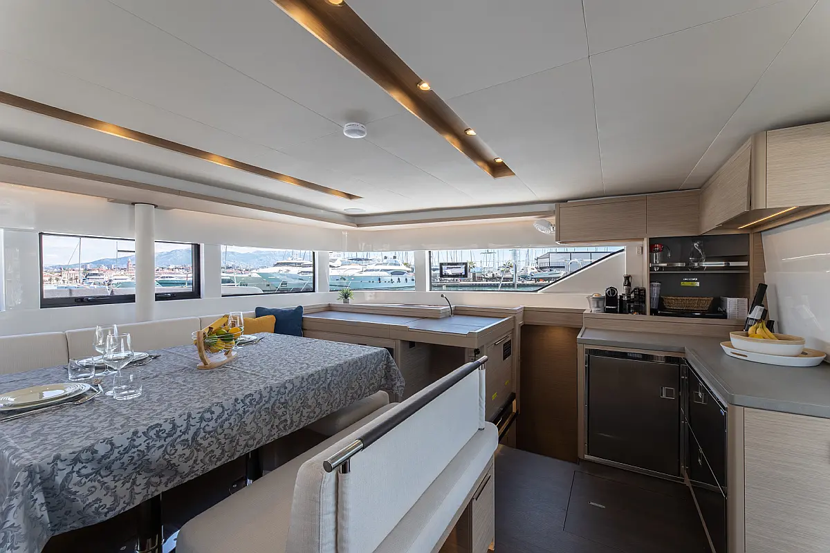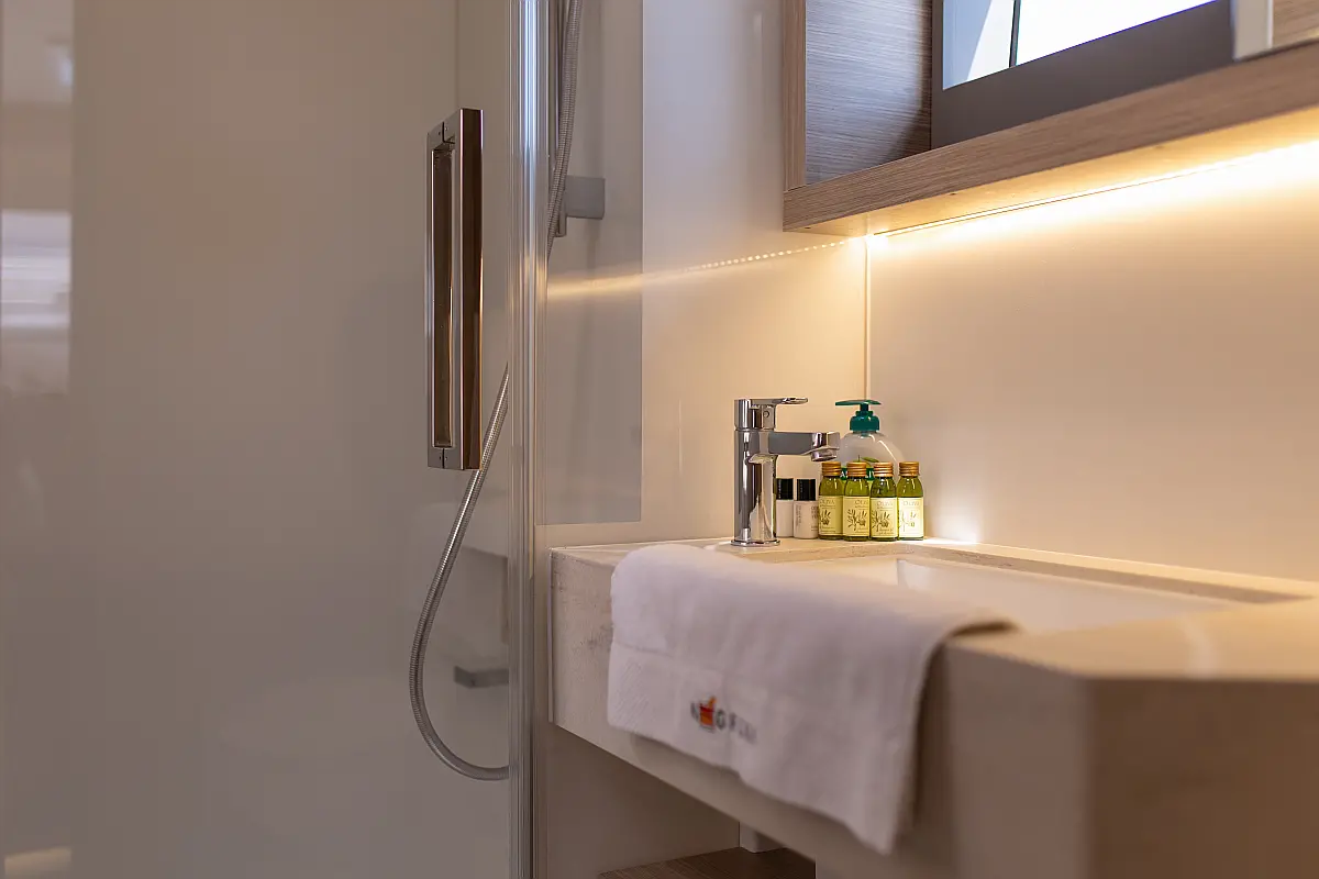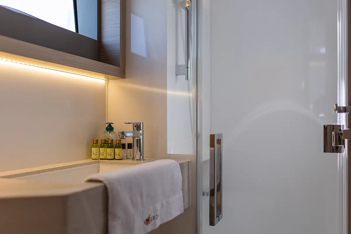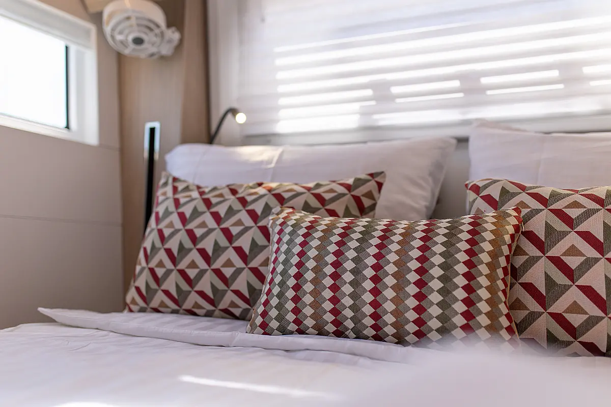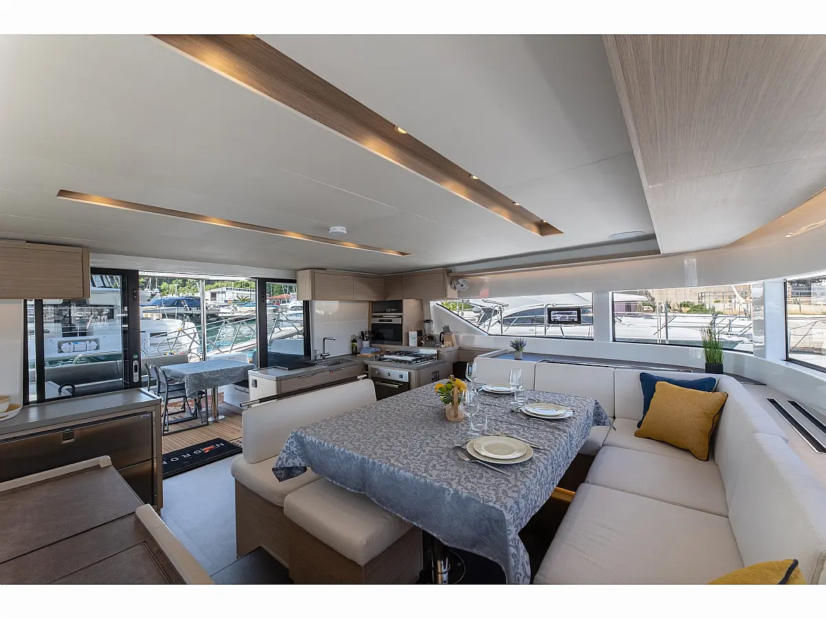Wassermacher, Bimini, Lautsprecher im Cockpit, Klimaanlage, Heizung, Flybridge, Eismaschine, Kaffeemaschine, Geschirrspüler, Generator, Inverter, Elektrische Toilette, Außenbordmotor, Beiboot