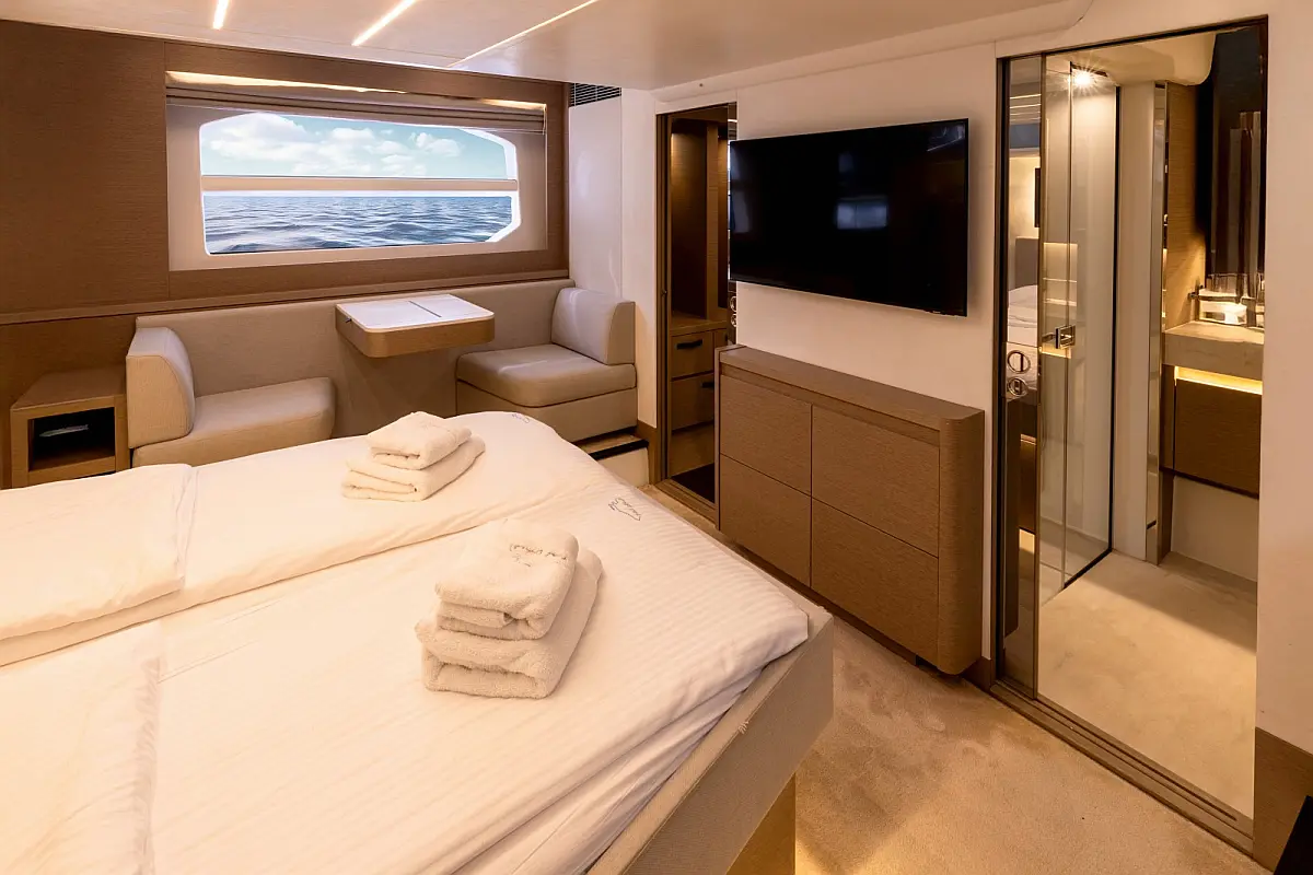 Teak Cockpit, Teakdeck, Beiboot, Hydraulische Gangway, Elektrische Toilette, Inverter, Heizung, Klimaanlage, Generator, Kühlschrank