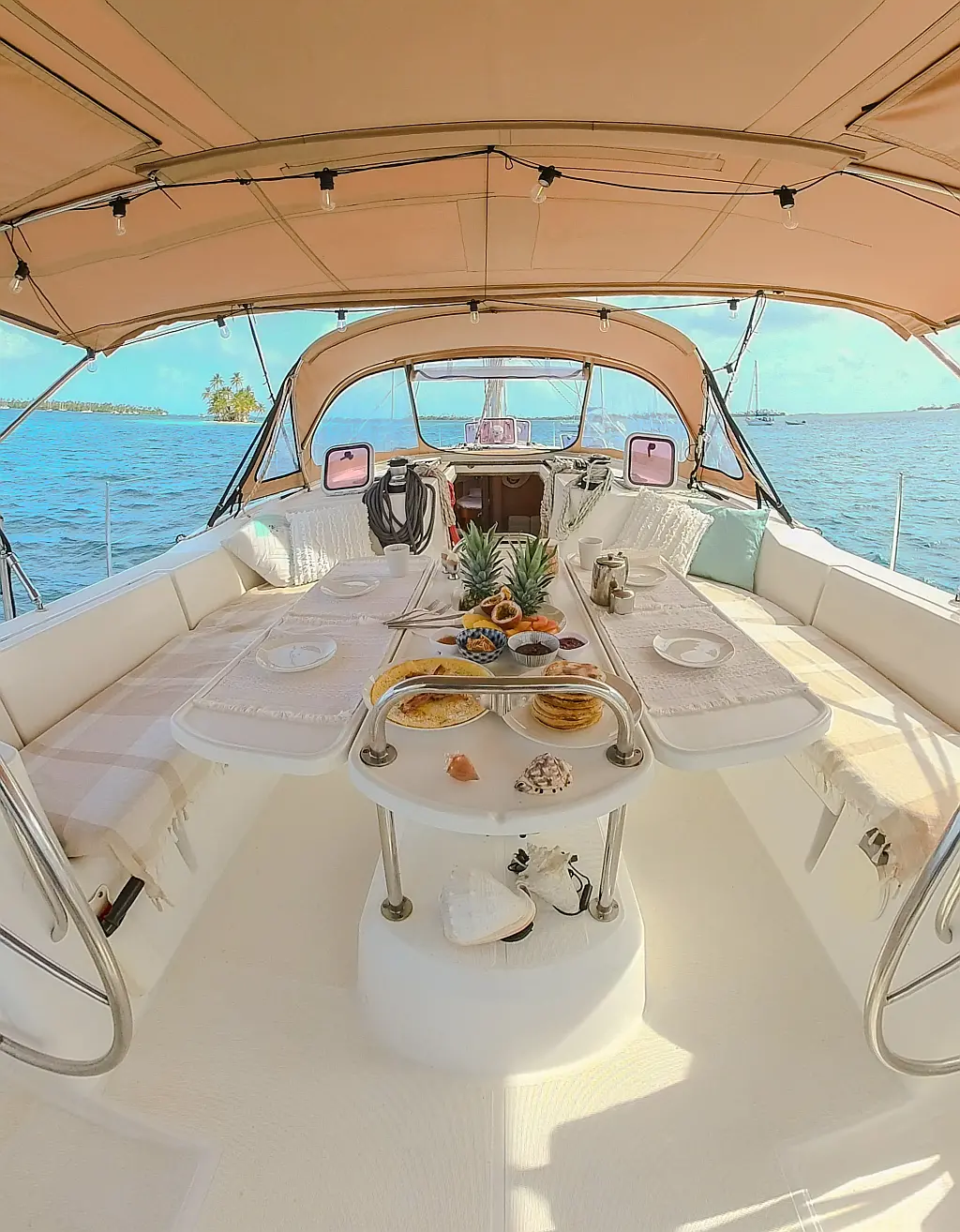 Bimini, Sprayhood, Cockpit-Kissen, Beiboot, Kühlschrank, Kaffeemaschine, Solar-Panele, Generator