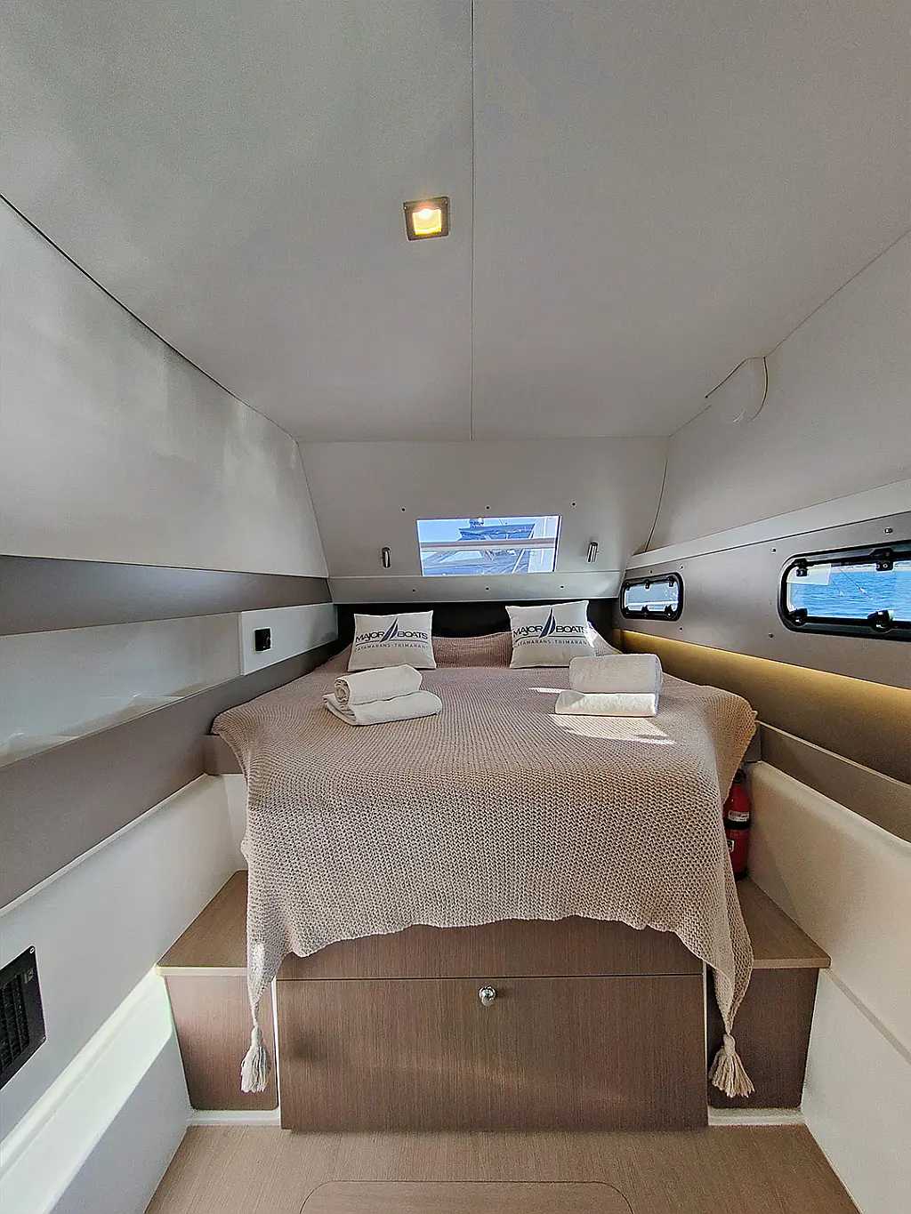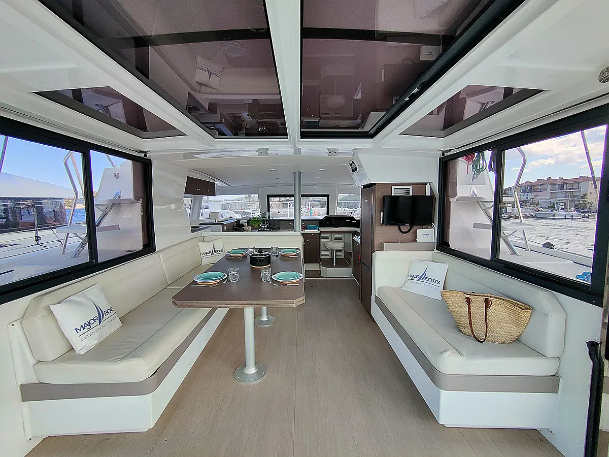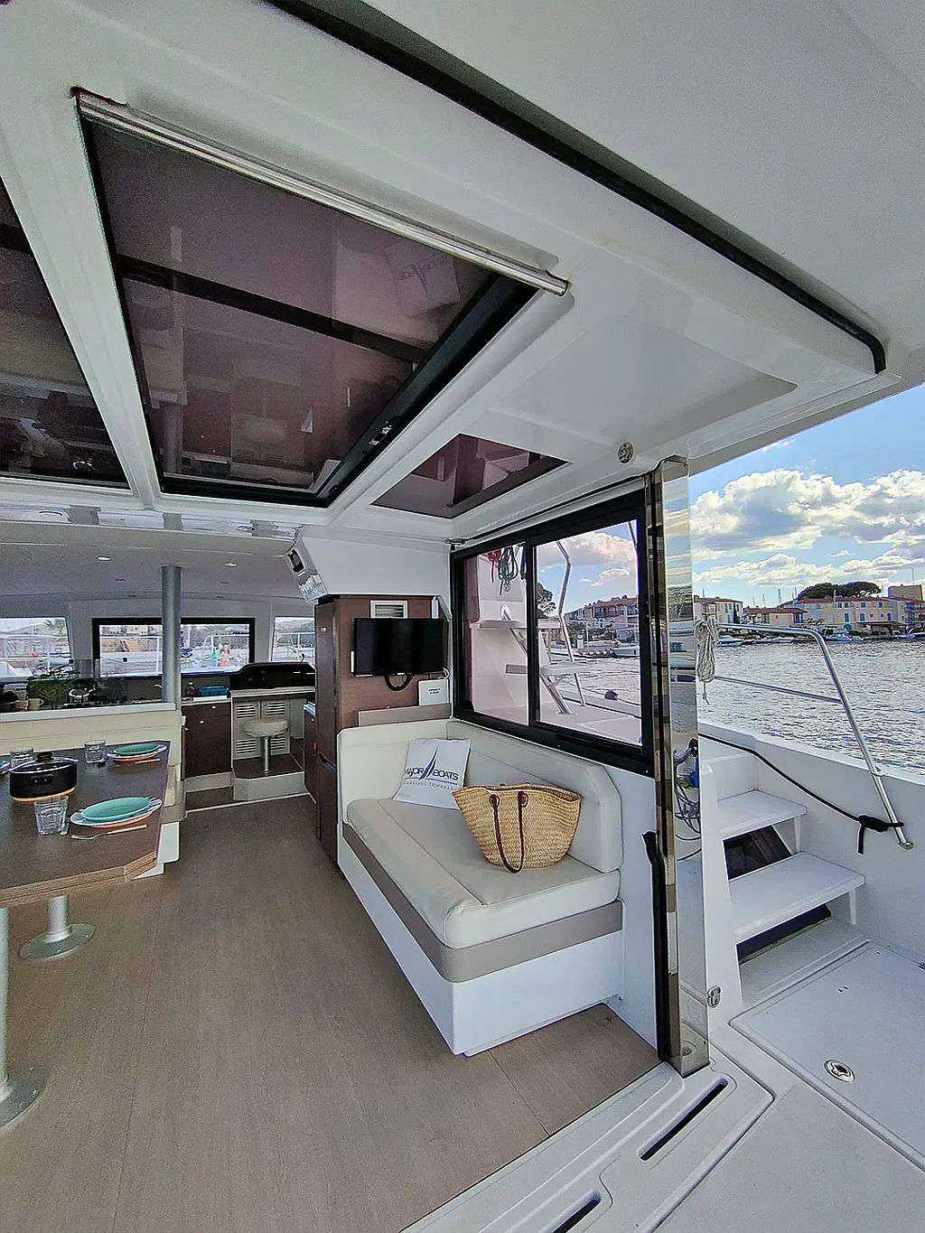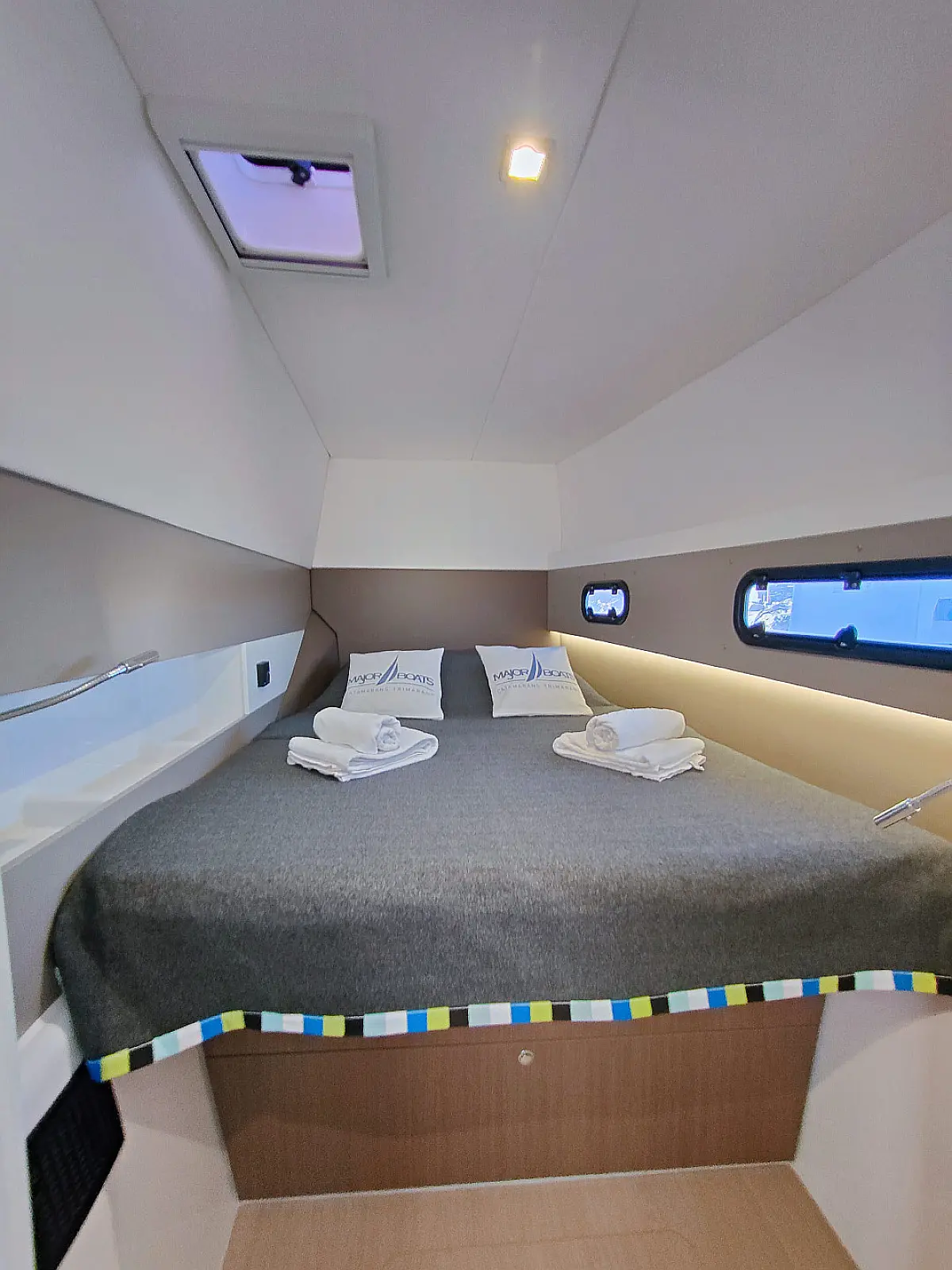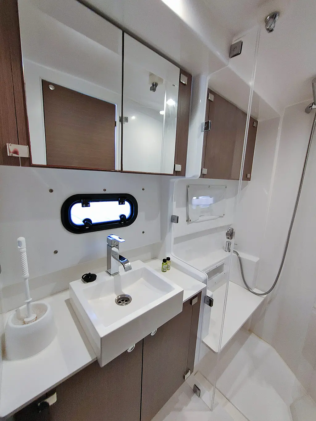 Heating, Bimini, Coffee maker, Refrigerator, Electric winches, Solar Panels, Electric toilet, Cockpit speakers