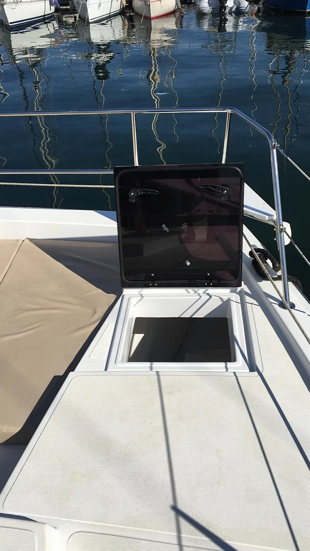 Cockpit cushions, Solar Panels, Water maker, Inverter, Cockpit speakers, Refrigerator, Dinghy