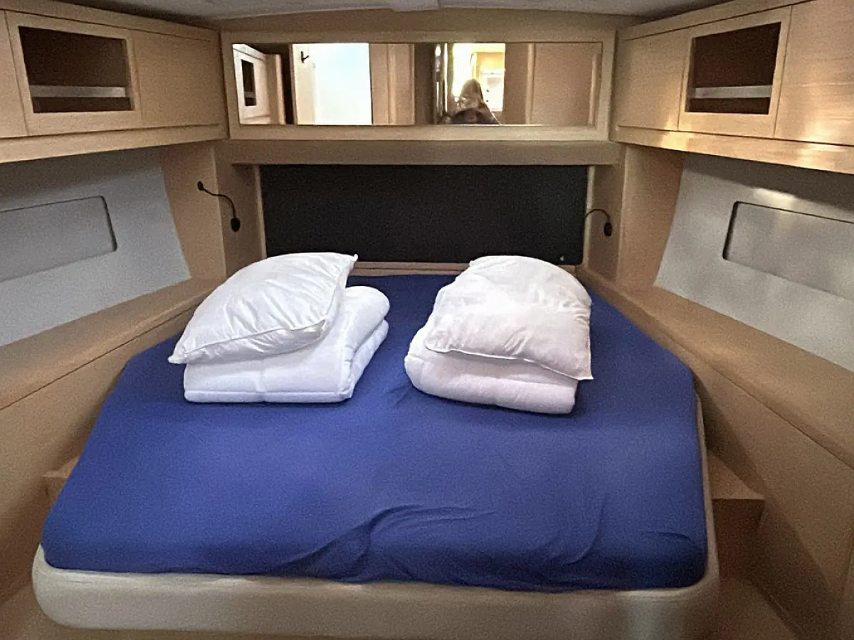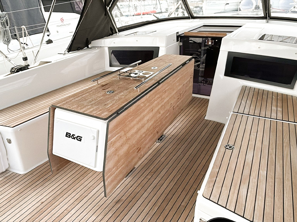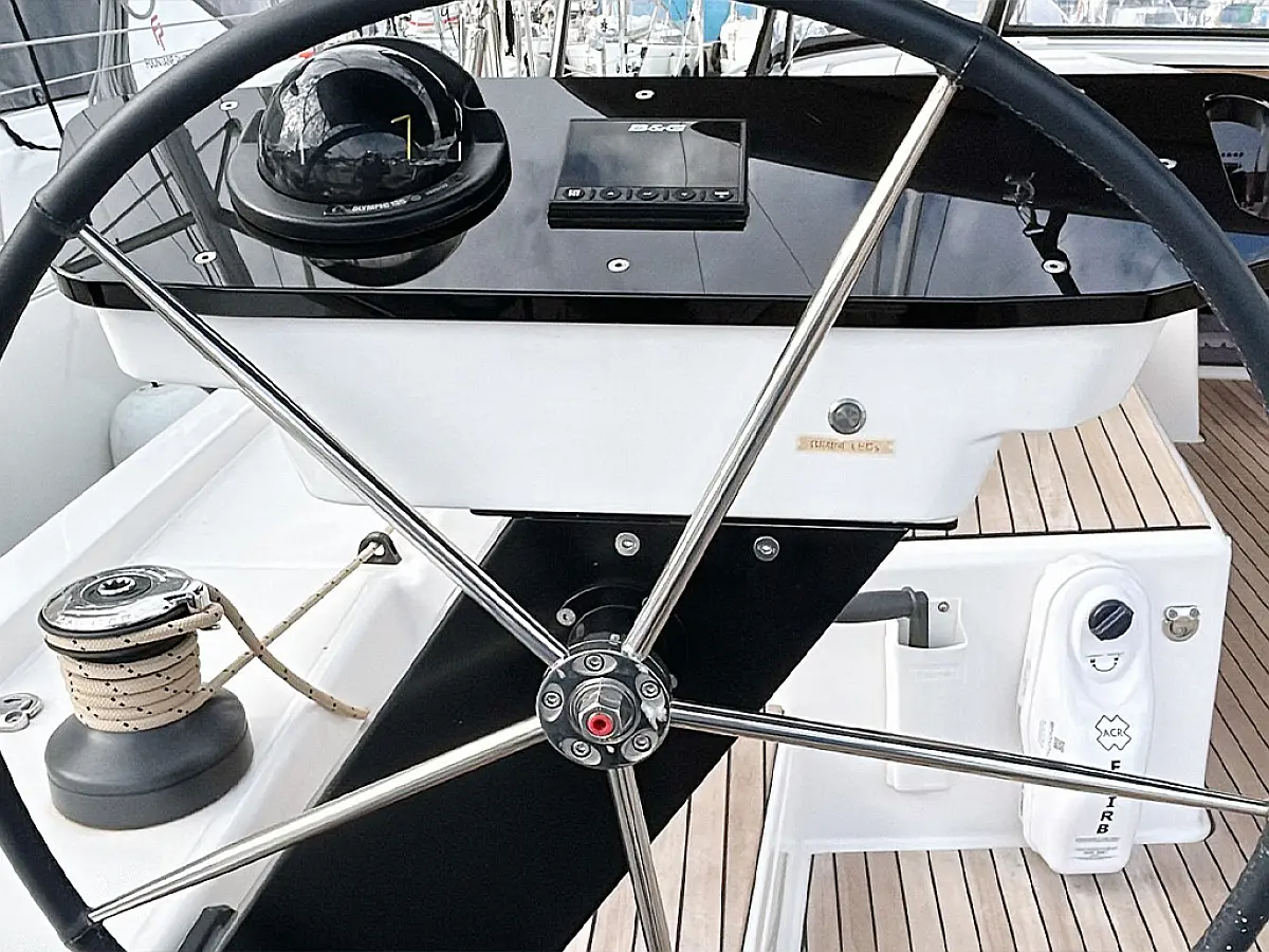 Refrigerator, Coffee maker, Bimini, Cockpit cushions, Sprayhood, Teak Cockpit, Air condition, Generator, Inverter, Water maker, Dinghy, Outboard engine