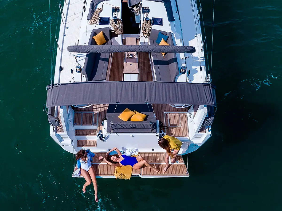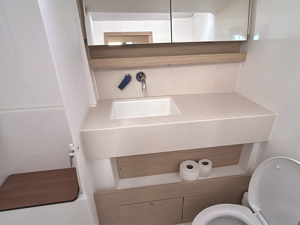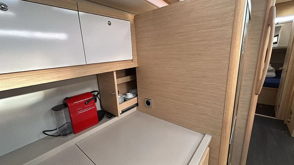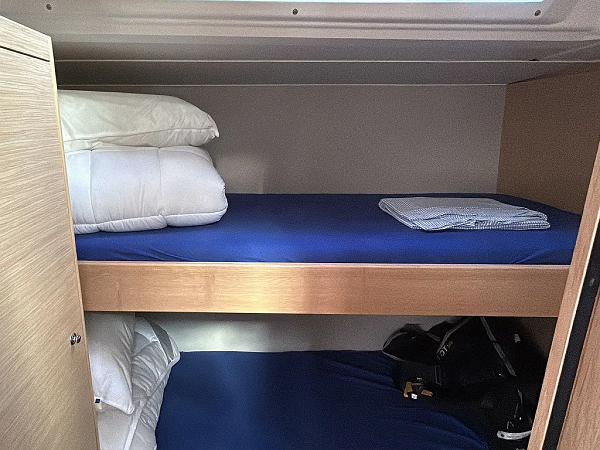 Refrigerator, Coffee maker, Bimini, Cockpit cushions, Sprayhood, Teak Cockpit, Air condition, Generator, Inverter, Water maker, Dinghy, Outboard engine