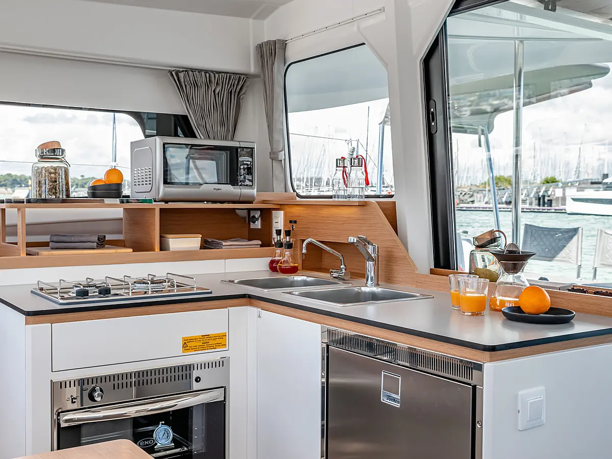 Cockpit cushions, Solar Panels, Electric toilet, Swimming platform, Dinghy, Refrigerator, Outboard engine