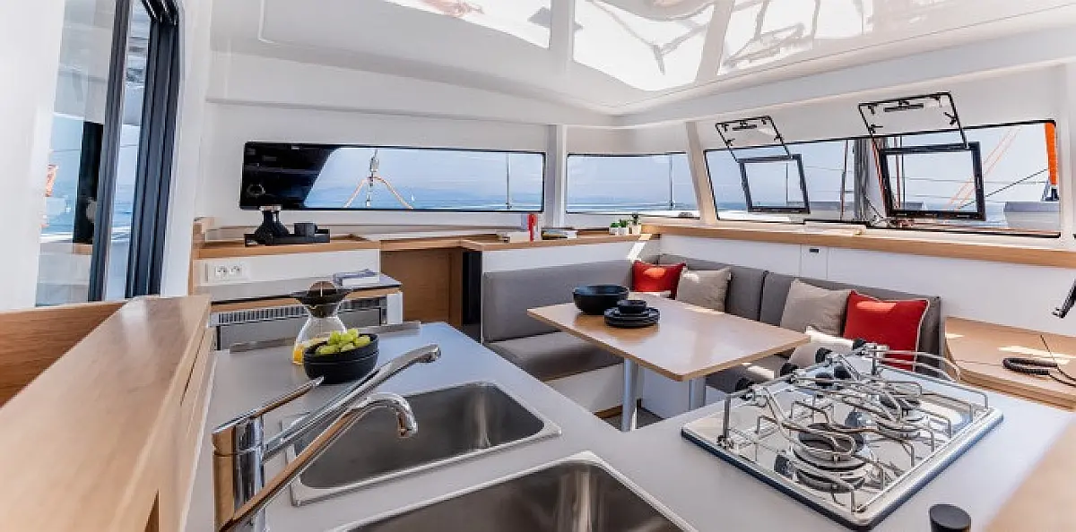 Air condition, Bimini, Cockpit cushions, Cockpit speakers, Dinghy, Refrigerator, Generator, Heating, Holding tank, Inverter, Outboard engine, Solar Panels, Teak Cockpit, Wi-Fi & Internet