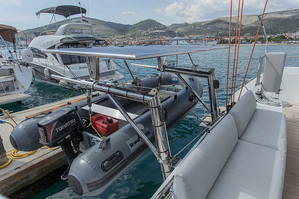 Air condition, Bimini, Cockpit cushions, Dinghy, Electric toilet, Ice maker, Outboard engine, Refrigerator, Solar Panels, Water maker, Wi-Fi & Internet