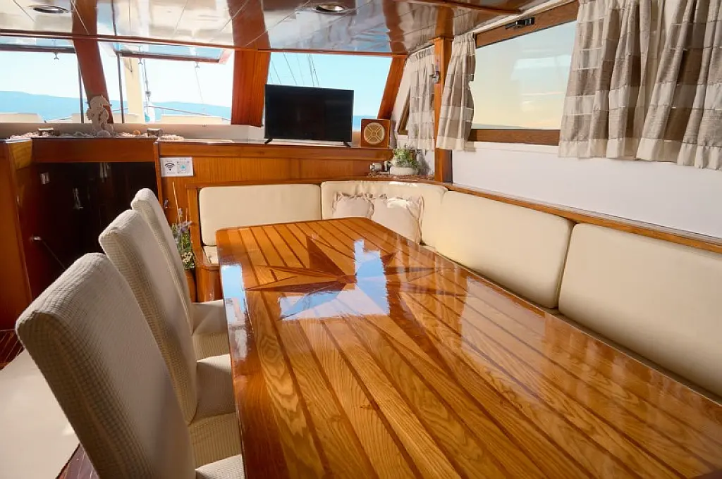 Air condition, Bimini, Ice maker, Generator, Inverter, Wi-Fi & Internet, Water maker, Dinghy