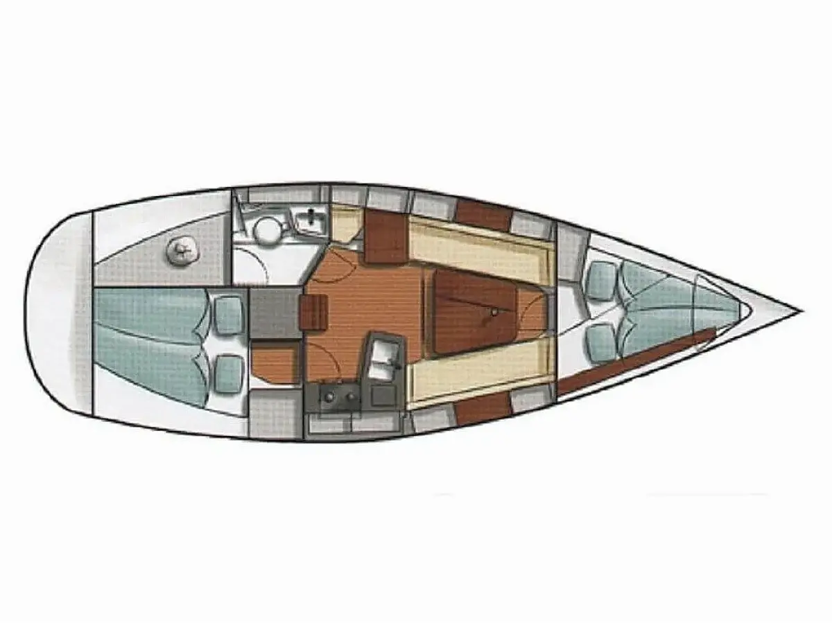 Swimming platform, Bimini, Refrigerator, Dinghy, Outboard engine