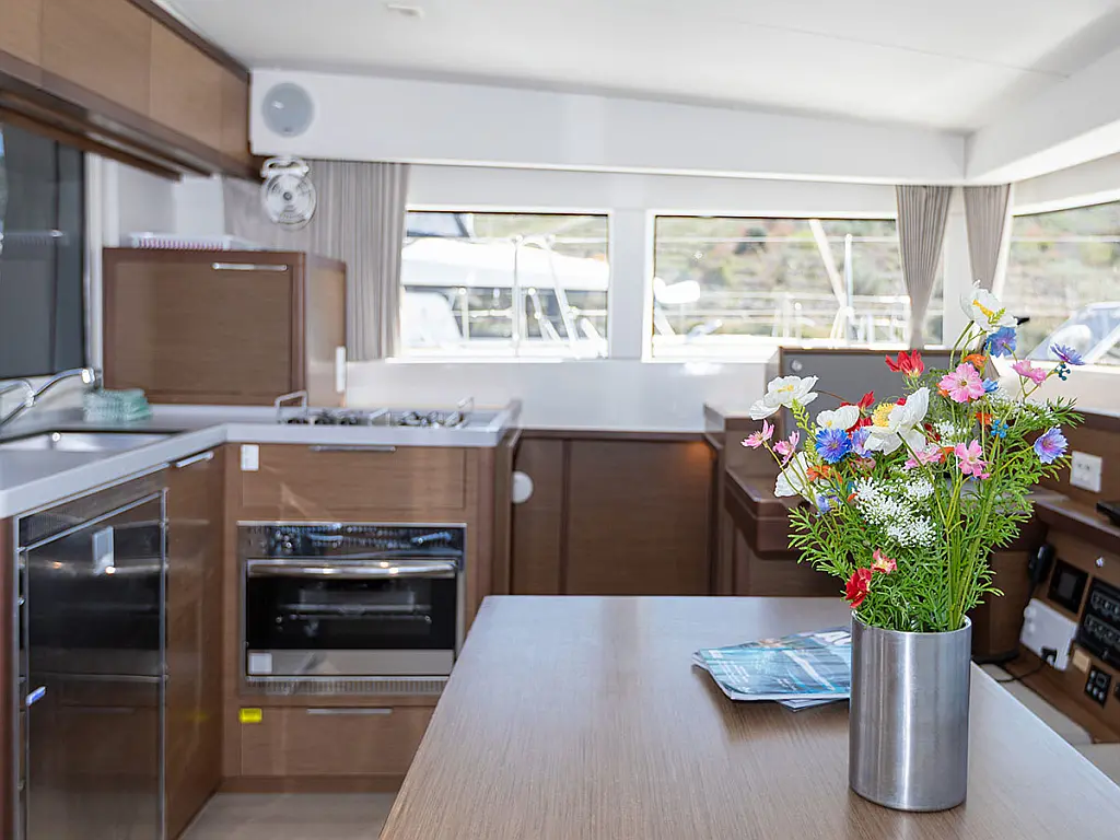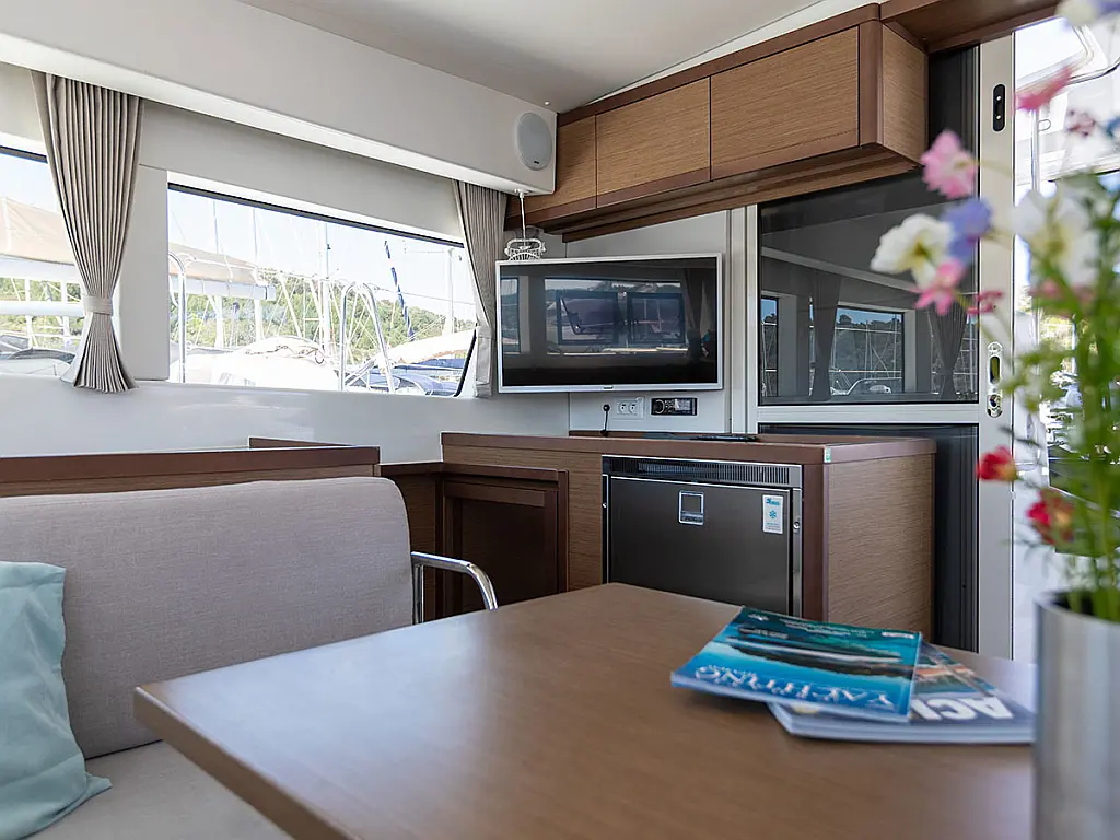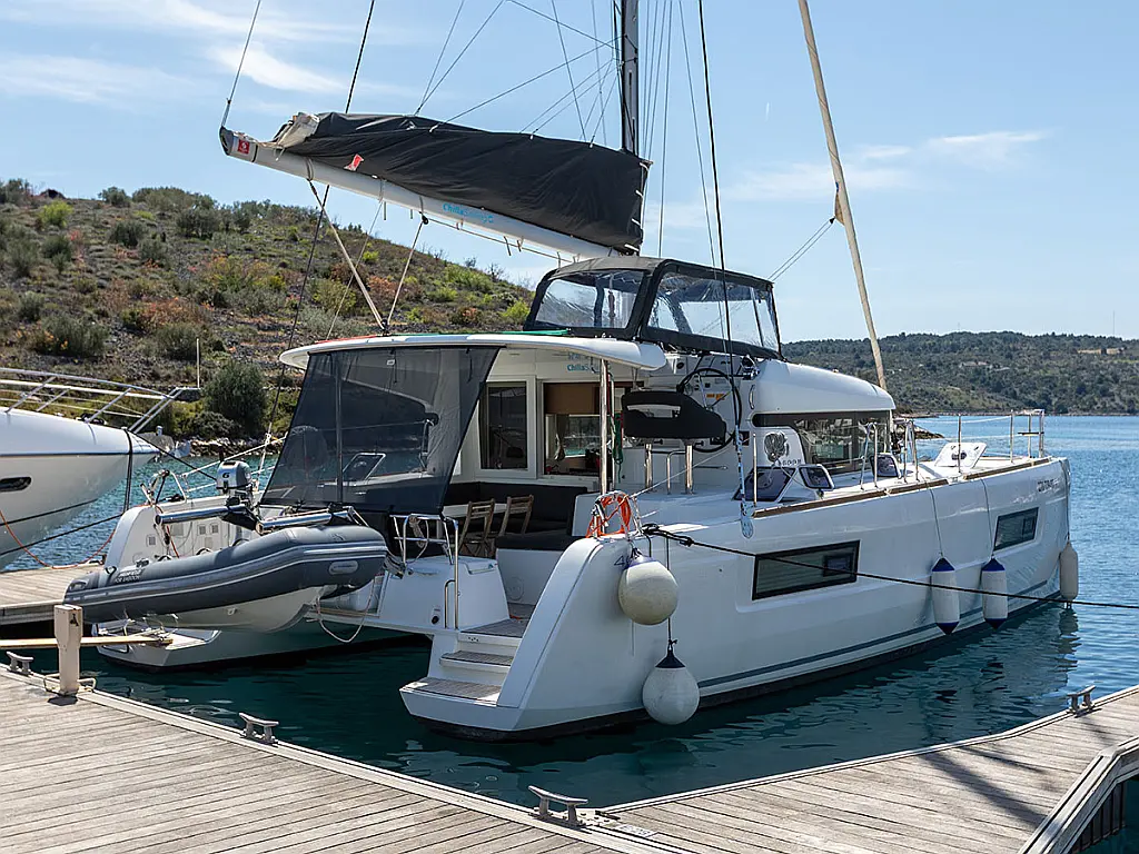 Teak Cockpit, Cockpit cushions, Dinghy, Flybridge, Bimini, Outboard engine, Cockpit speakers, Ice maker, Refrigerator, Generator, Air condition