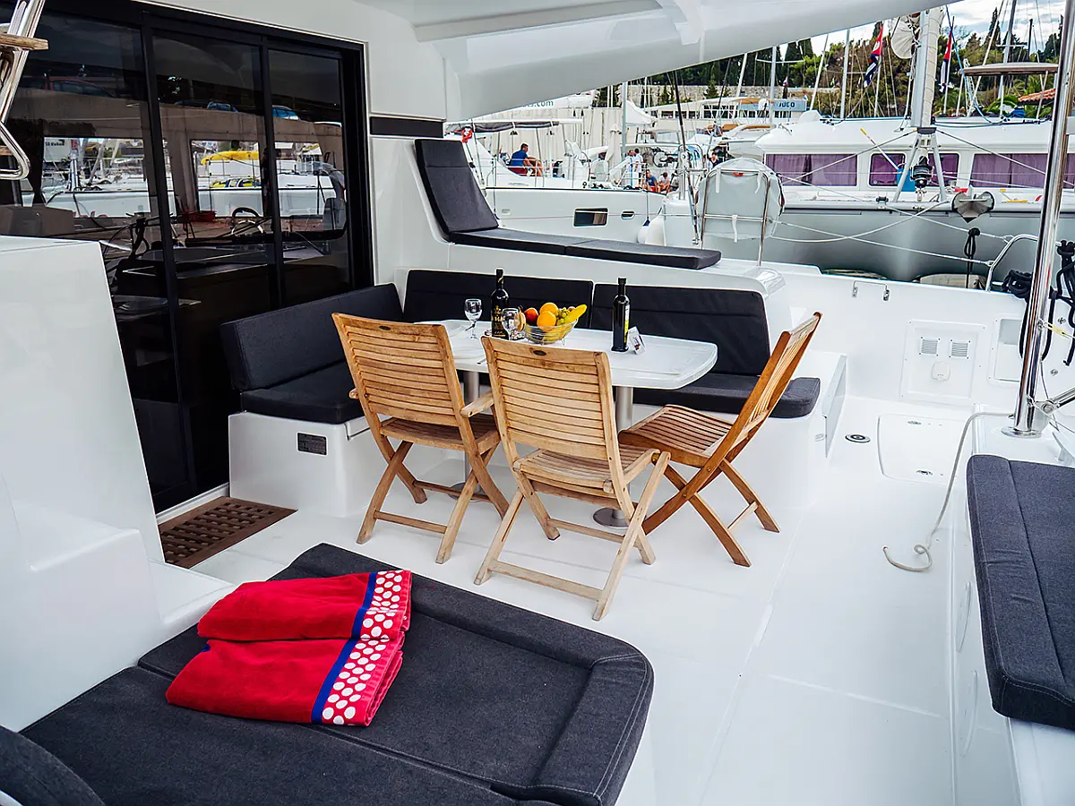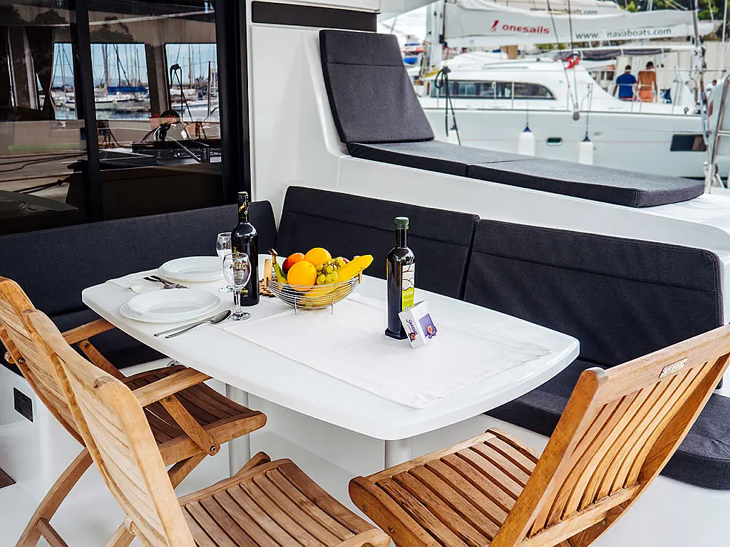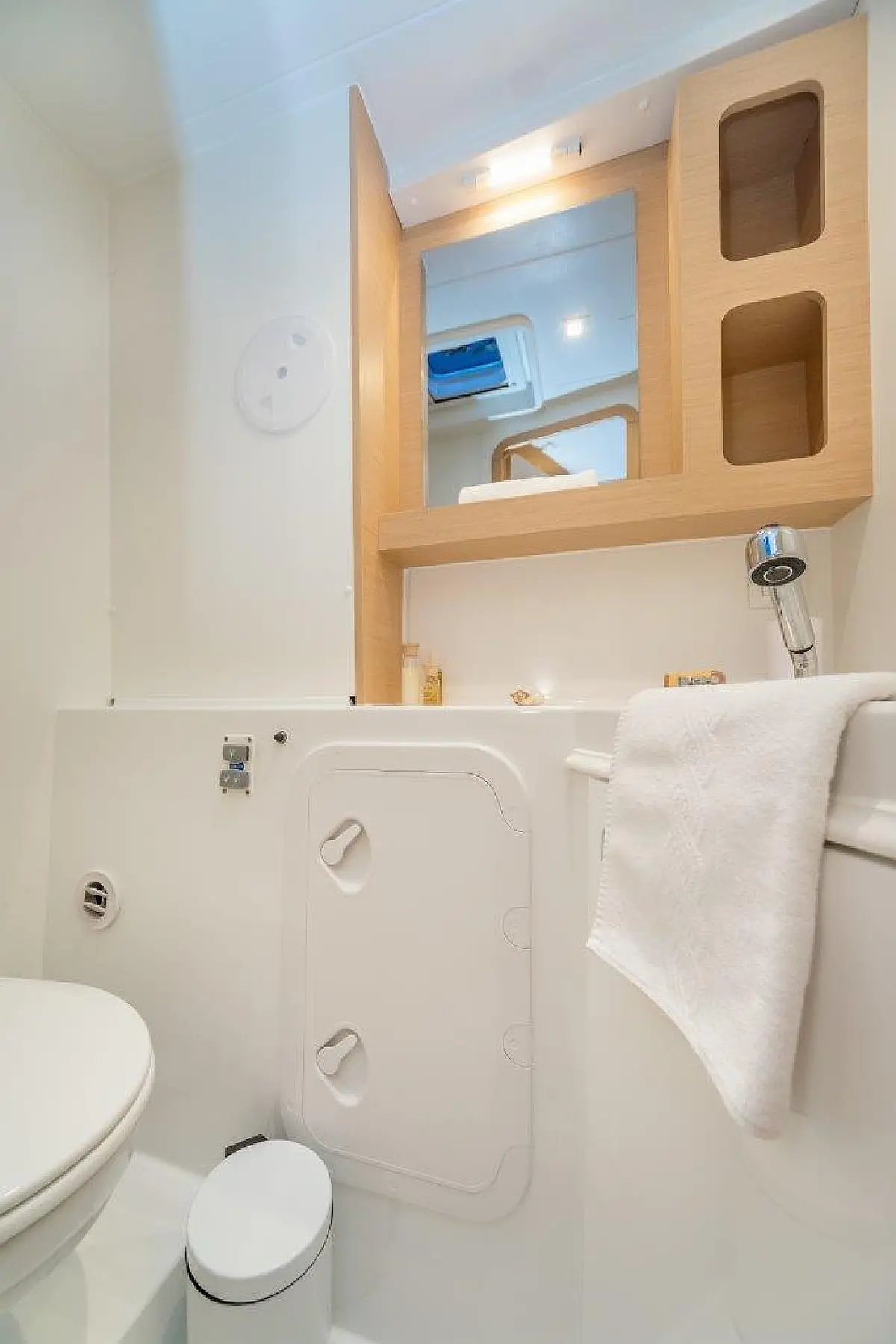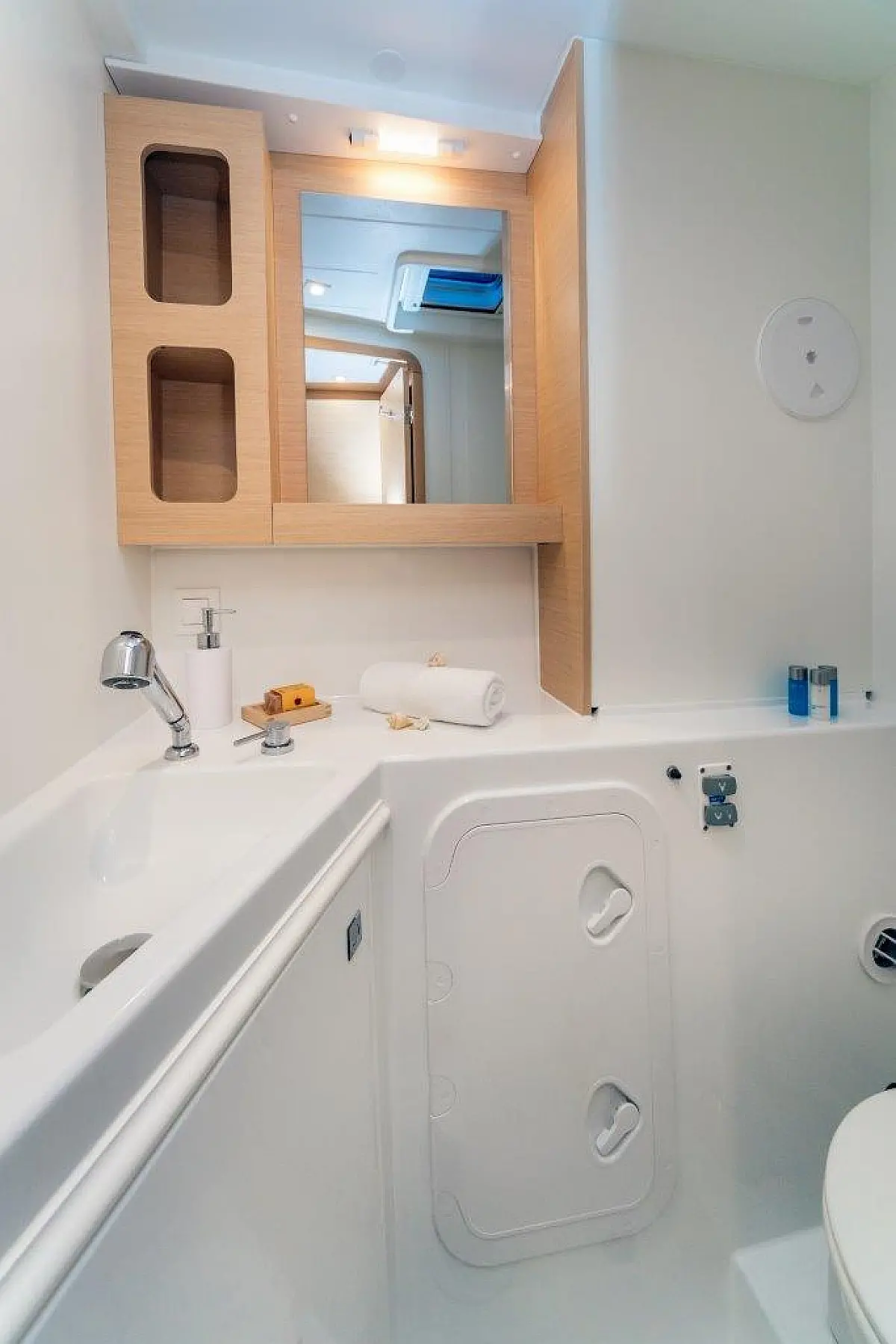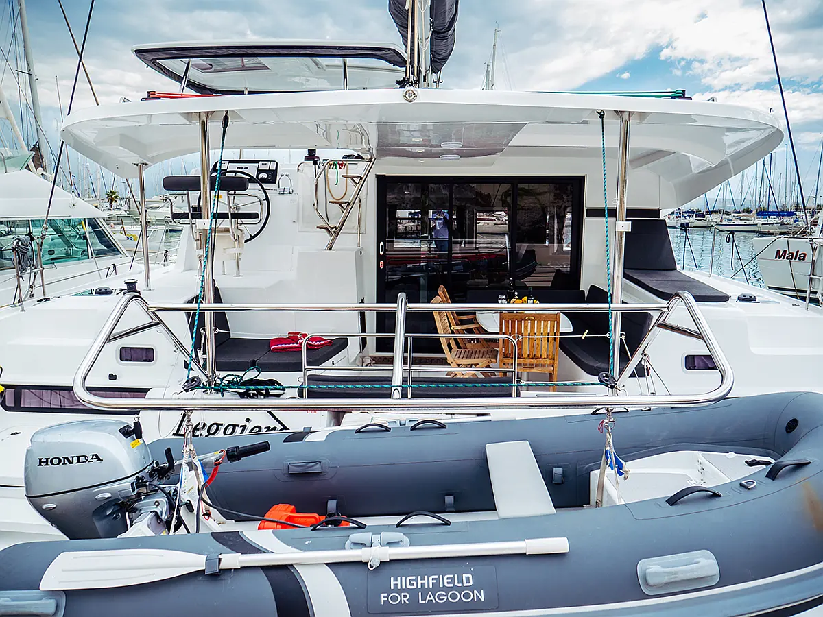 Air condition, Cockpit speakers, Heating, Cockpit cushions, Ice maker, Refrigerator, Generator, Electric toilet, Outboard engine, Dinghy