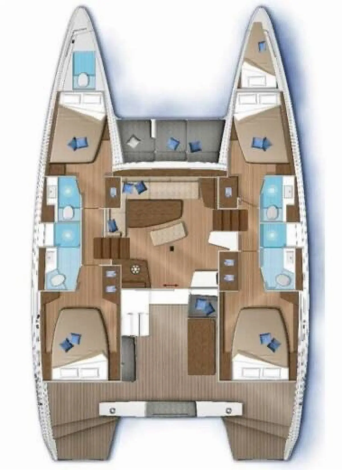 Electric winches, Bimini, Dinghy, Teak Cockpit, Cockpit cushions, Cockpit speakers, Inverter, Refrigerator, Generator, Air condition, Heating, Electric toilet, Water maker, Coffee maker, Holding tank