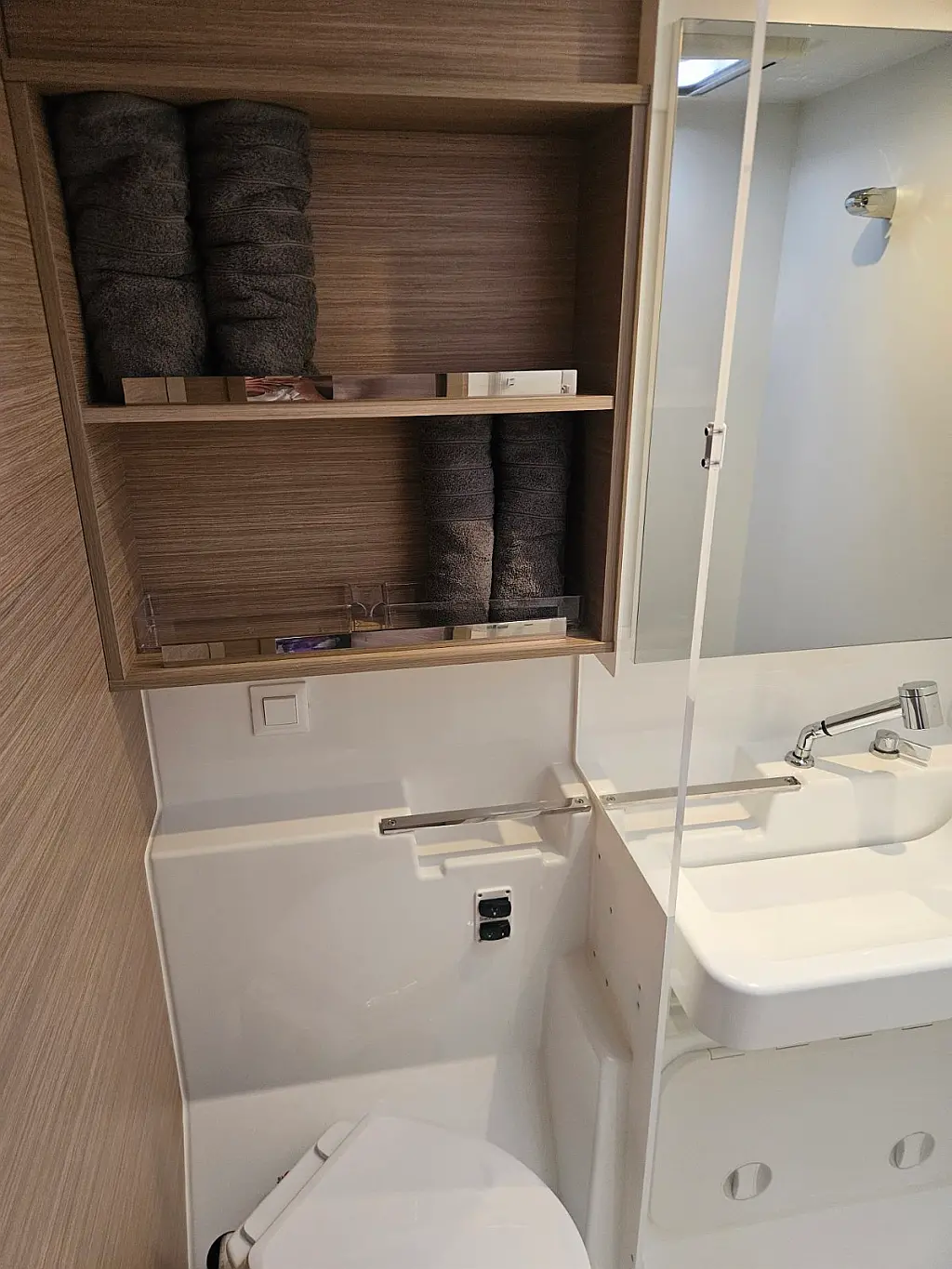 Hydraulic gangway, Generator, Air condition, Electric toilet, Water maker, Inverter, Solar Panels, Refrigerator