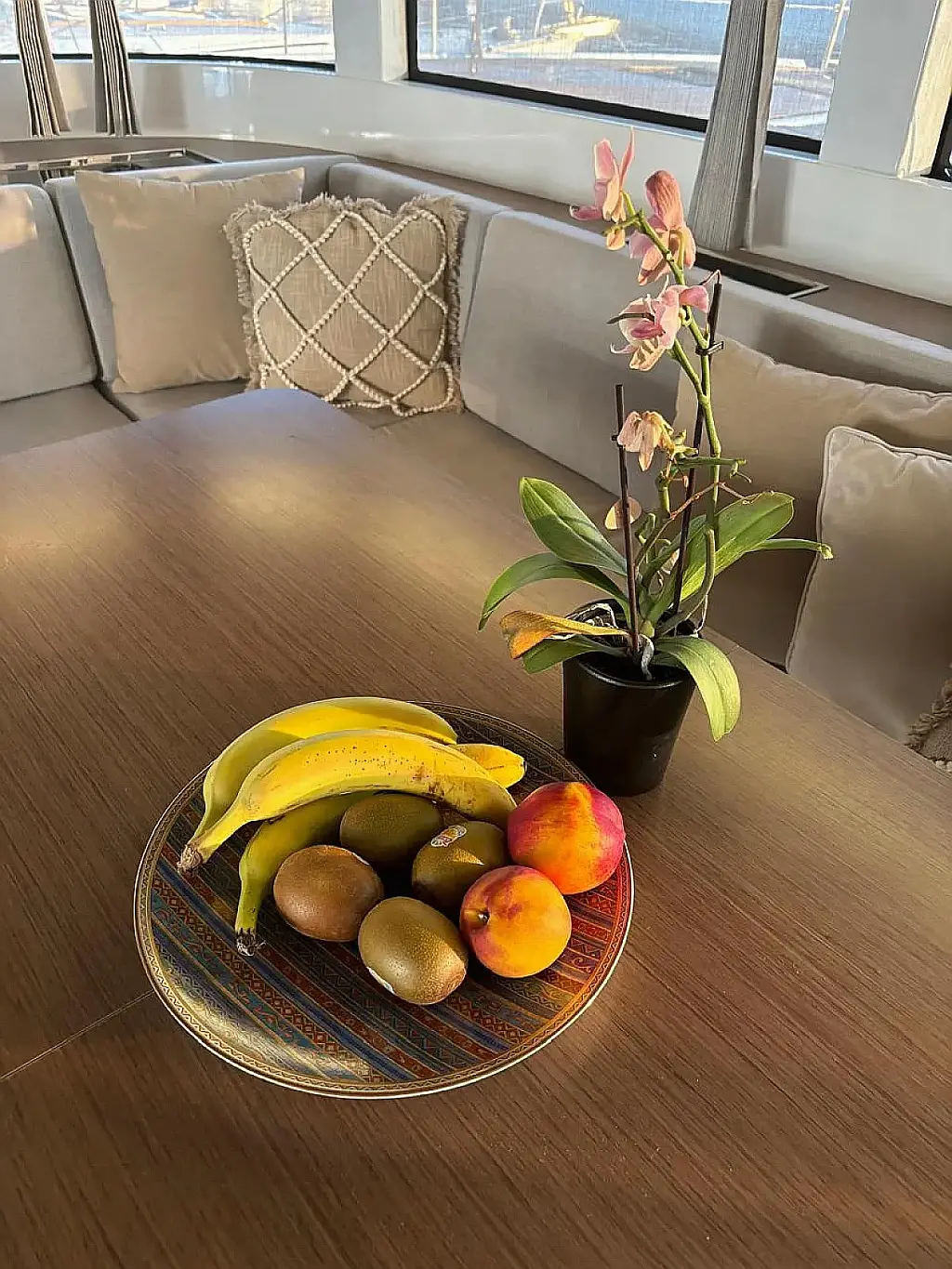 Cockpit speakers, Air condition, Bimini, Refrigerator, Coffee maker, Generator, Hydraulic gangway, Ice maker, Outboard engine, Sprayhood, Teak deck, Water maker