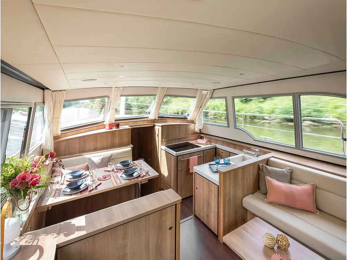 Teak deck, Coffee maker, Electric winches, Air condition, Generator, Refrigerator, Electric toilet, Inverter