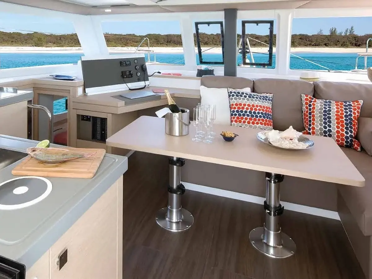 Air condition, Bimini, Coffee maker, Refrigerator, Electric winches, Solar Panels, Dinghy, Outboard engine, Cockpit speakers