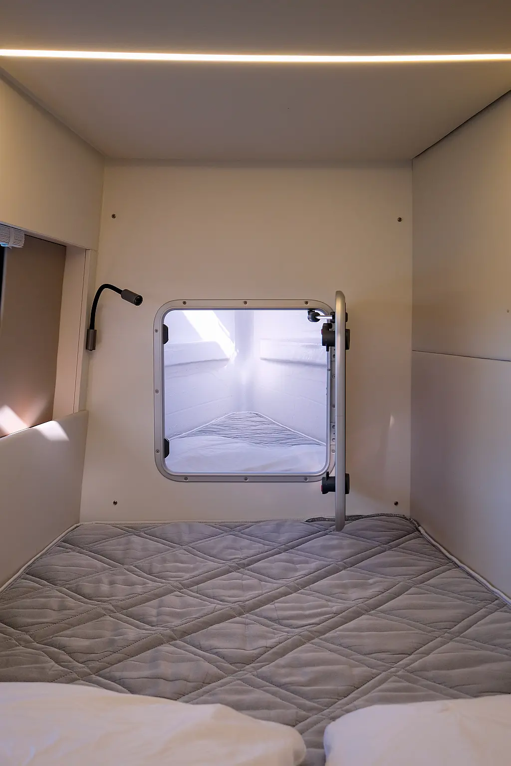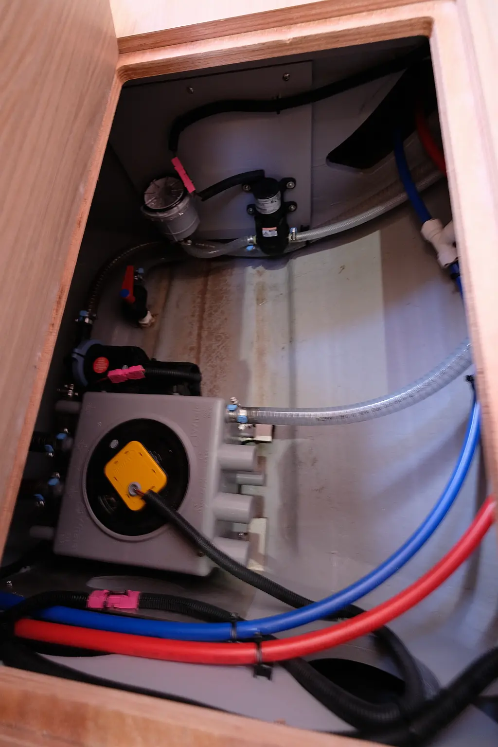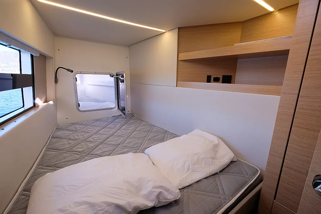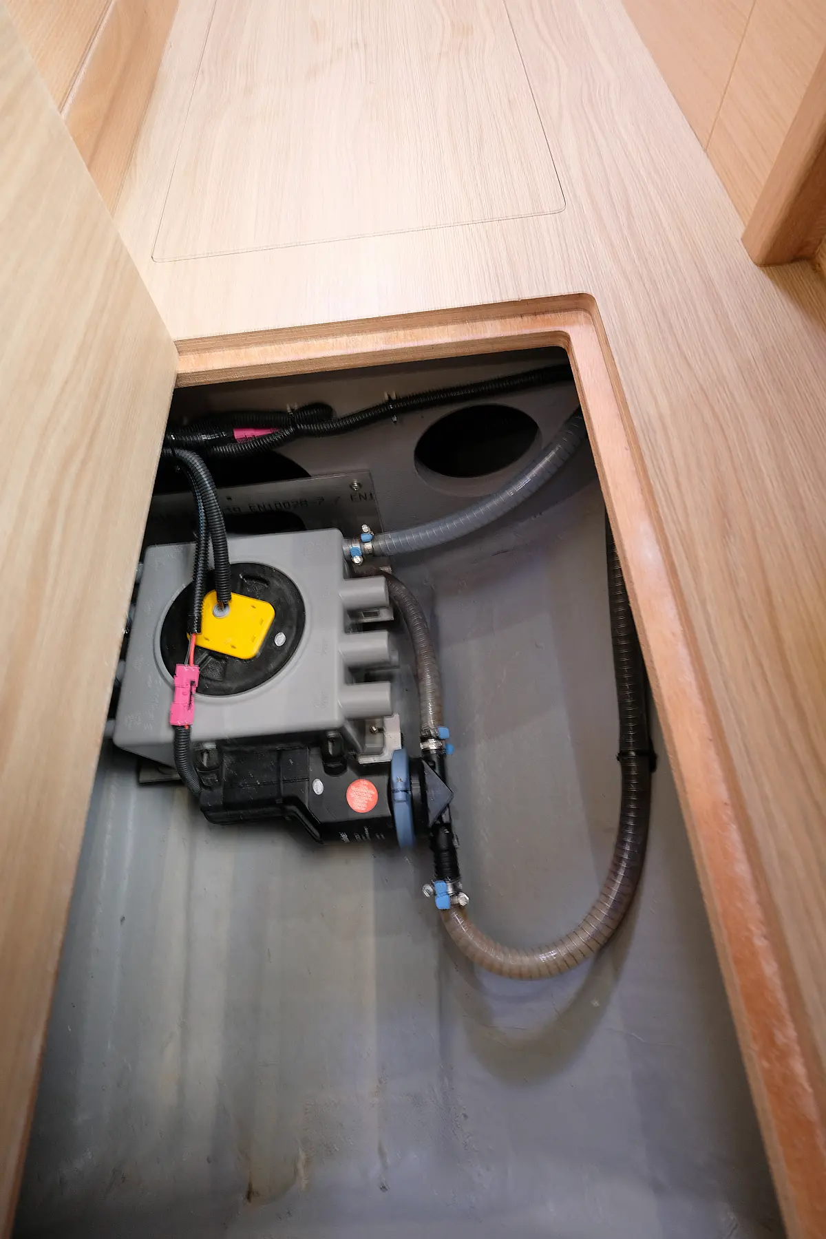 Electric toilet, Refrigerator, Cockpit cushions, Solar Panels