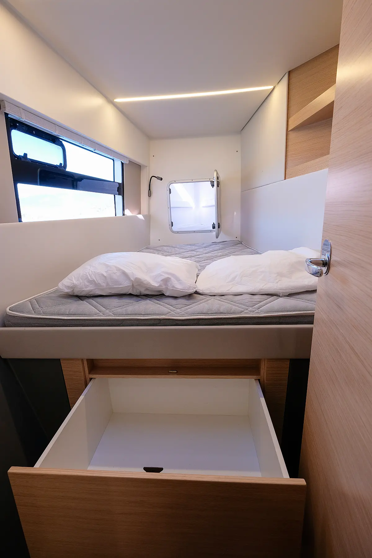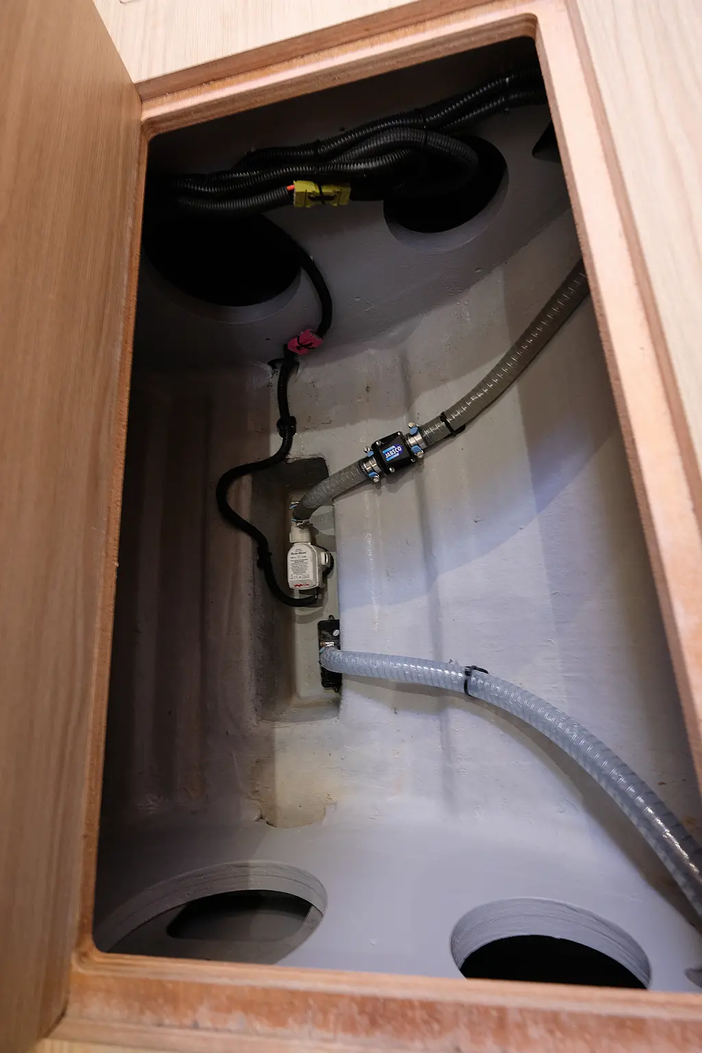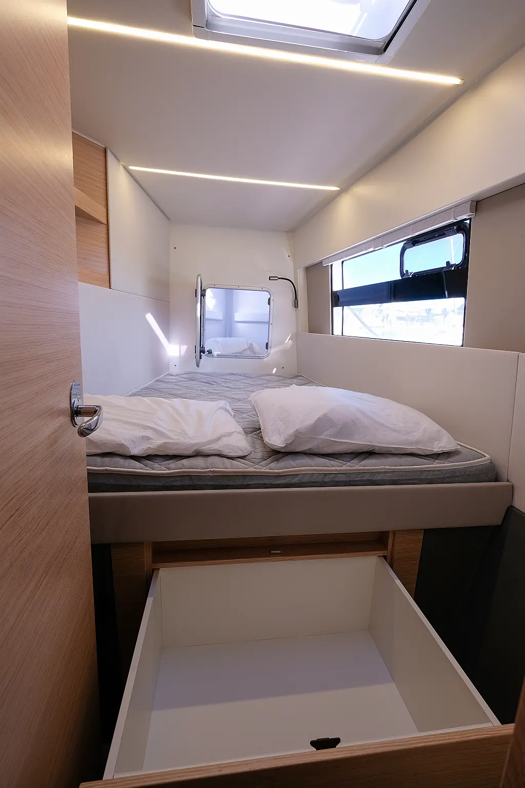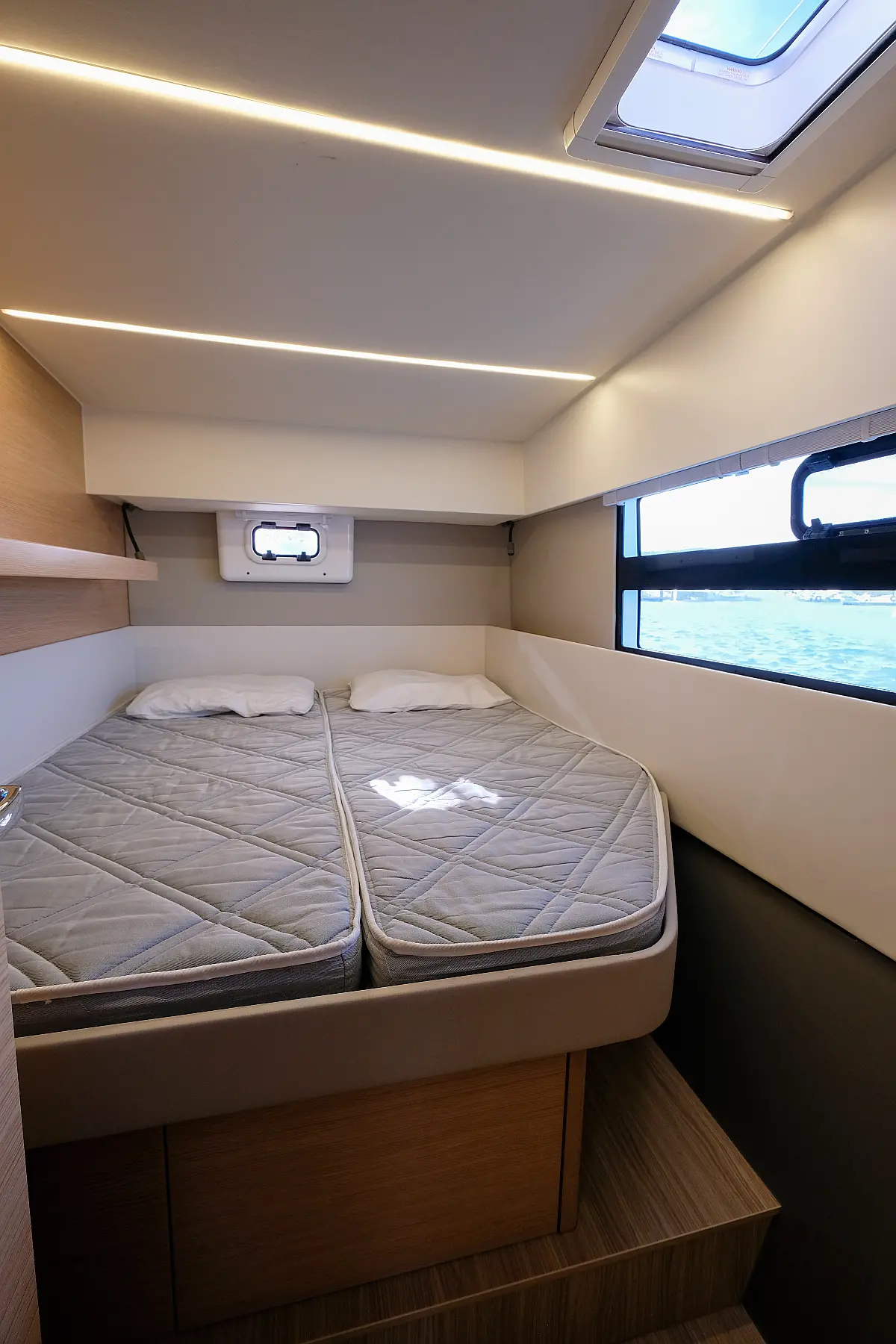 Electric toilet, Refrigerator, Cockpit cushions, Solar Panels