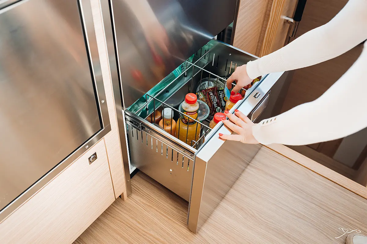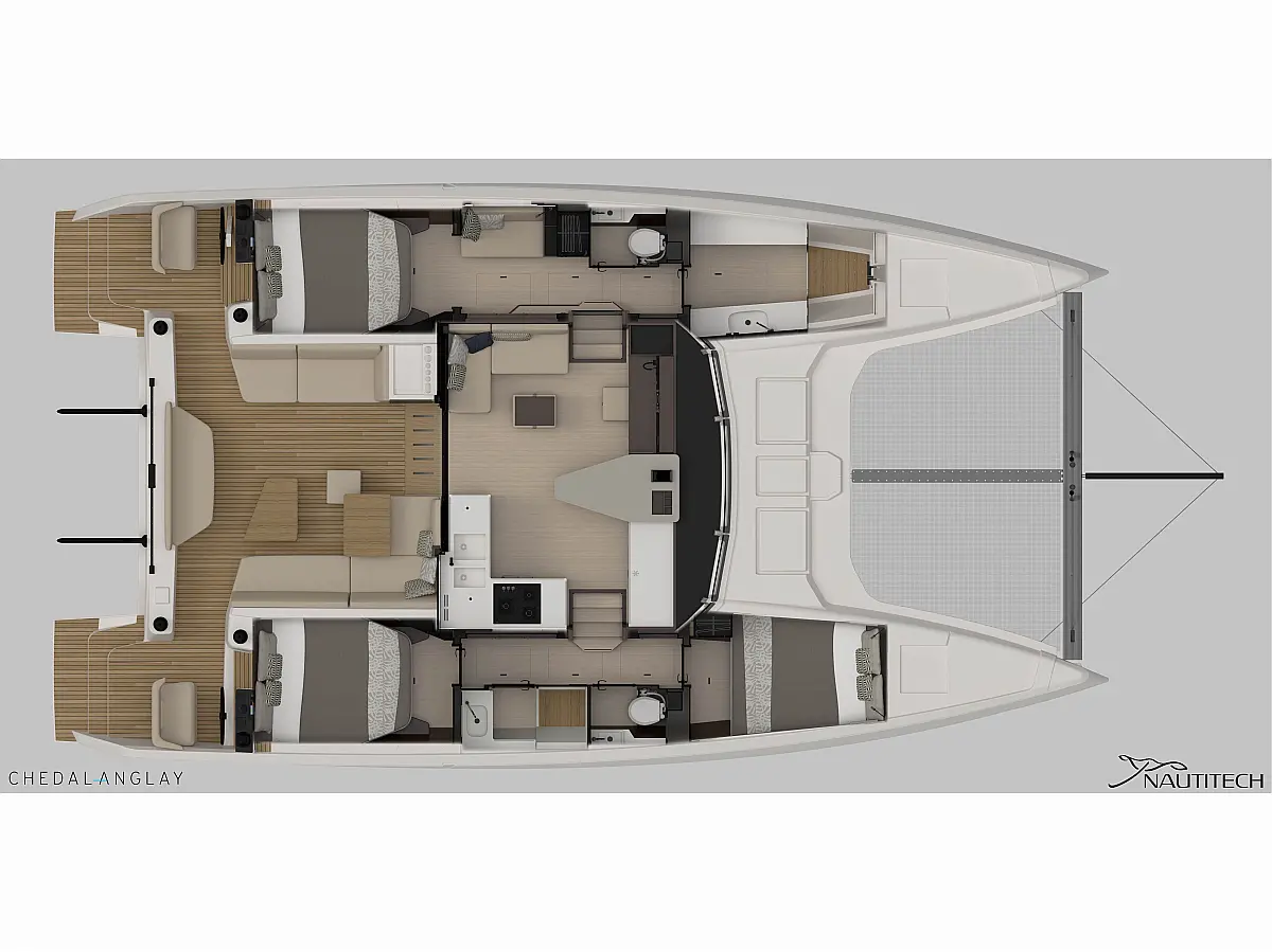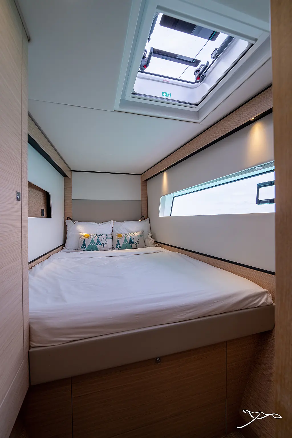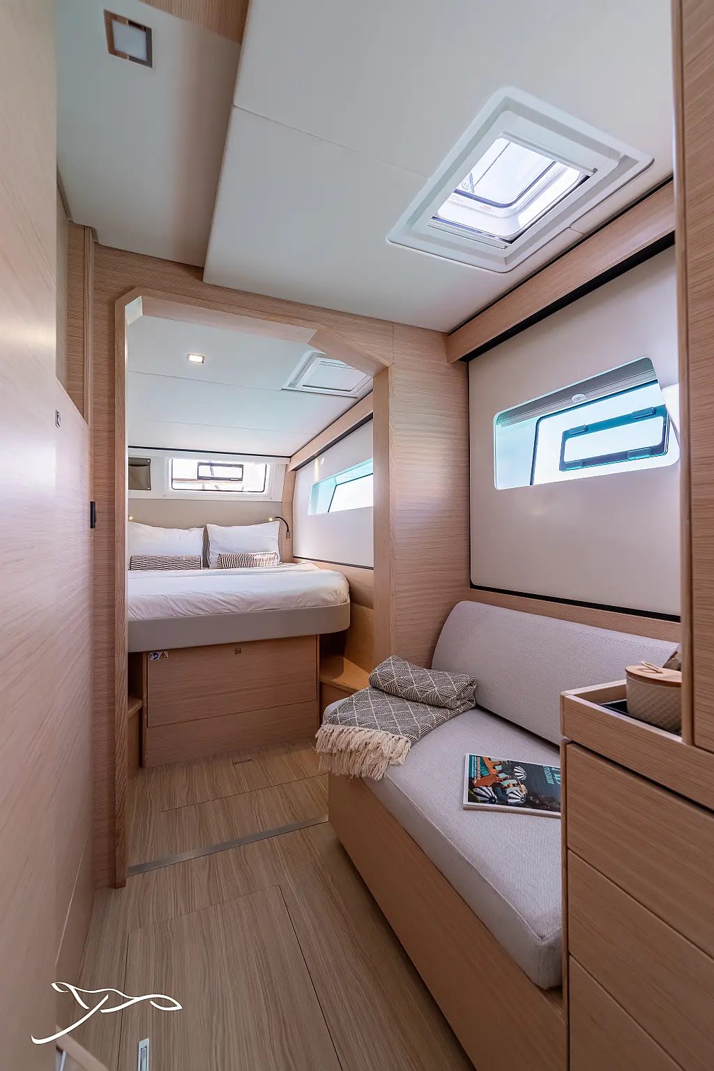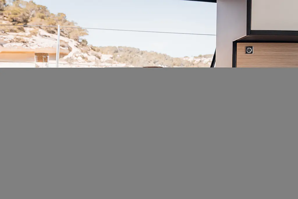 Air condition, Heating, Bimini, Refrigerator, Electric winches, Generator, Solar Panels, Outboard engine, Dinghy, Water maker, Electric toilet, Cockpit speakers