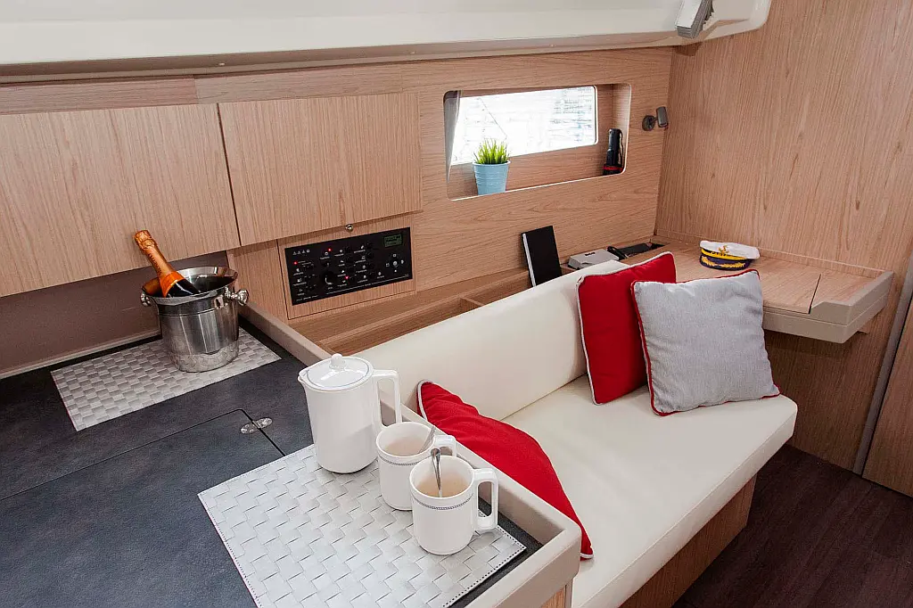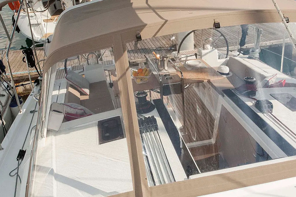 Dinghy, Outboard engine, Swimming platform, Bimini, Cockpit speakers, Refrigerator, Sprayhood, Teak Cockpit