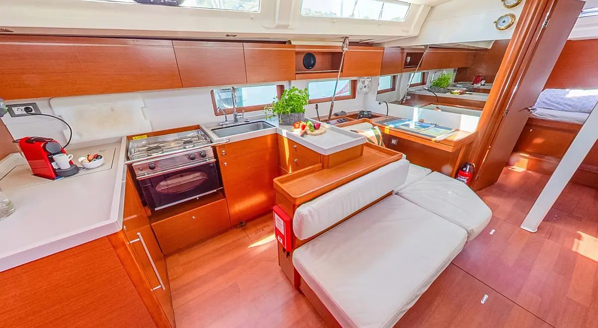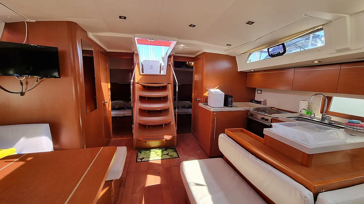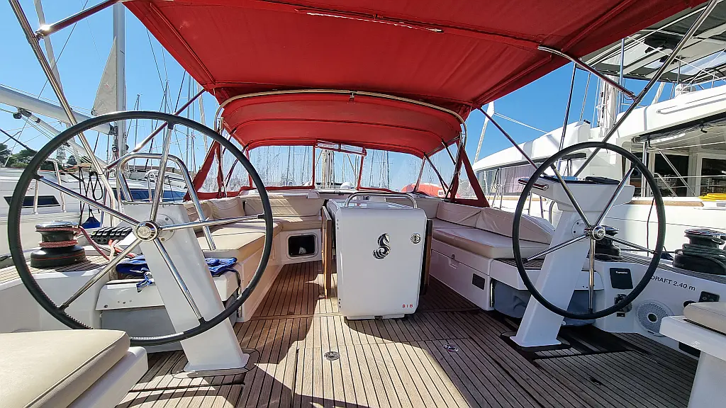 Ice maker, Refrigerator, Bimini, Sprayhood, Outboard engine, Electric winches, Coffee maker, Generator, Electric toilet, Teak Cockpit, Air condition, Heating, Cockpit cushions