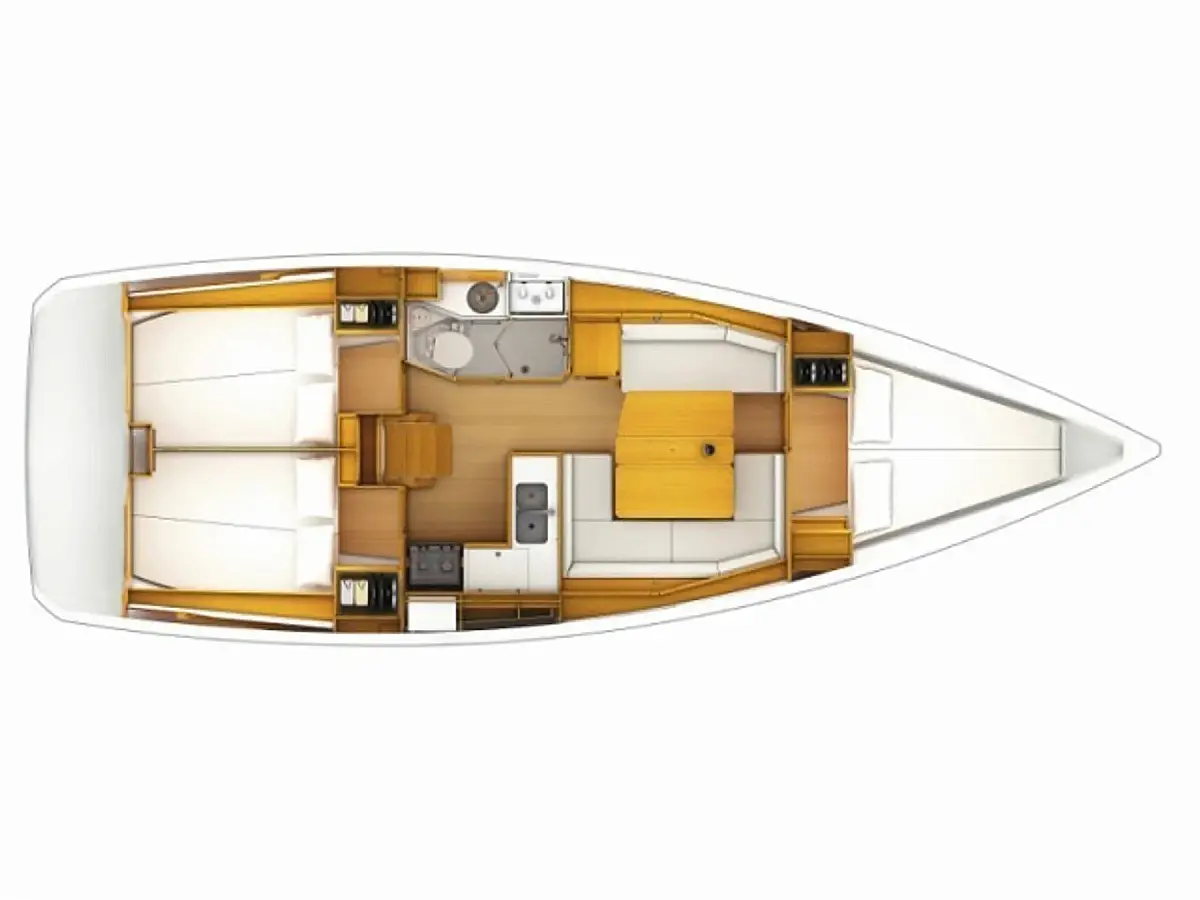 Cockpit cushions, Refrigerator, Bimini, Dinghy, Heating, Teak Cockpit, Inverter
