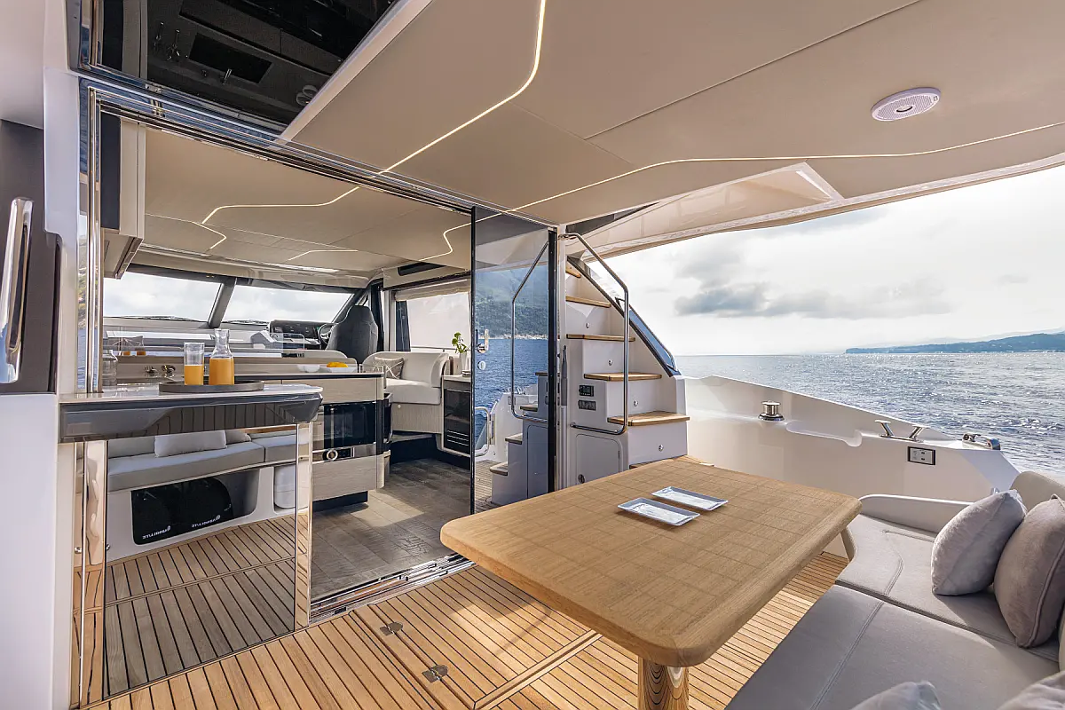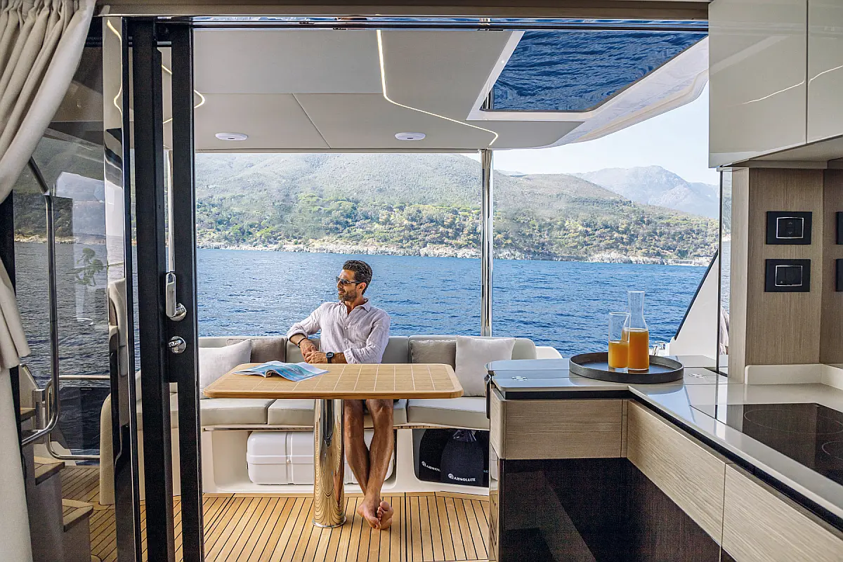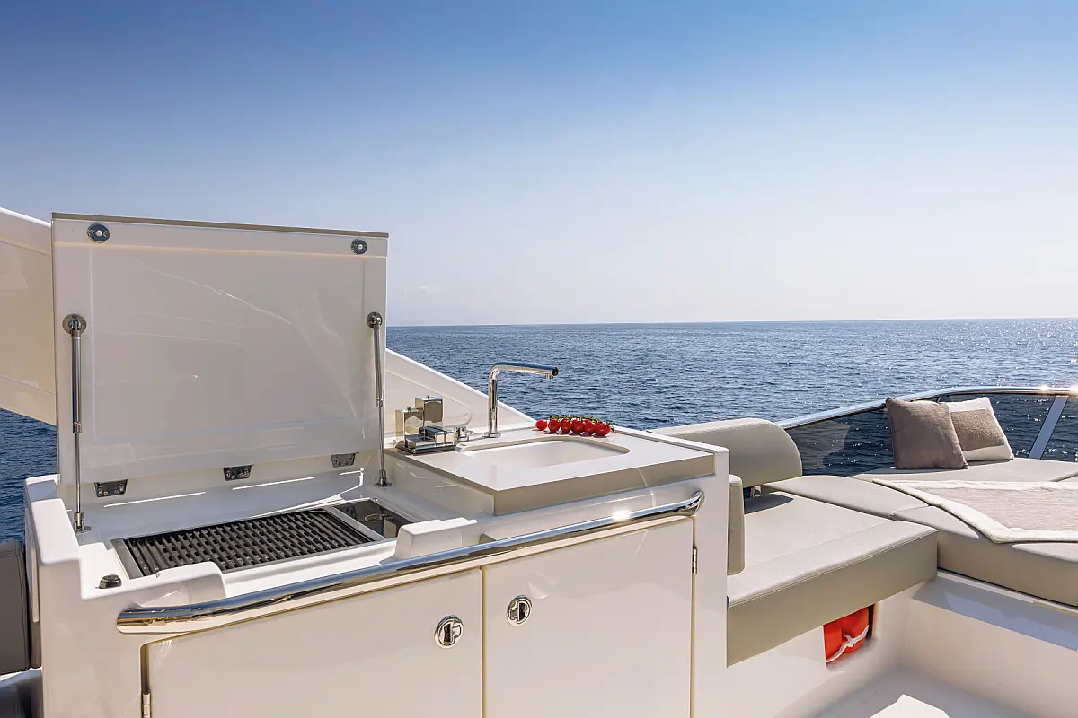 Kühlschrank, Wi-Fi und Internet, Flybridge, Wassermacher, Teak Cockpit, Heizung, Kaffeemaschine