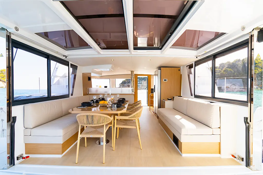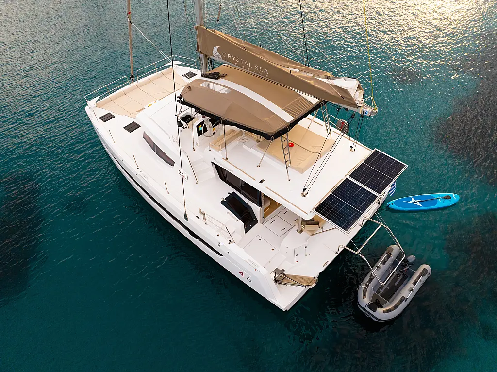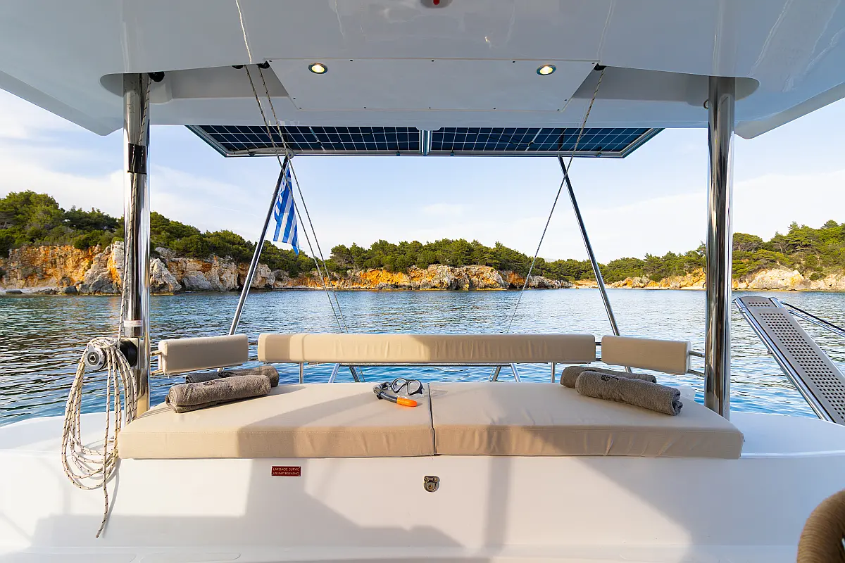 Bimini, Cockpit-Kissen, Elektrische Winch (Segel), Generator, Klimaanlage, Wassermacher, Solar-Panele, Inverter