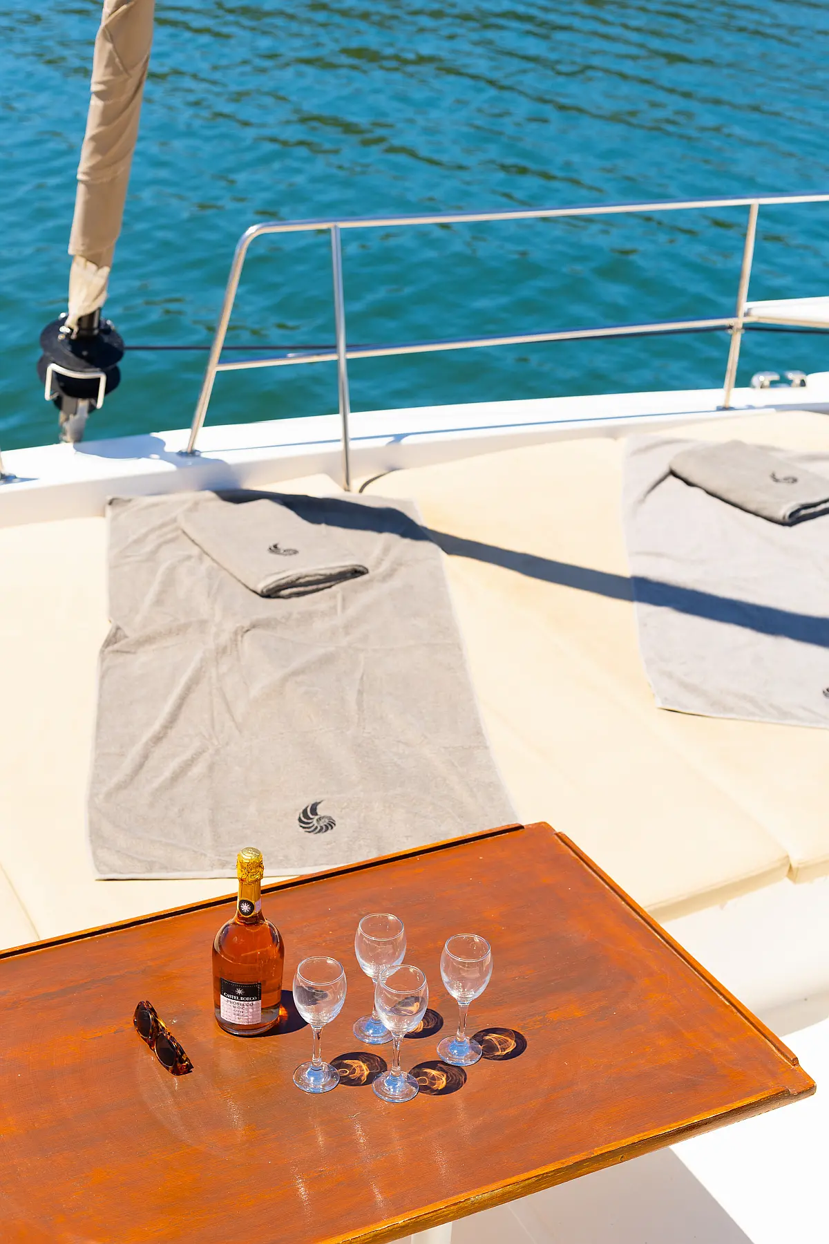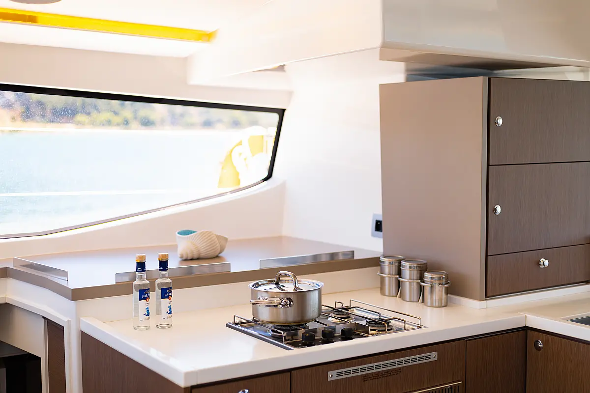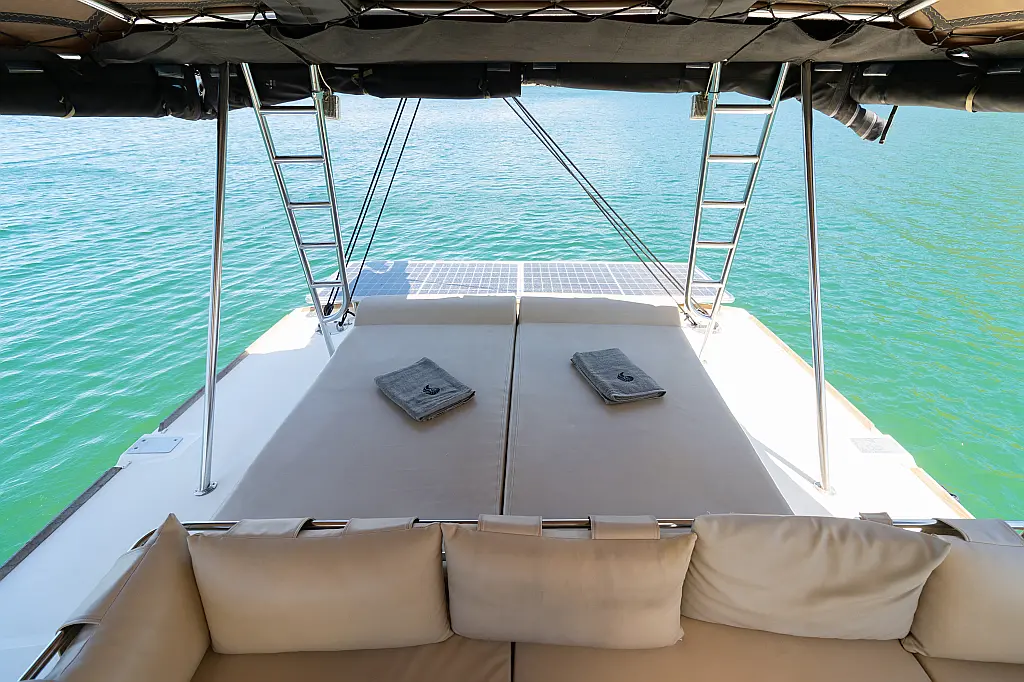 Sprayhood, Bimini, Cockpit-Kissen, Elektrische Winch (Segel), Beiboot, Generator, Klimaanlage, Wassermacher