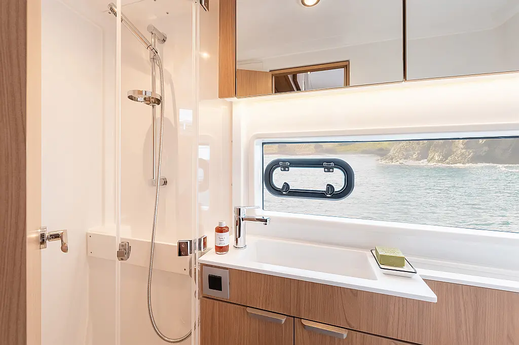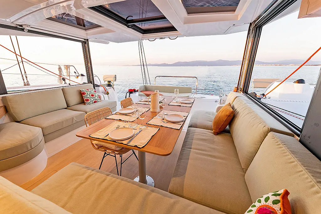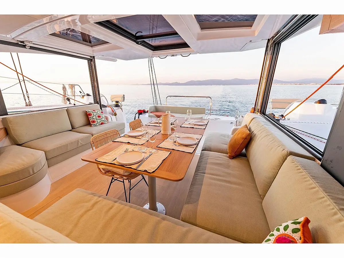 Sprayhood, Bimini, Beiboot, Wi-Fi und Internet, Elektrische Winch (Segel), Inverter, Elektrische Toilette, Kühlschrank, Grill im Cockpit, Cockpit-Kissen, Solar-Panele, Lautsprecher im Cockpit
