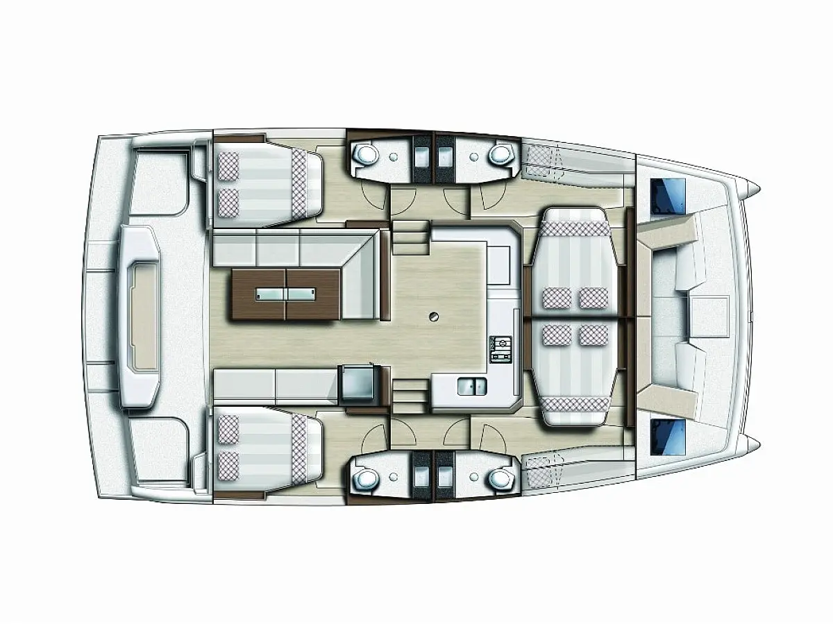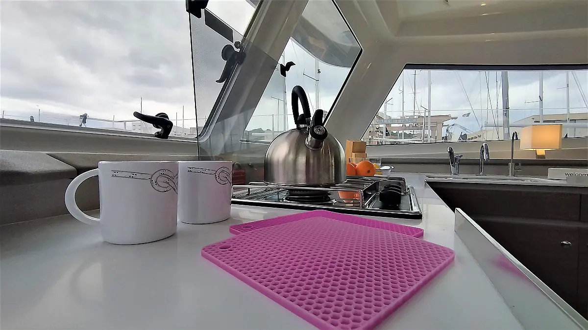 Cockpit-Kissen, Grill im Cockpit, Elektrische Toilette, Kühlschrank, Elektrische Winch (Segel), Inverter, Solar-Panele