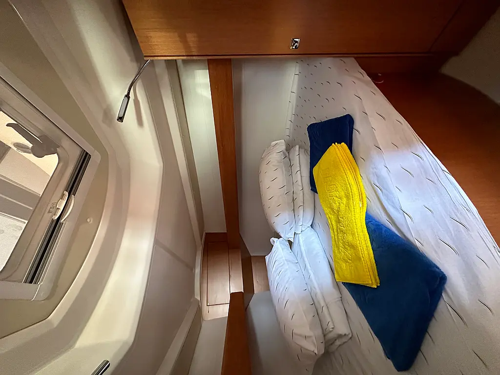 Bimini, Sprayhood, Außenbordmotor, Teak Cockpit, Elektrische Toilette, Heizung, Solar-Panele, Cockpit-Kissen