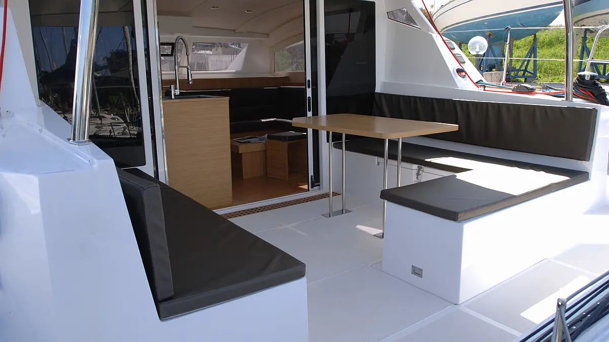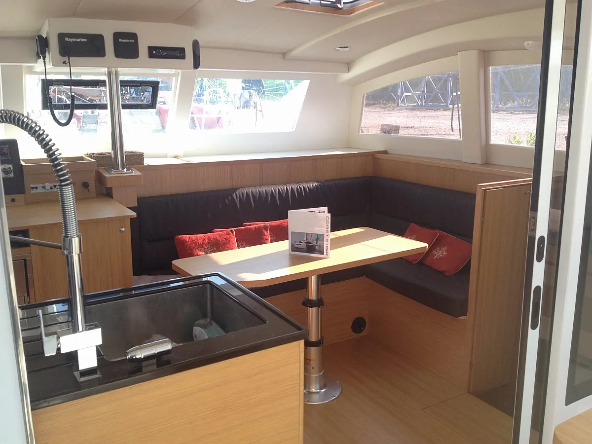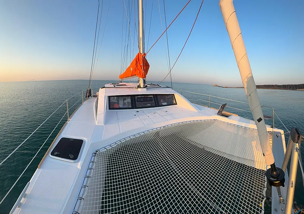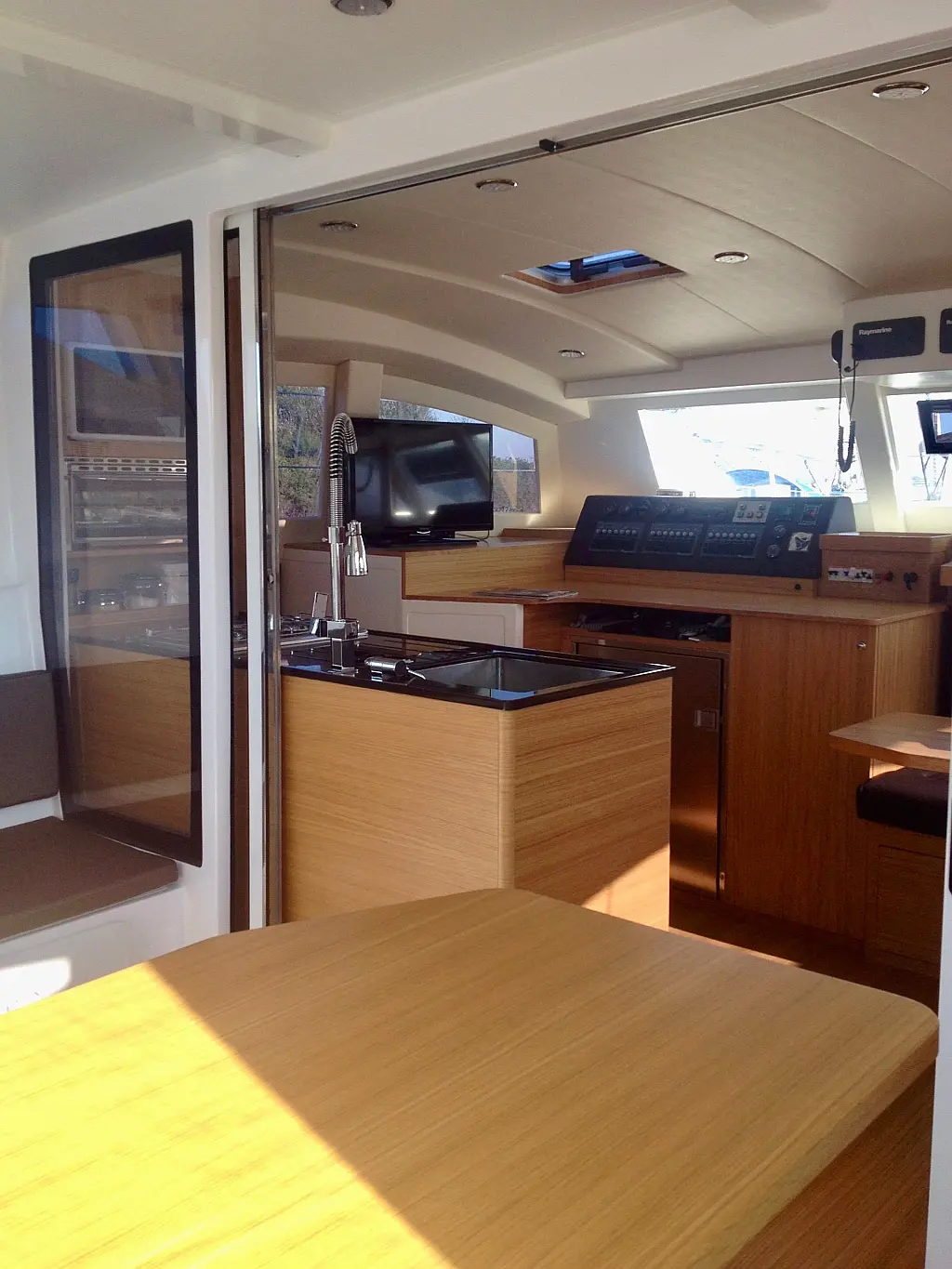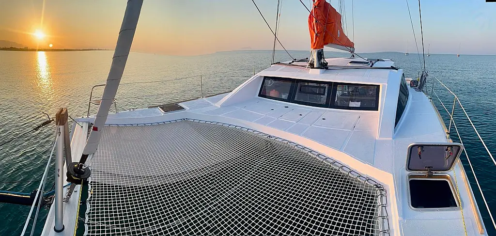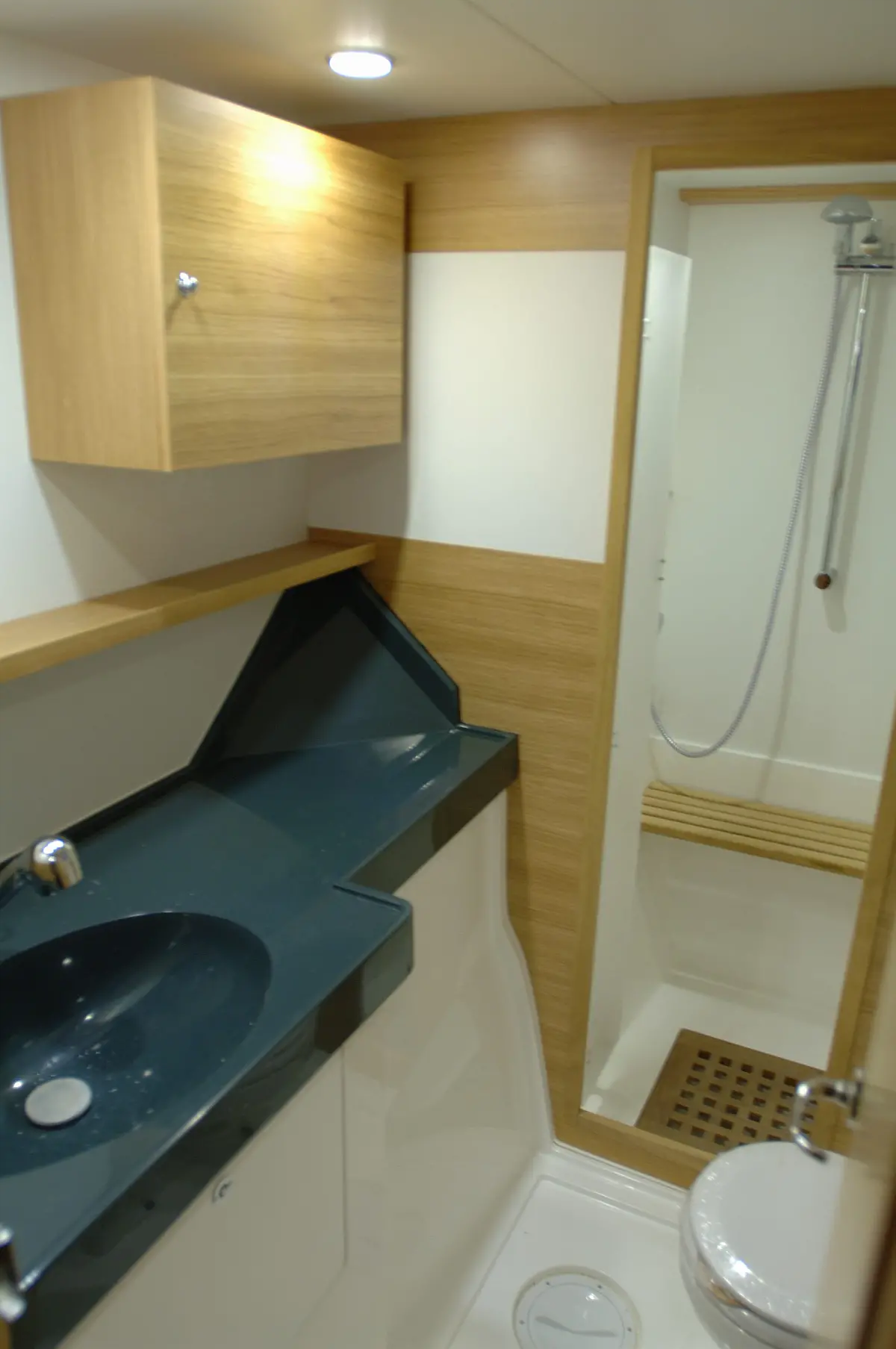 Bimini, Kaffeemaschine, Elektrische Toilette, Elektrische Winch (Segel), Inverter, Kühlschrank, Solar-Panele, Sprayhood, Beiboot, Wassermacher
