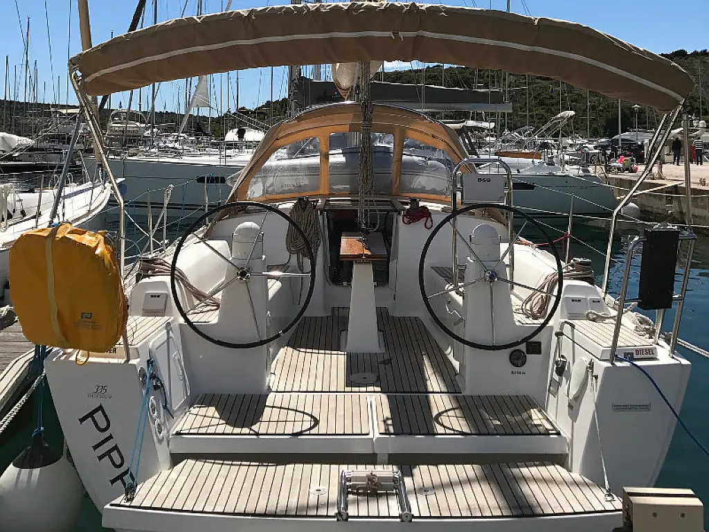 Teak Cockpit, Sprayhood, Bimini, Cockpit-Kissen, Außenbordmotor, Lautsprecher im Cockpit