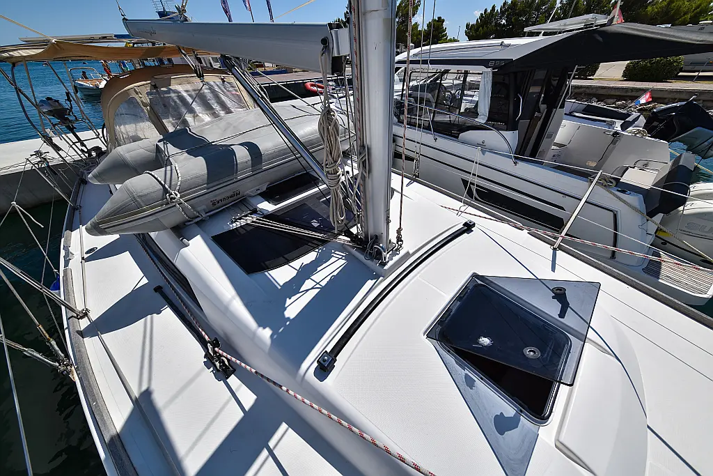 Lautsprecher im Cockpit, Badeplattform, Bimini, Cockpit-Kissen, Kühlschrank, Sprayhood, Wi-Fi und Internet, Teak Cockpit, Solar-Panele, Fäkalientank