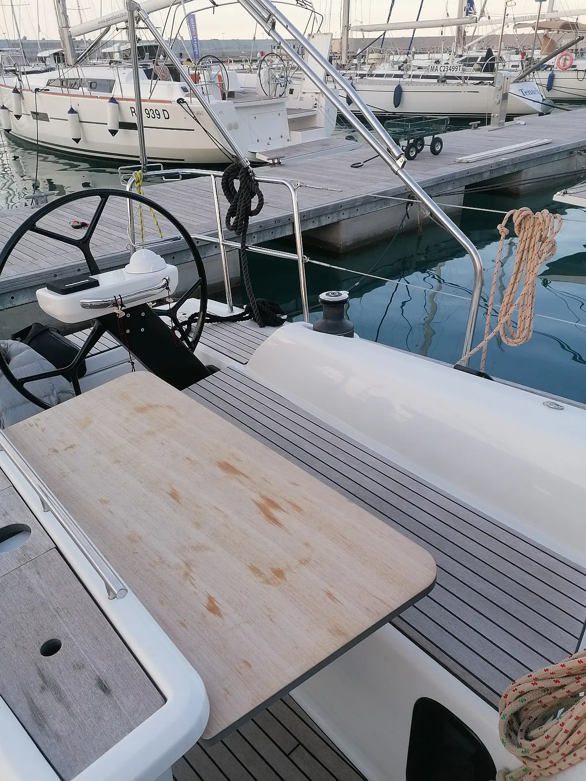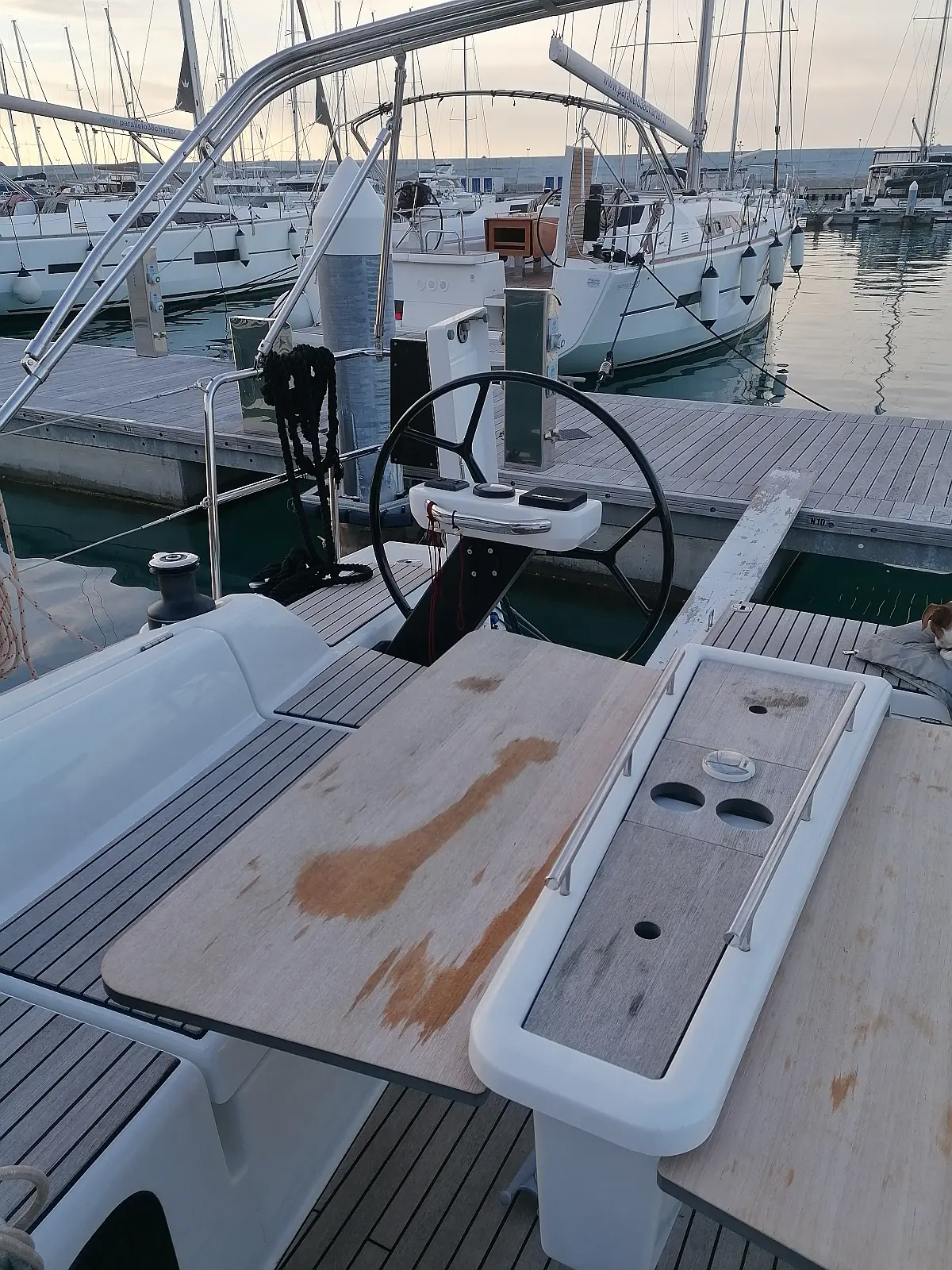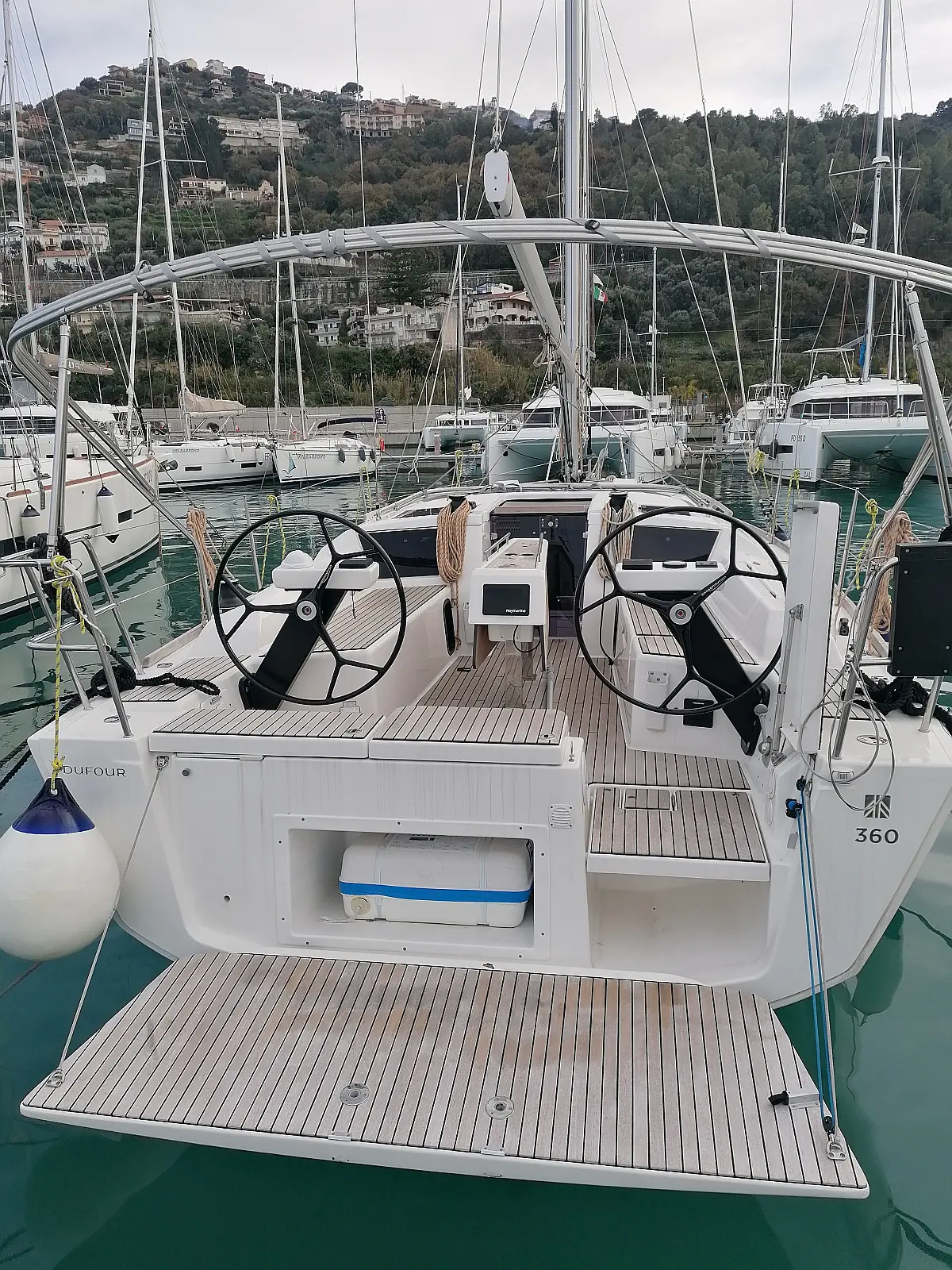 Lautsprecher im Cockpit, Bimini, Teak Cockpit, Kühlschrank, Beiboot