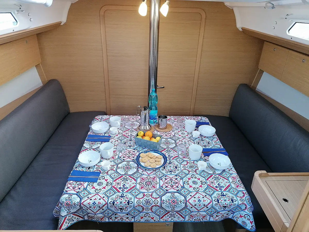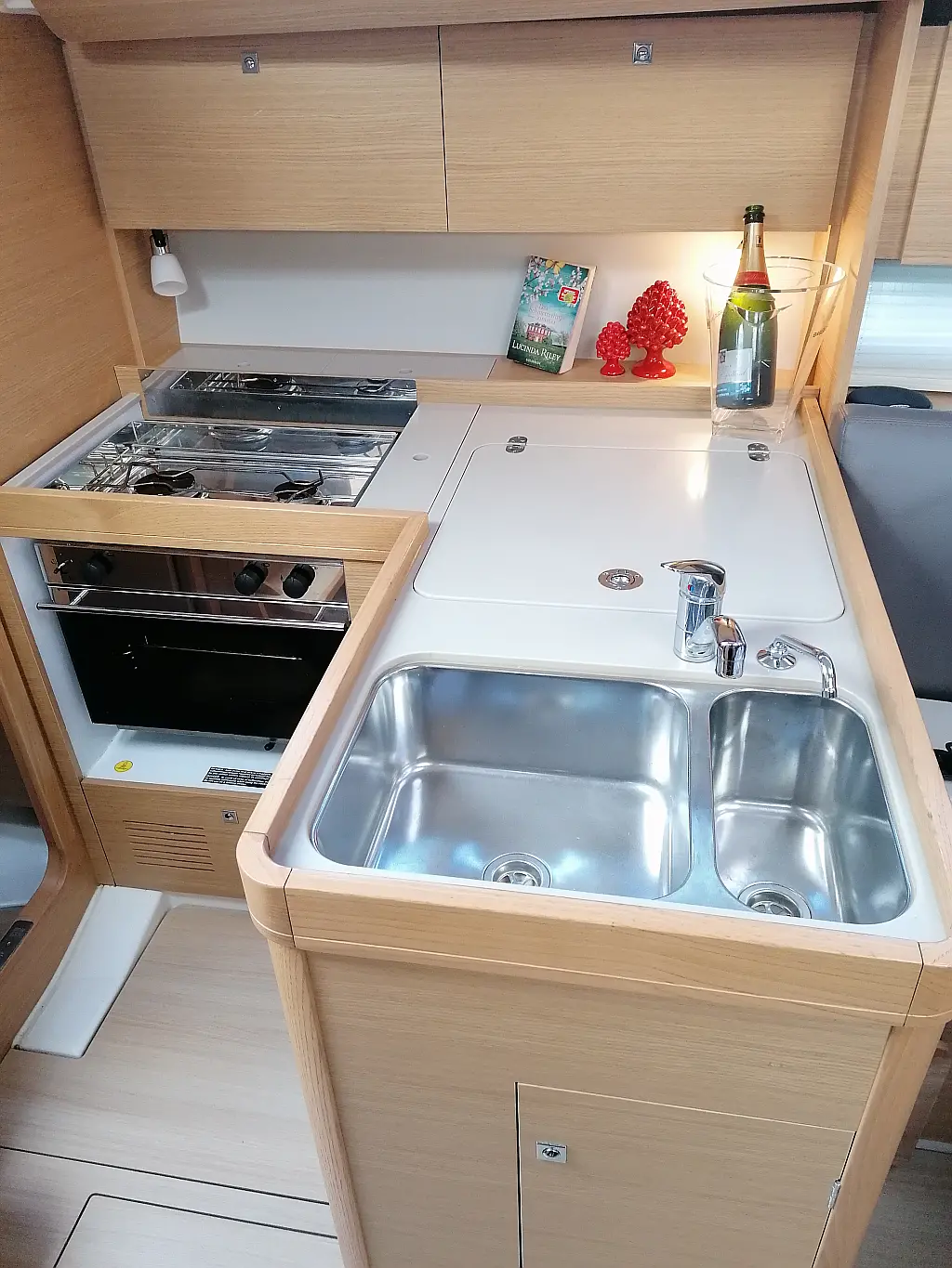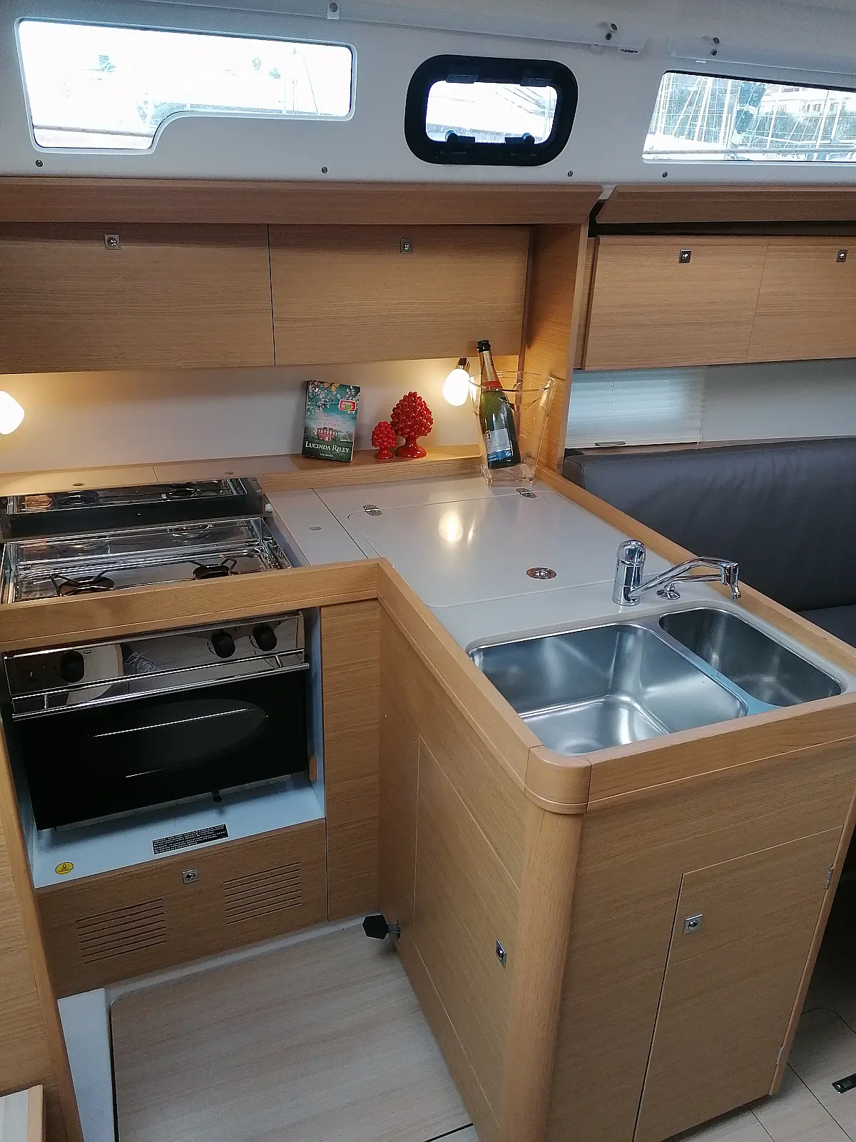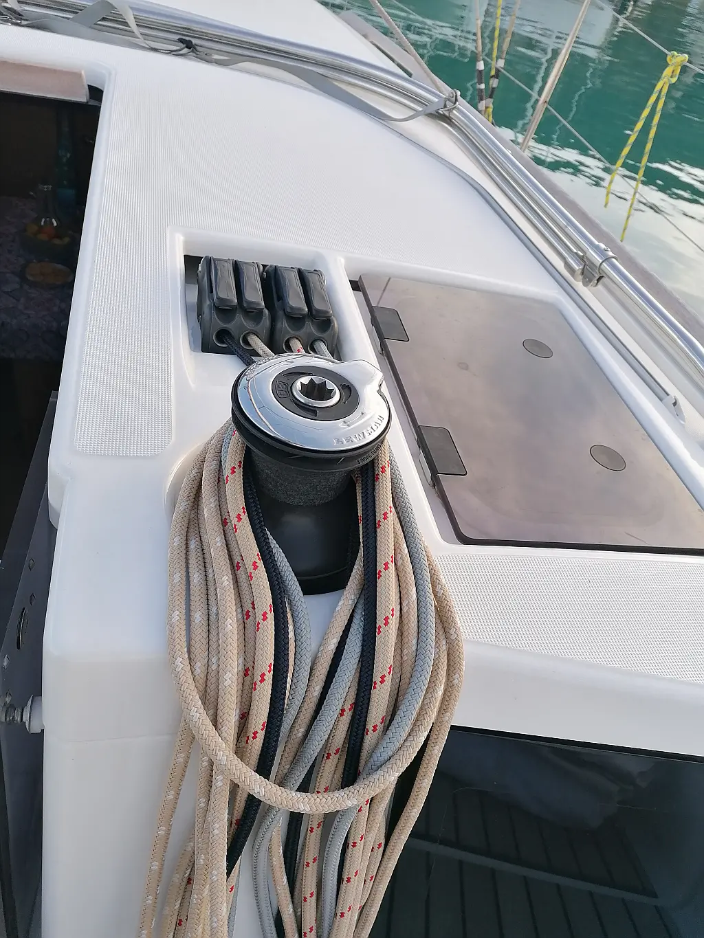 Lautsprecher im Cockpit, Bimini, Teak Cockpit, Kühlschrank, Beiboot