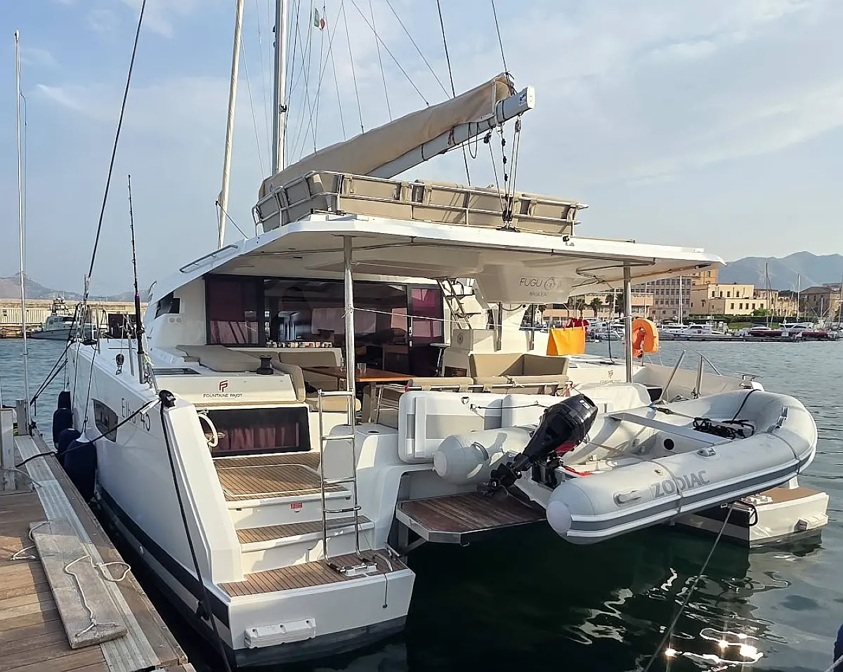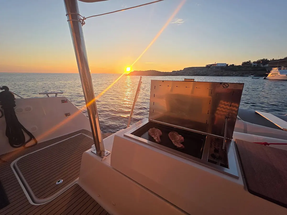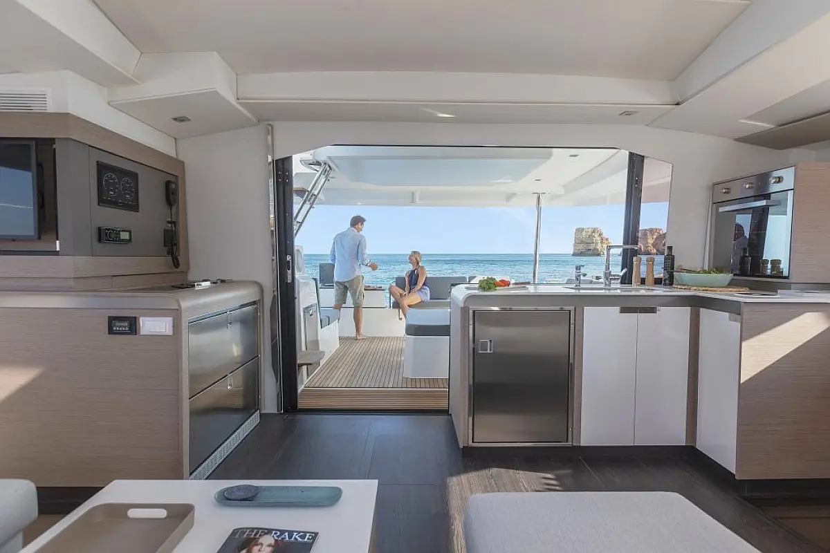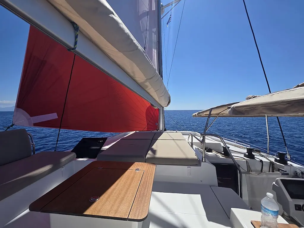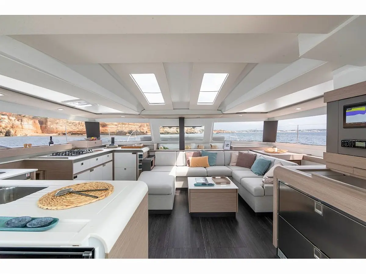 Sprayhood, Bimini, Klimaanlage, Generator, Inverter, Beiboot, Elektrische Toilette, Grill im Cockpit, Hydraulische Gangway, Cockpit-Kissen, Solar-Panele, Lautsprecher im Cockpit, Kühlschrank