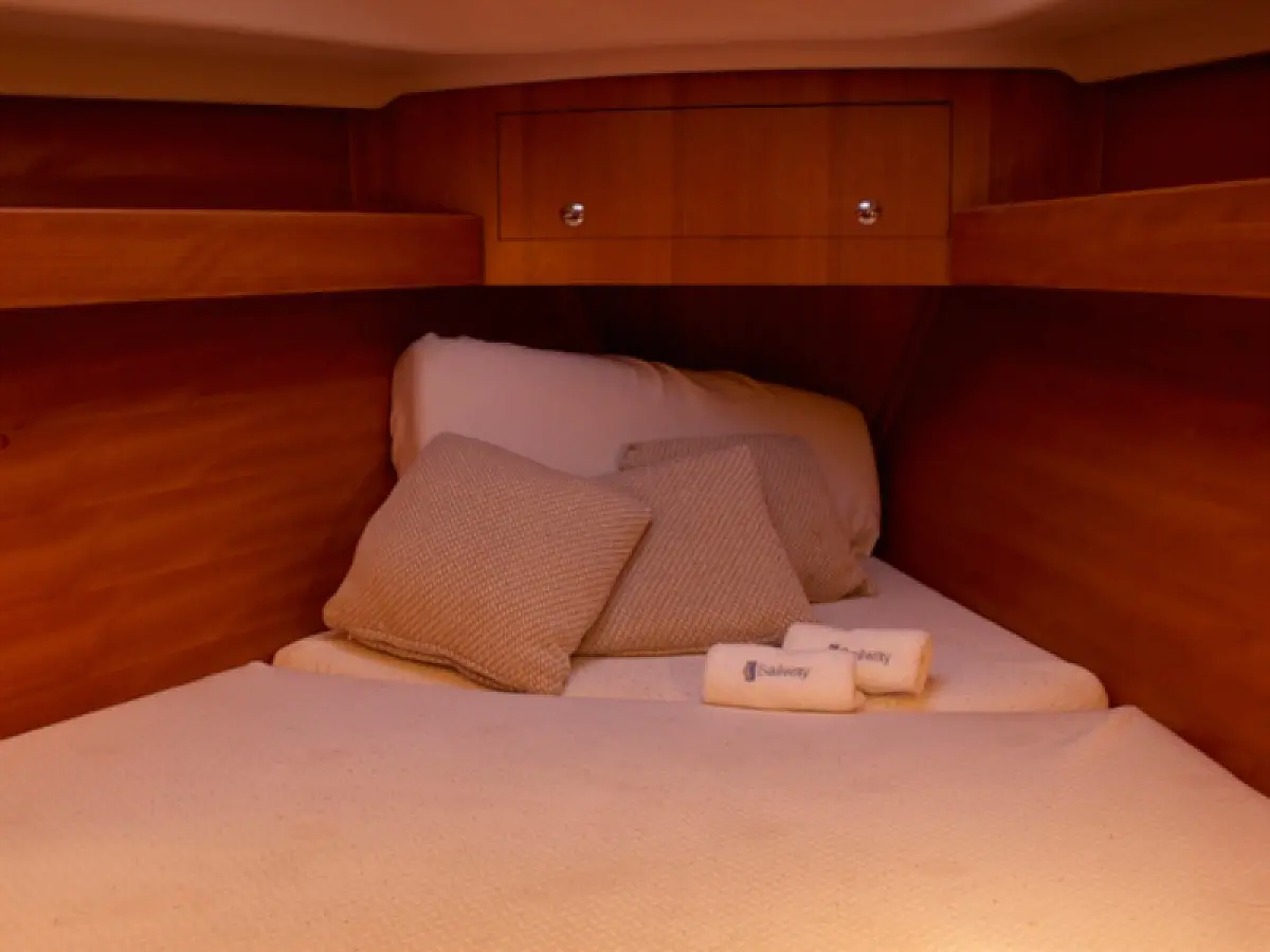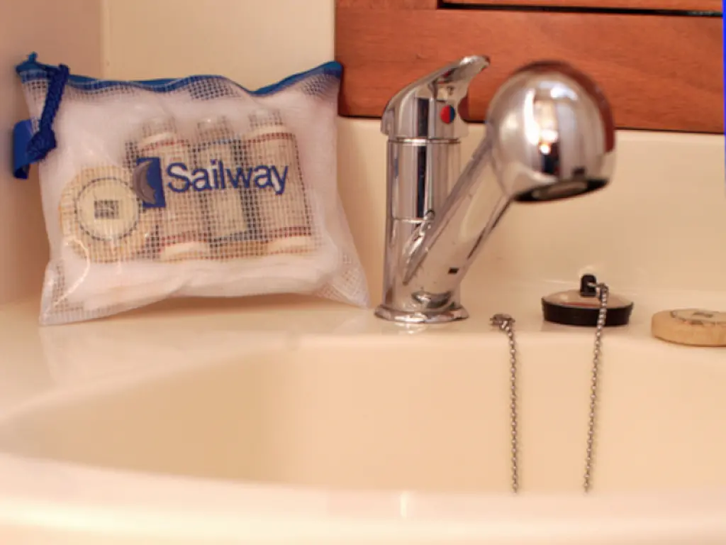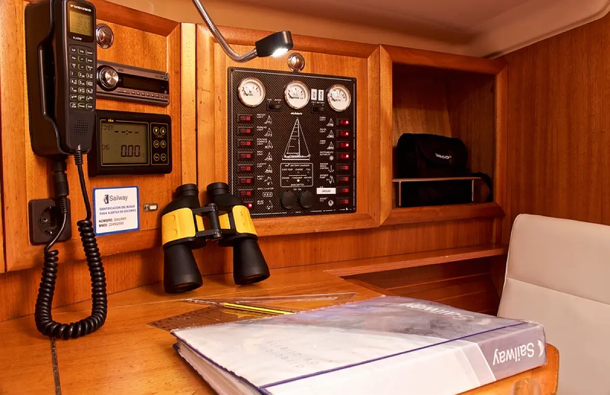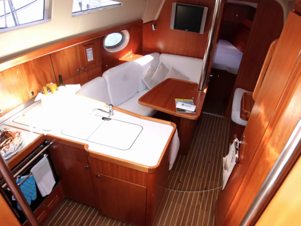 Lautsprecher im Cockpit, Beiboot, Teak Cockpit, Kühlschrank, Wassermacher, Sprayhood, Teakdeck