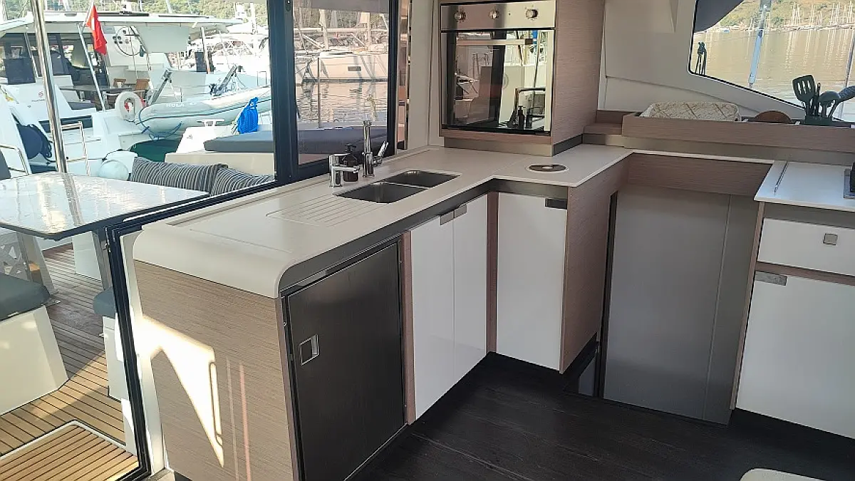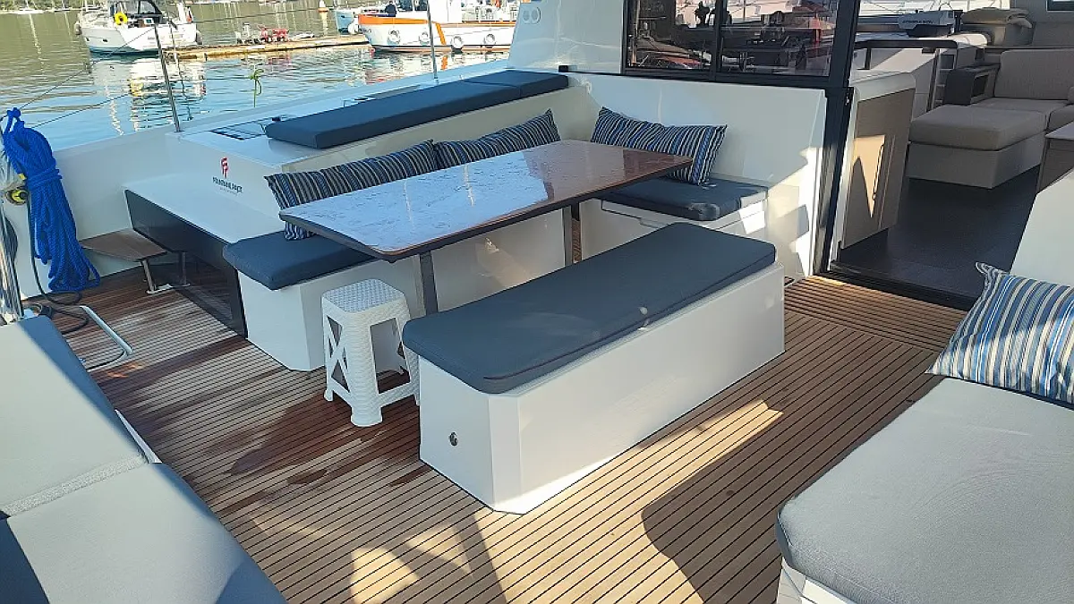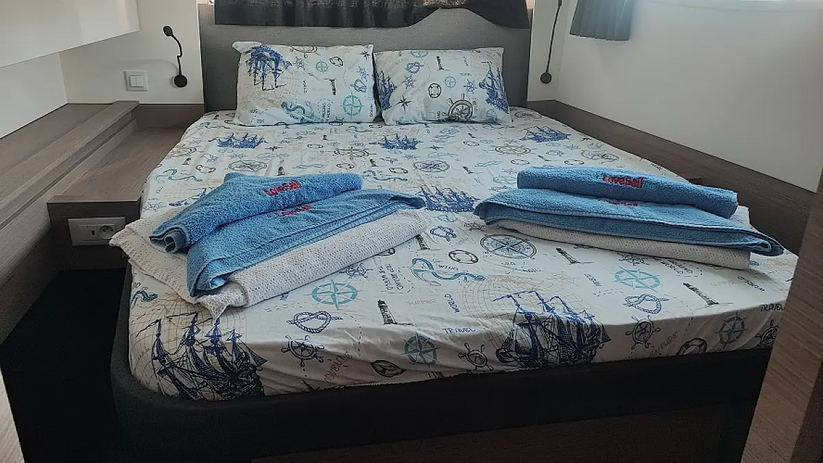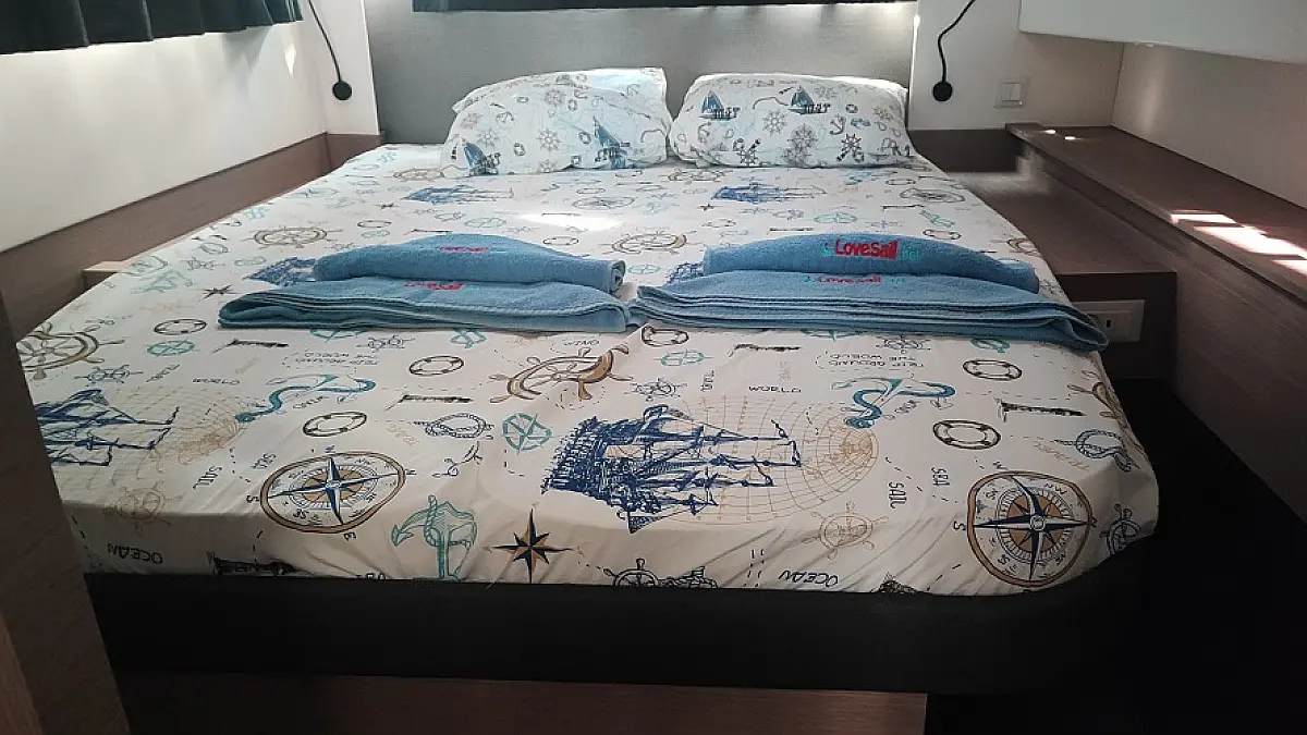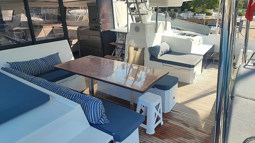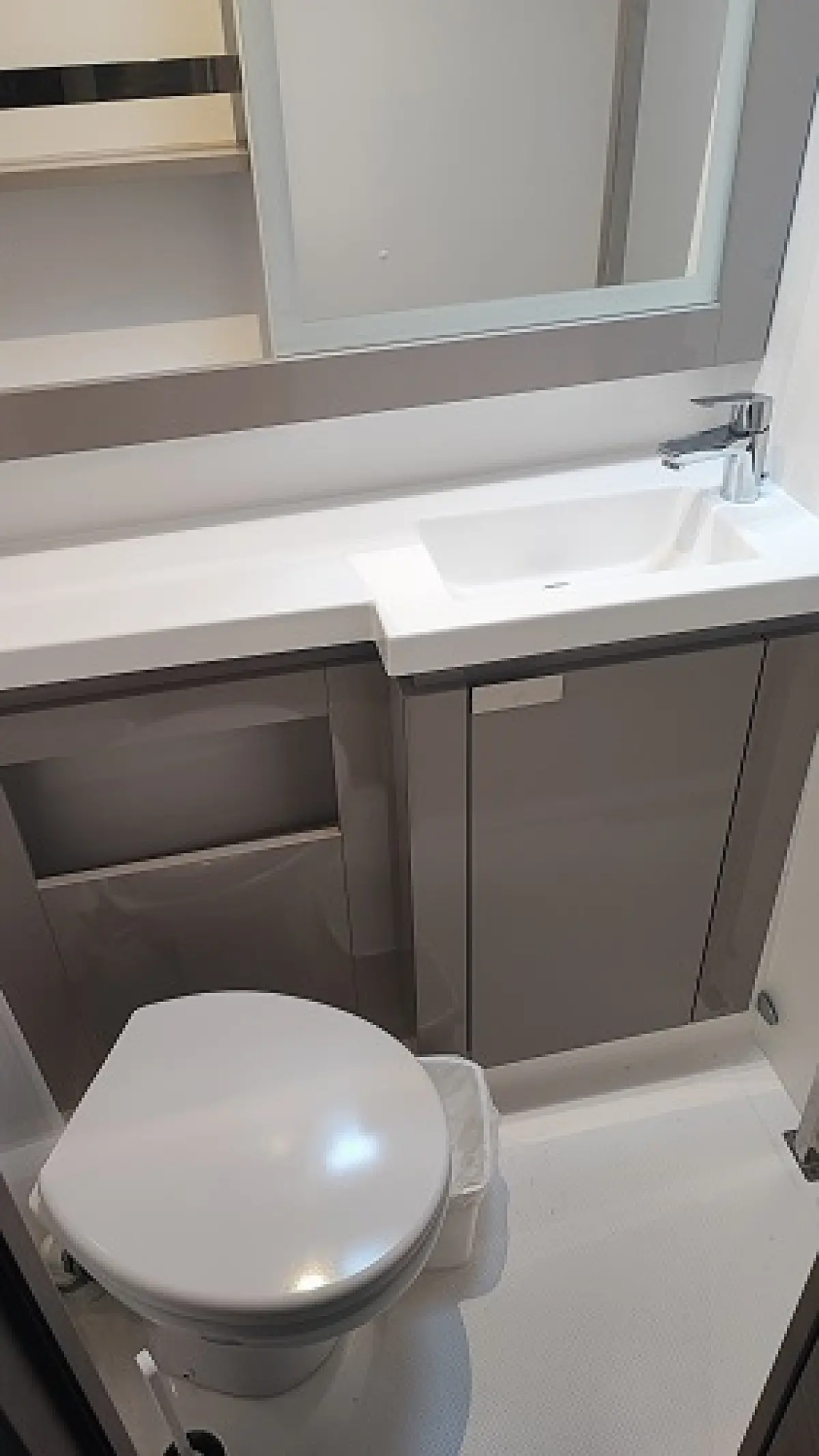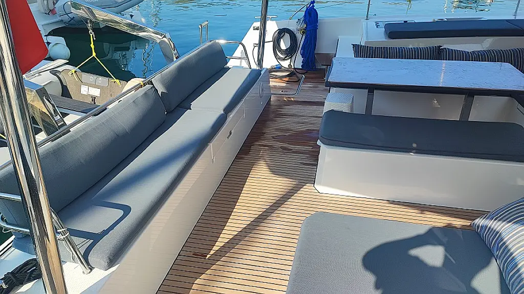 Kühlschrank, Beiboot, Cockpit-Kissen, Elektrische Toilette, Teak Cockpit, Außenbordmotor, Elektrische Winch (Segel), Generator, Klimaanlage, Heizung