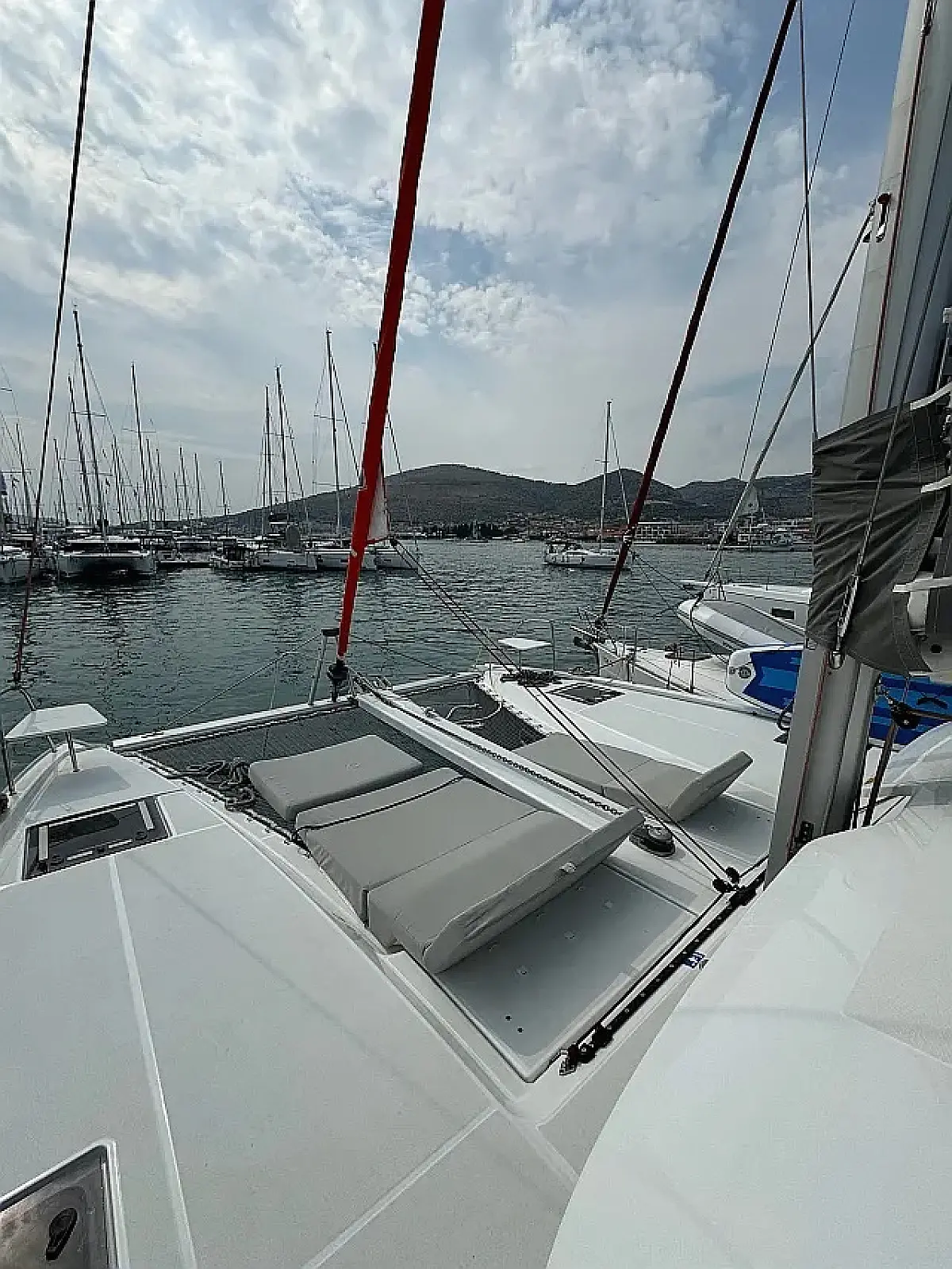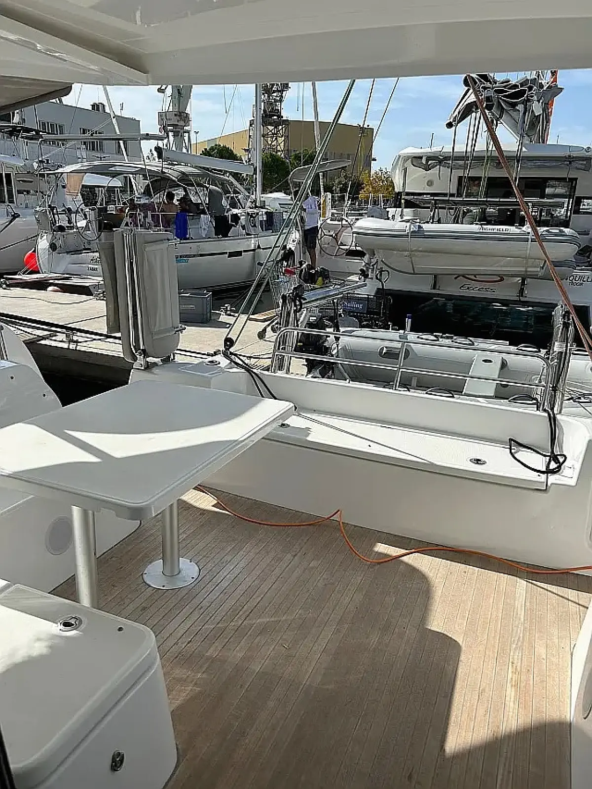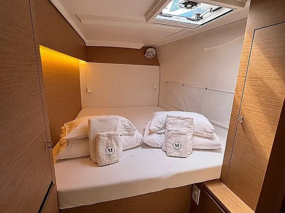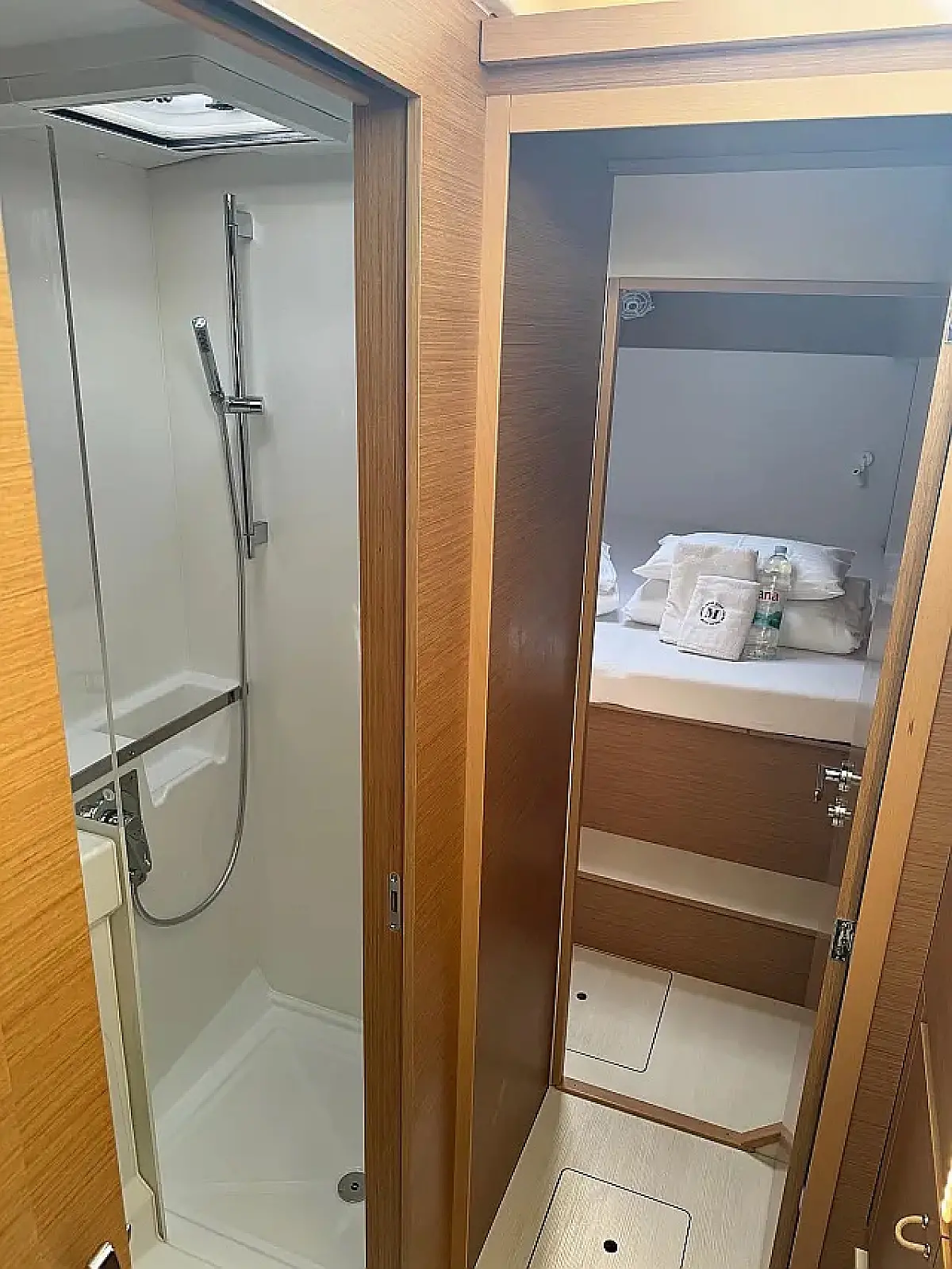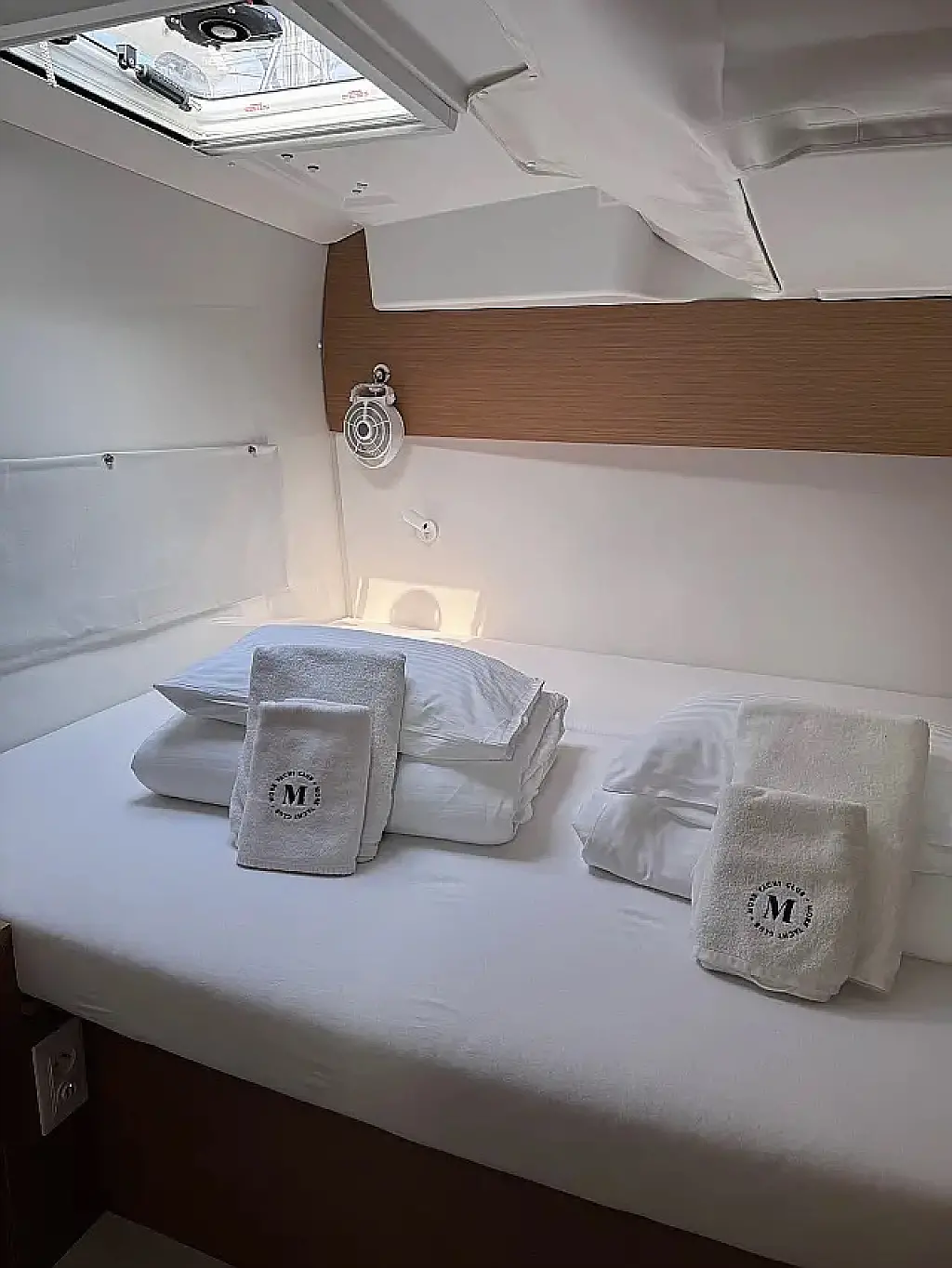 Klimaanlage, Bimini, Cockpit-Kissen, Lautsprecher im Cockpit, Kaffeemaschine, Kühlschrank, Elektrische Toilette, Generator, Heizung, Fäkalientank, Inverter, Außenbordmotor, Solar-Panele, Wi-Fi und Internet