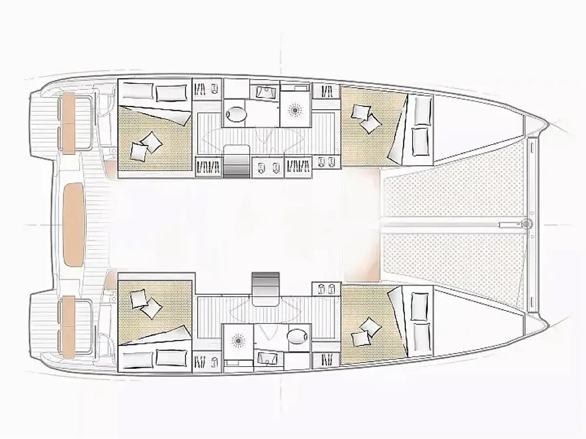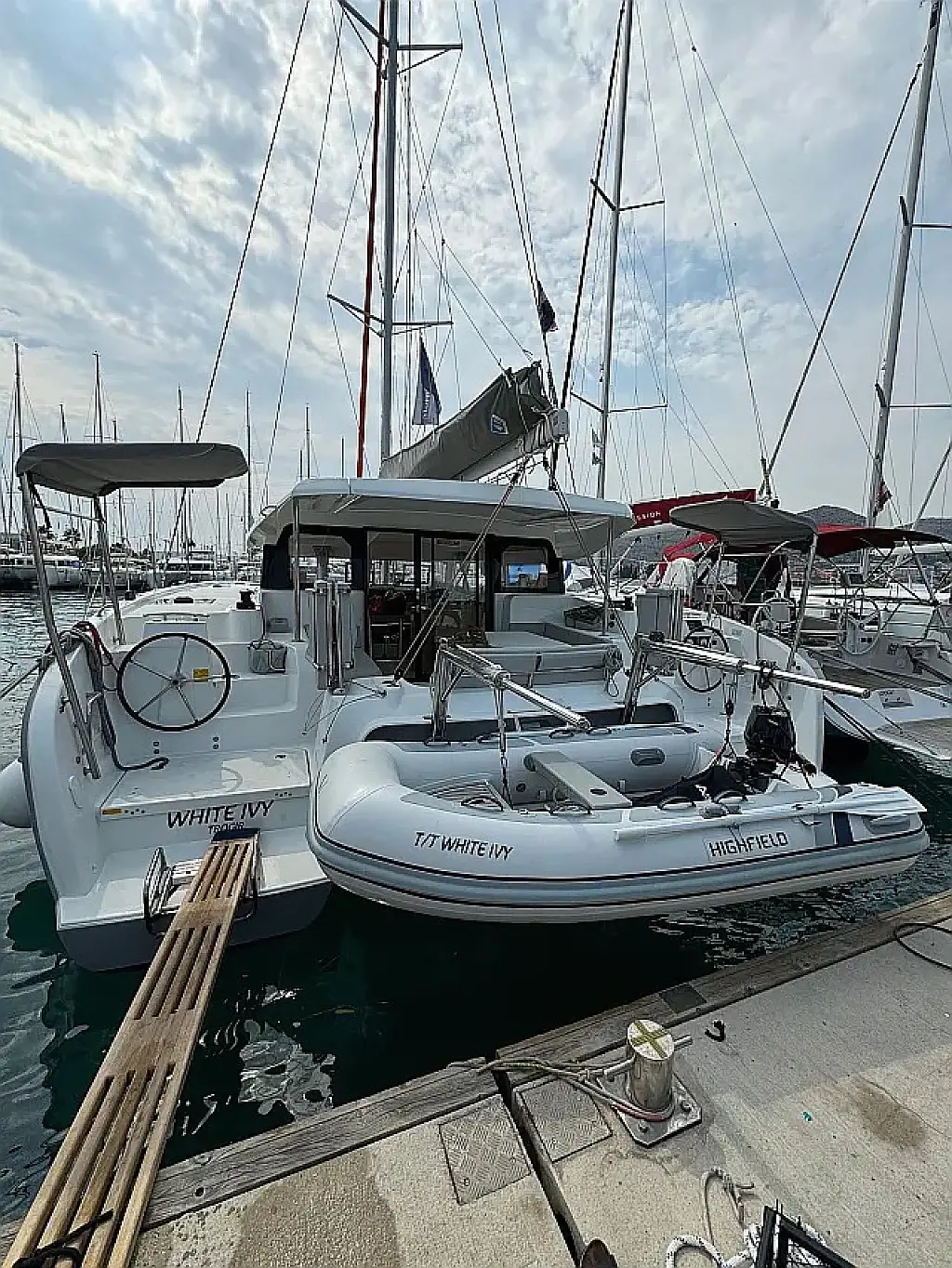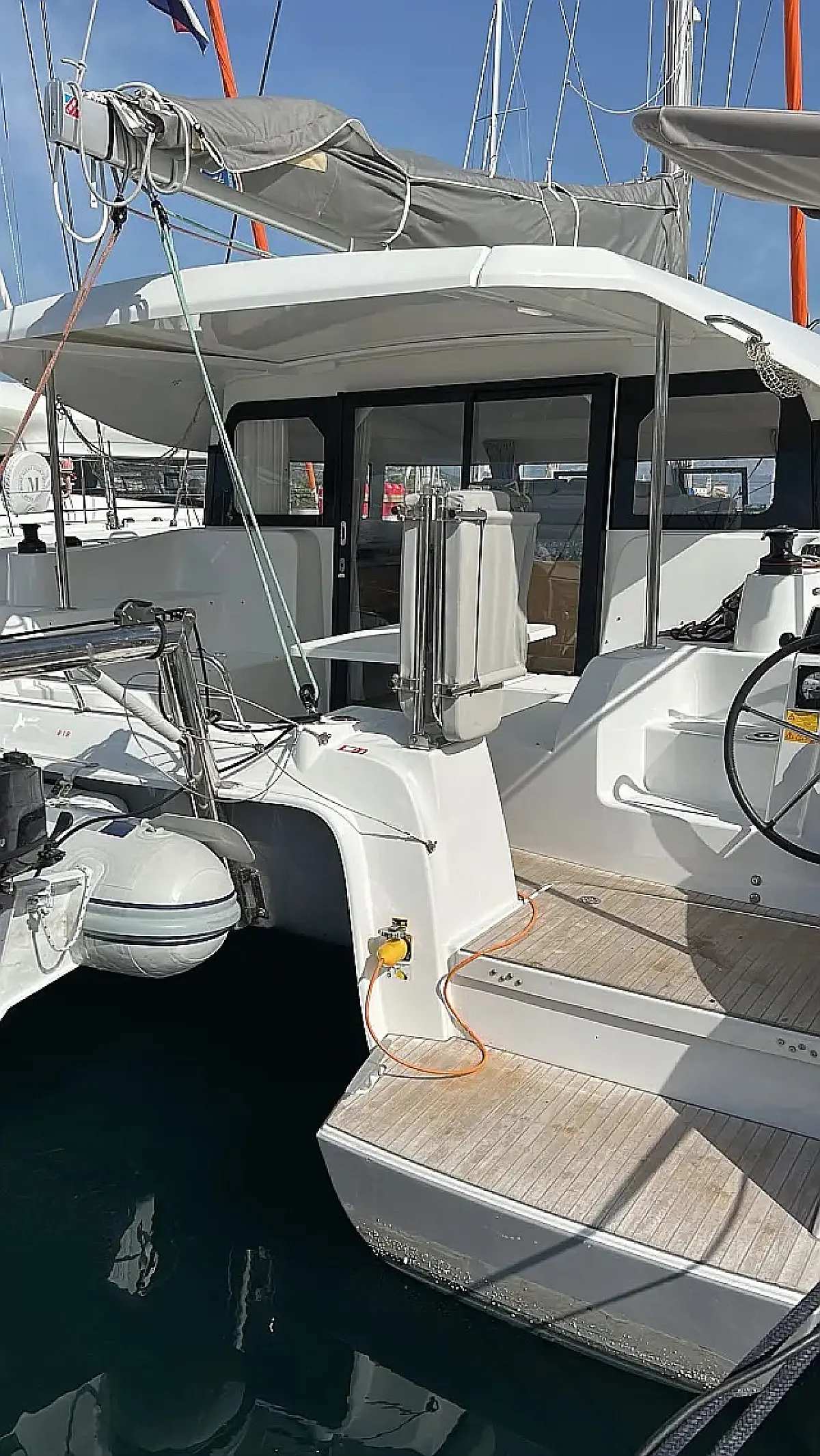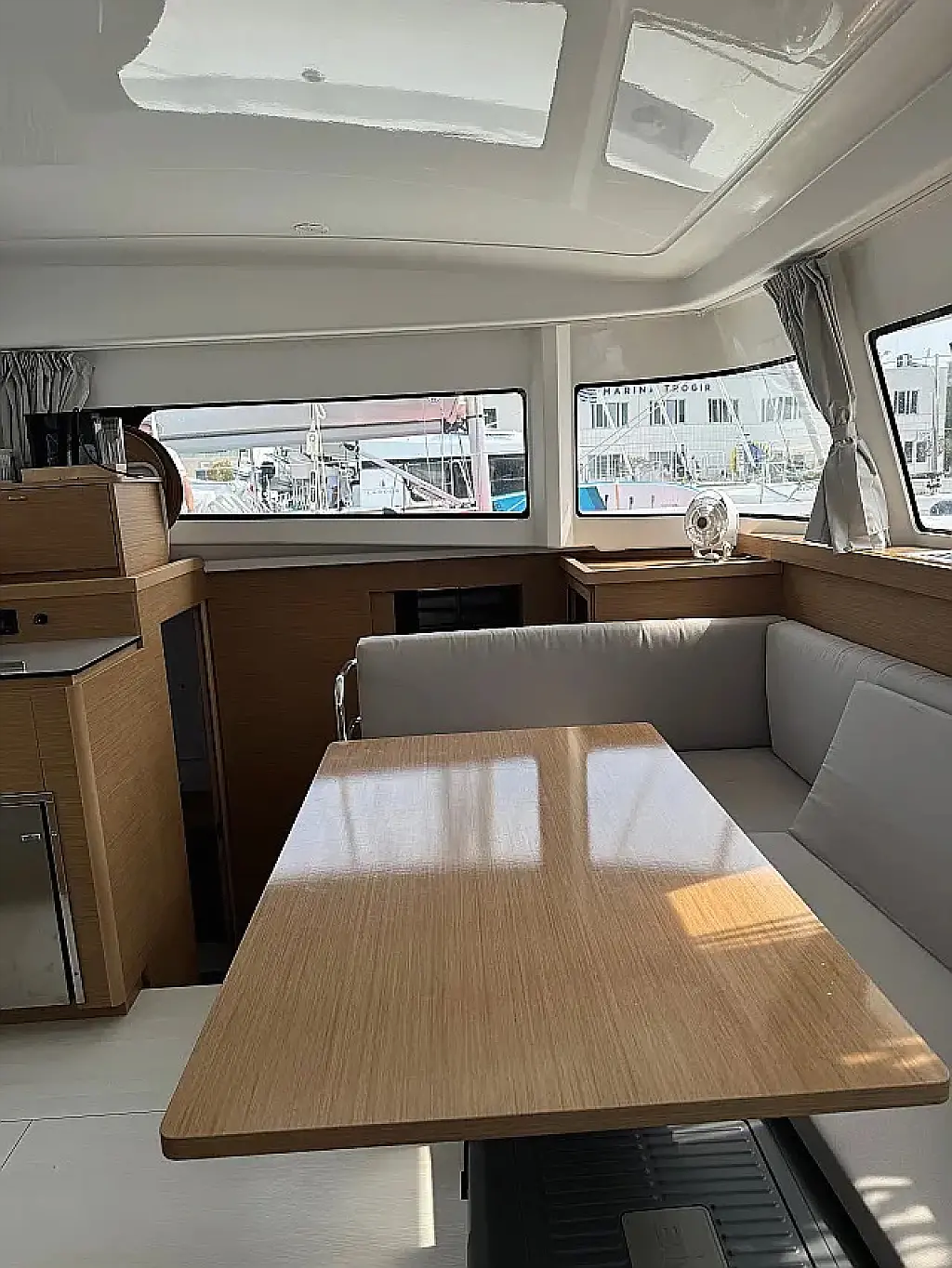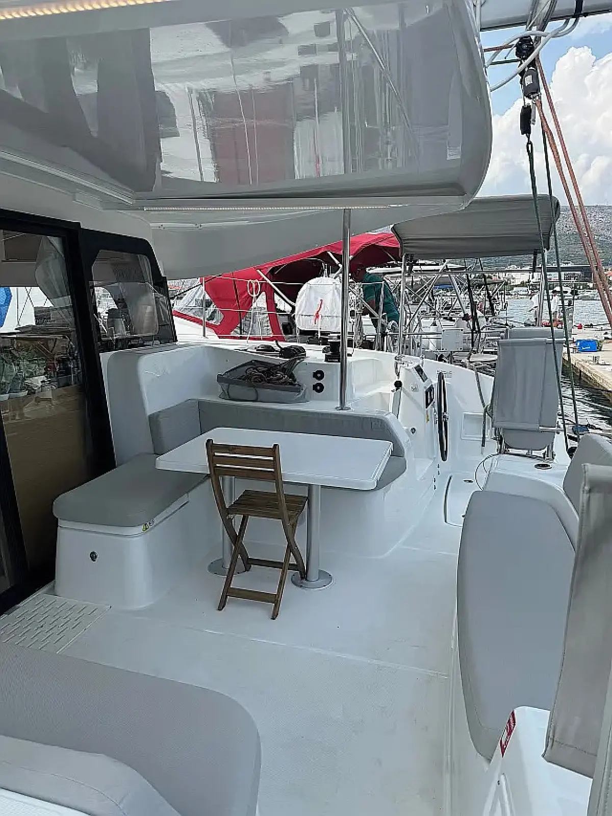 Klimaanlage, Bimini, Cockpit-Kissen, Lautsprecher im Cockpit, Kaffeemaschine, Kühlschrank, Elektrische Toilette, Generator, Heizung, Fäkalientank, Inverter, Außenbordmotor, Solar-Panele, Wi-Fi und Internet