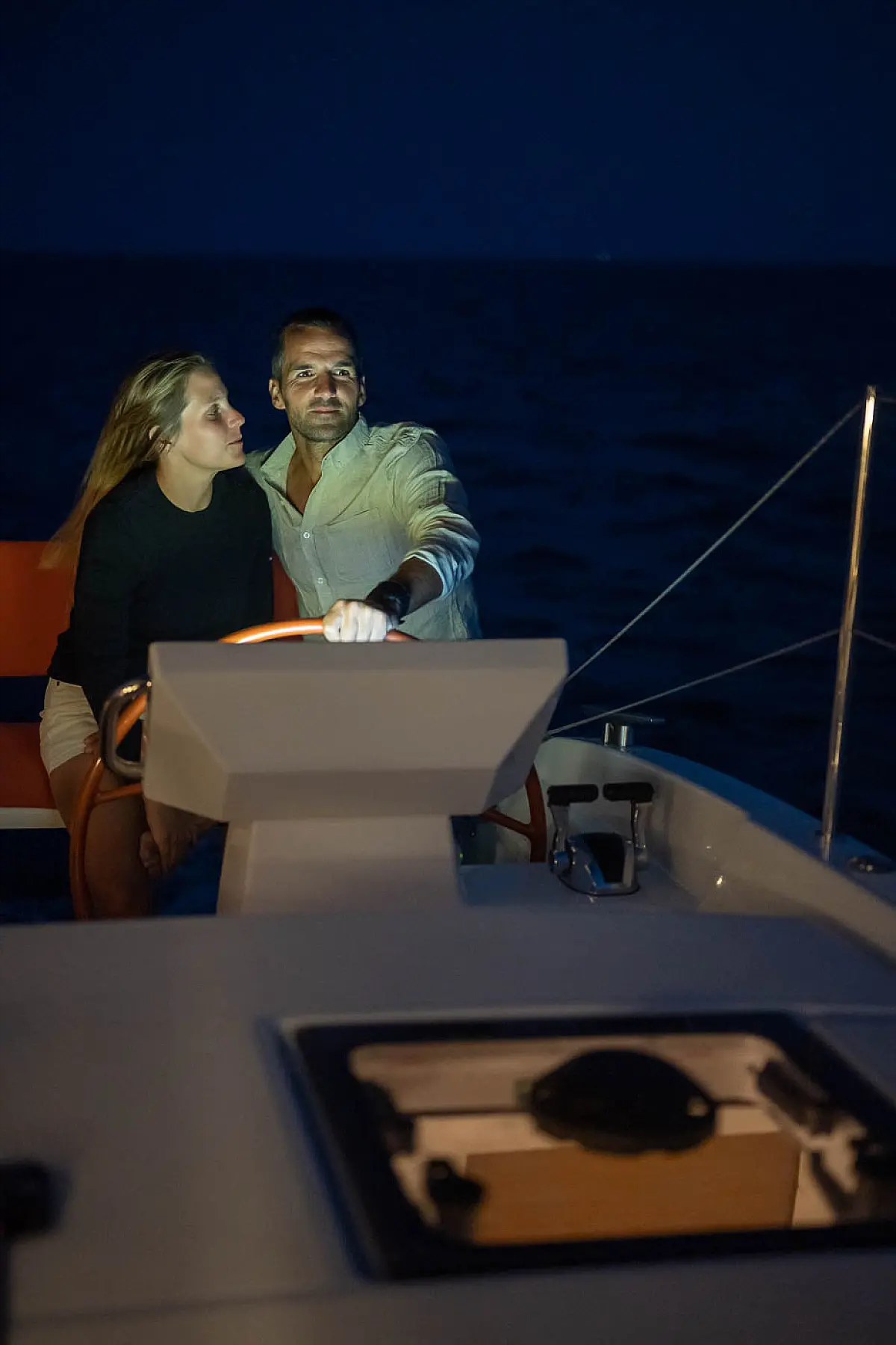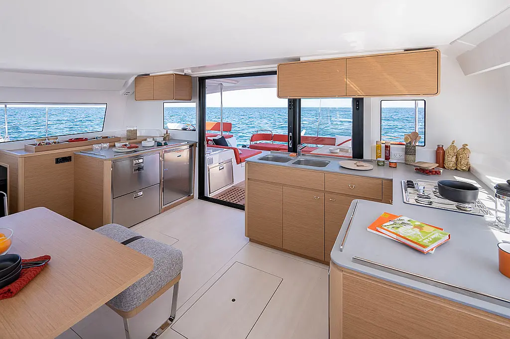 Elektrische Winch (Segel), Kaffeemaschine, Eismaschine, Heizung, Klimaanlage, Generator, Inverter, Außenbordmotor, Beiboot, Kühlschrank