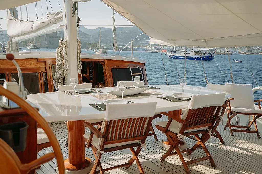 Außenbordmotor, Bimini, Beiboot, Eismaschine, Wassermacher, Wi-Fi und Internet